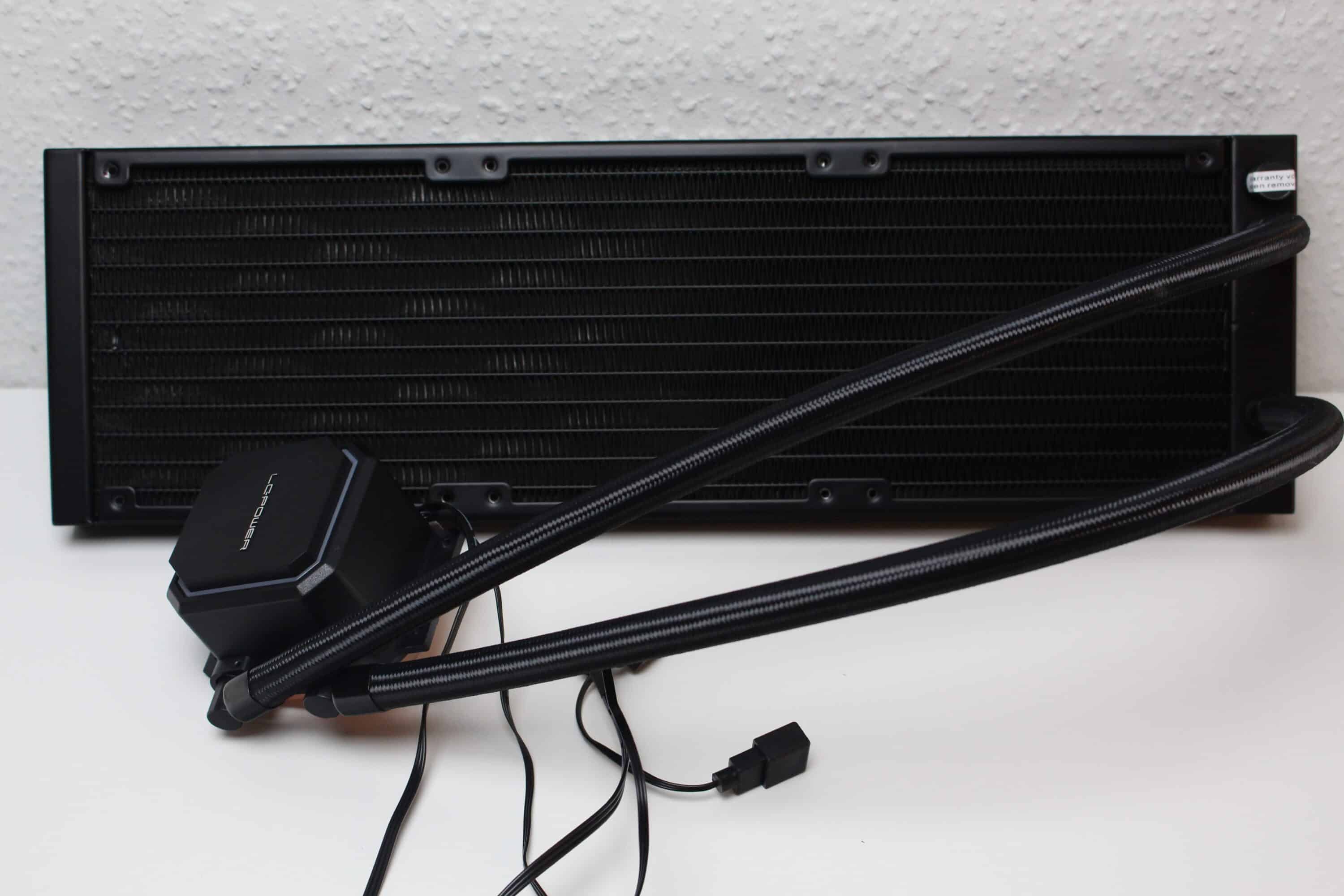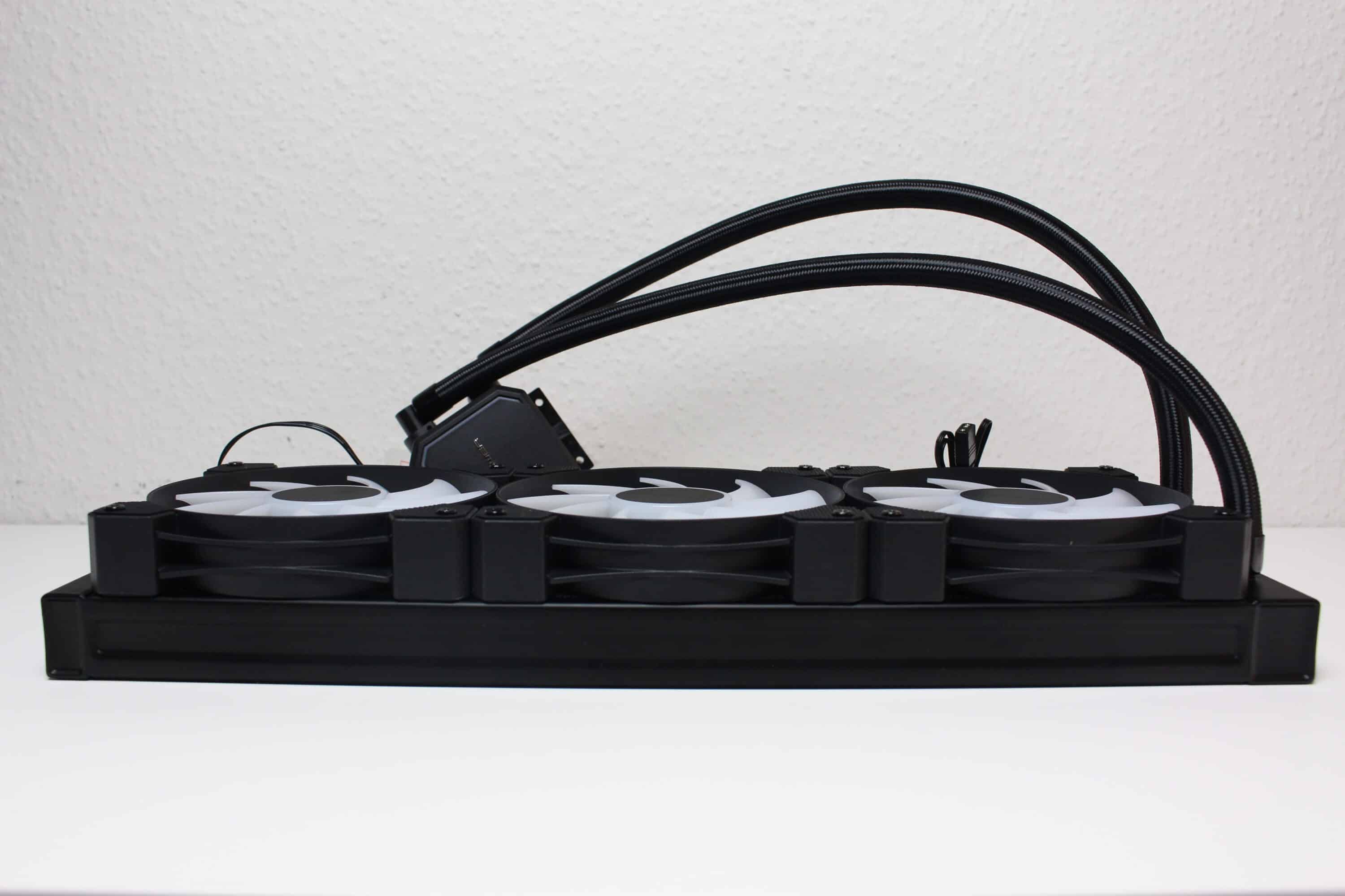 On the other hand, we consider the fan noise at higher speeds to be negative. However, due to the wide speed range and the generally good cooling performance, this aspect is not so important. More annoying were the bent fins on the radiator in places and the somewhat brief installation instructions, which could be a little unclear, at least for newcomers. Finally, we would also like to mention the pump, which whirred at higher speeds and was therefore audible.