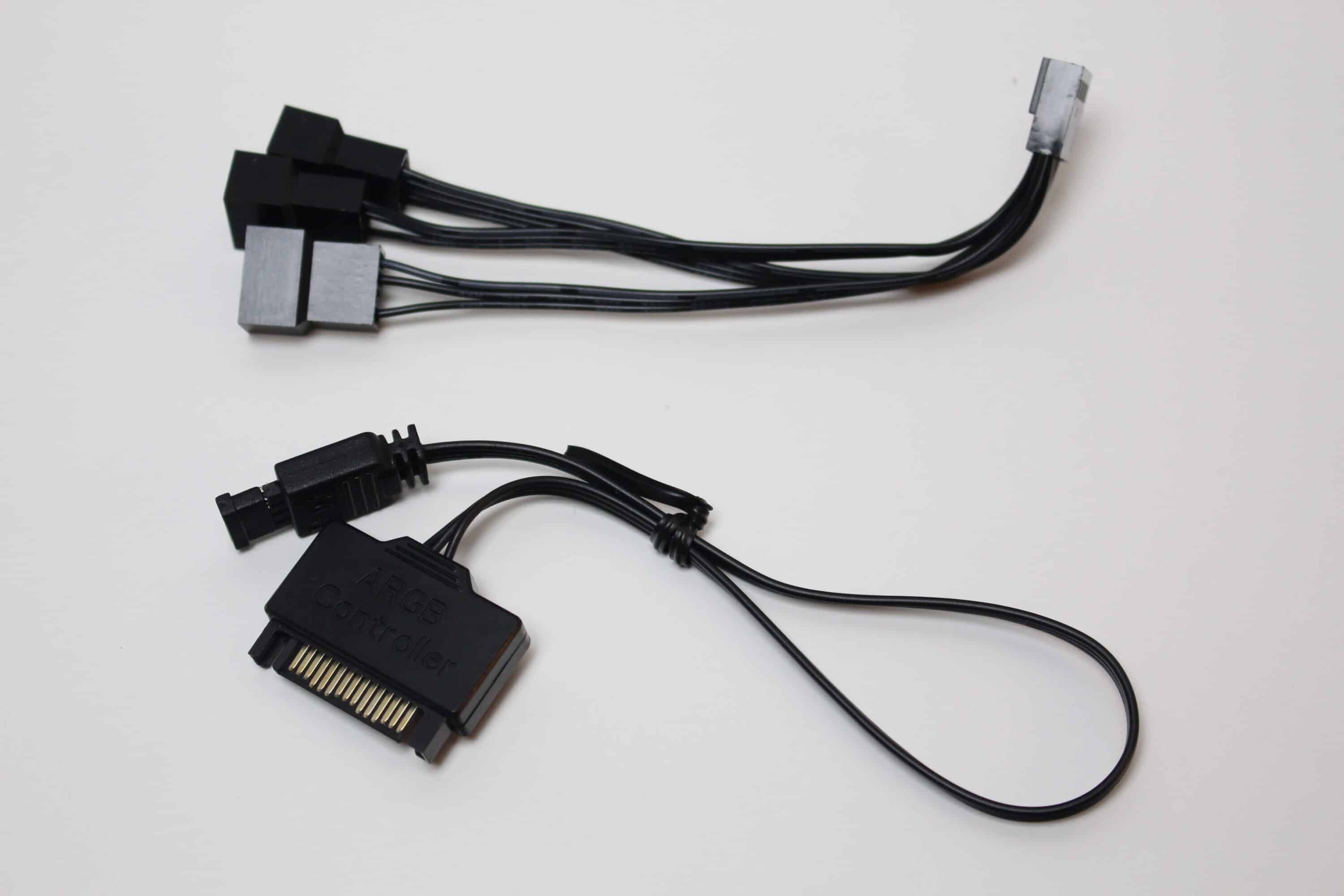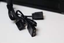 The LC-Power LC-CC-360-B-ARGB – JetFlow has various ARGB elements that can be controlled via the mainboard. These include both the fans, whose fan hubs each have 8 LEDs, and the pump block, which is equipped with a discreet ARGB strip. Each is controlled via a 3-pin 5V ARGB connector. To facilitate connection to a mainboard with few connections, the fans and the pump each have a splitter for the ARGB signal. If the mainboard does not have a suitable connection, a simple ARGB controller is also included in the scope of delivery. Finally, a few impressions of the activated lighting.