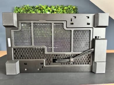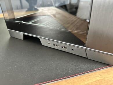 The ports are located at the bottom of the case. These include 2x USB 3.0, 1x USB-C 3.1 and an audio port. Due to the placement in the base, the ports are integrated more discreetly and are less conspicuous than on the predecessor model.