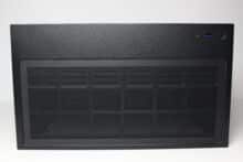 Visually, the H3 Flow follows the design of its larger brothers, the H5 Flow and H7 Flow. The exterior design of the mini tower is extremely straightforward and simple. The front panel is made of steel and has a fine ventilation grille, which also serves as a dust filter. A mounting system with push pins is used to attach it to the body. This means that the panel can be removed with a gentle tug. Behind it, mounting slots for two 120 mm or 140 mm fans or a corresponding radiator are then revealed.
