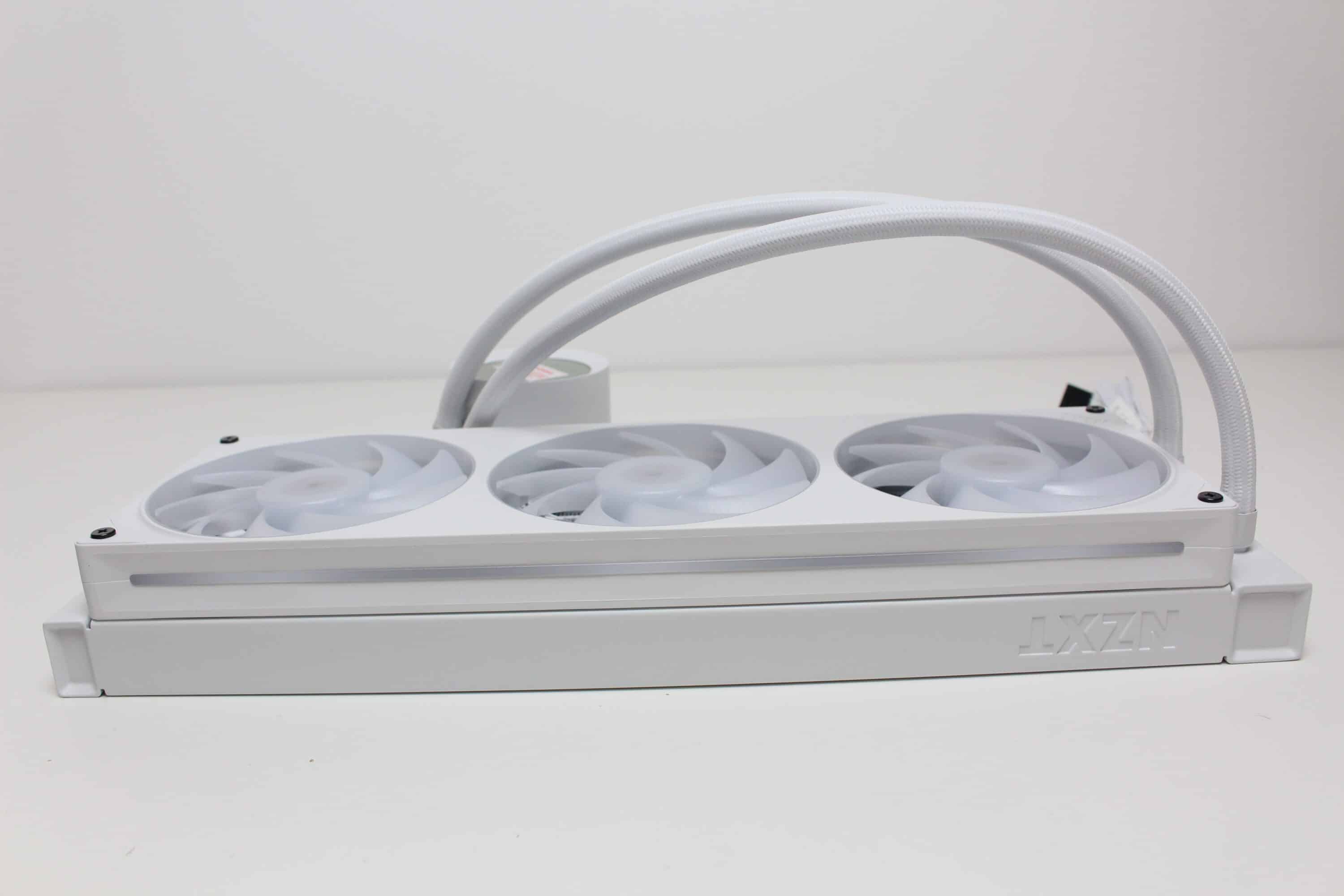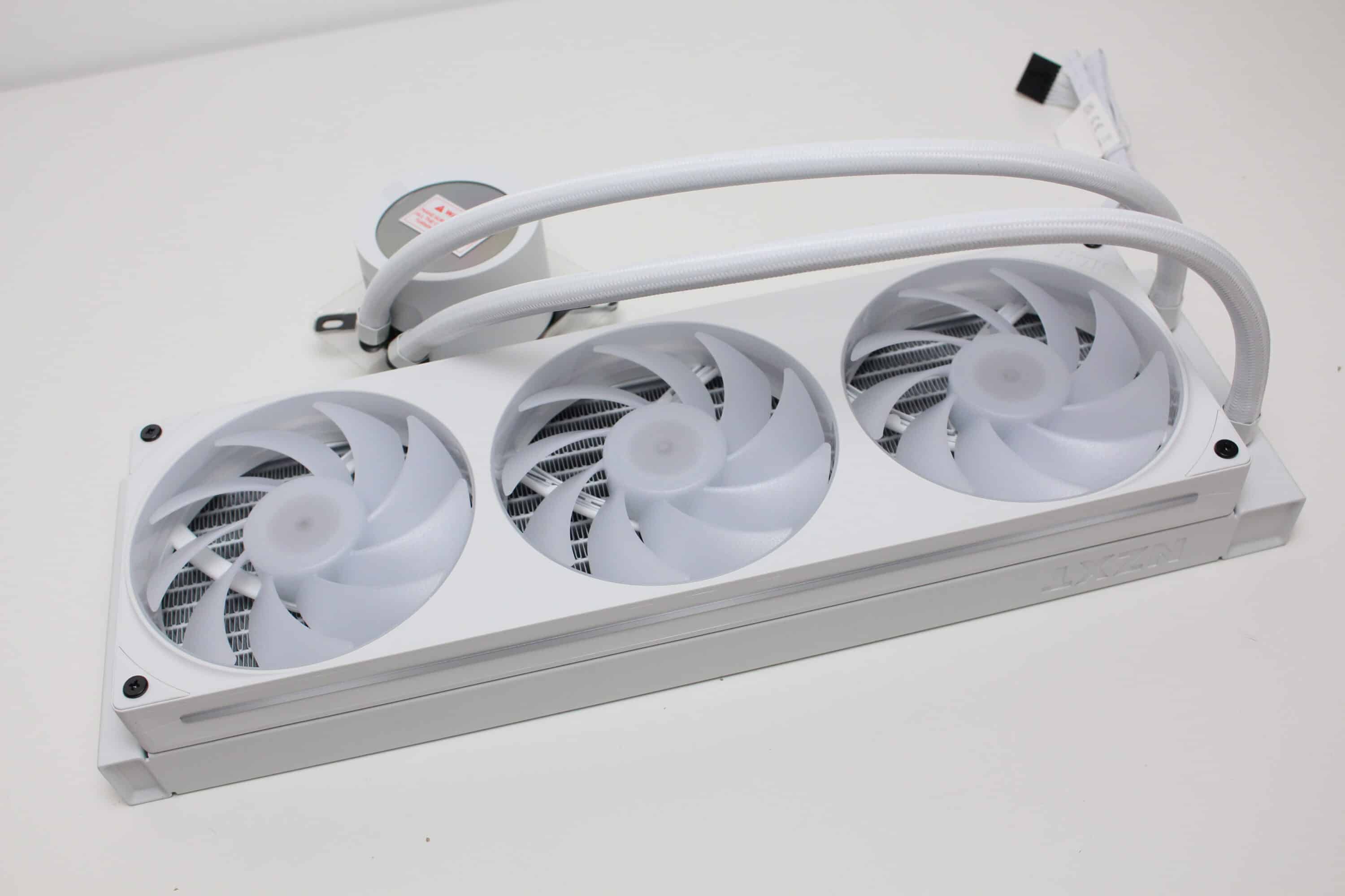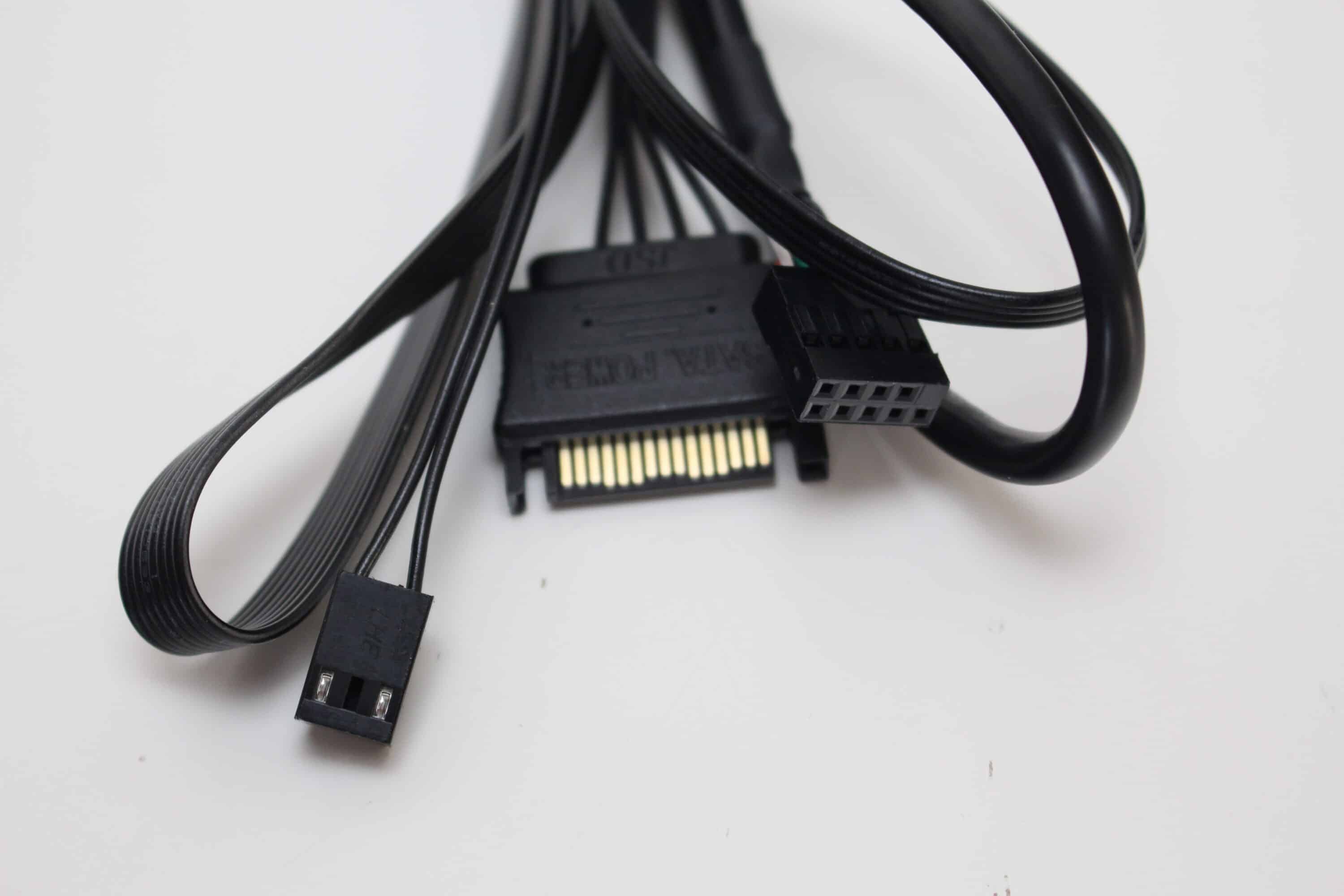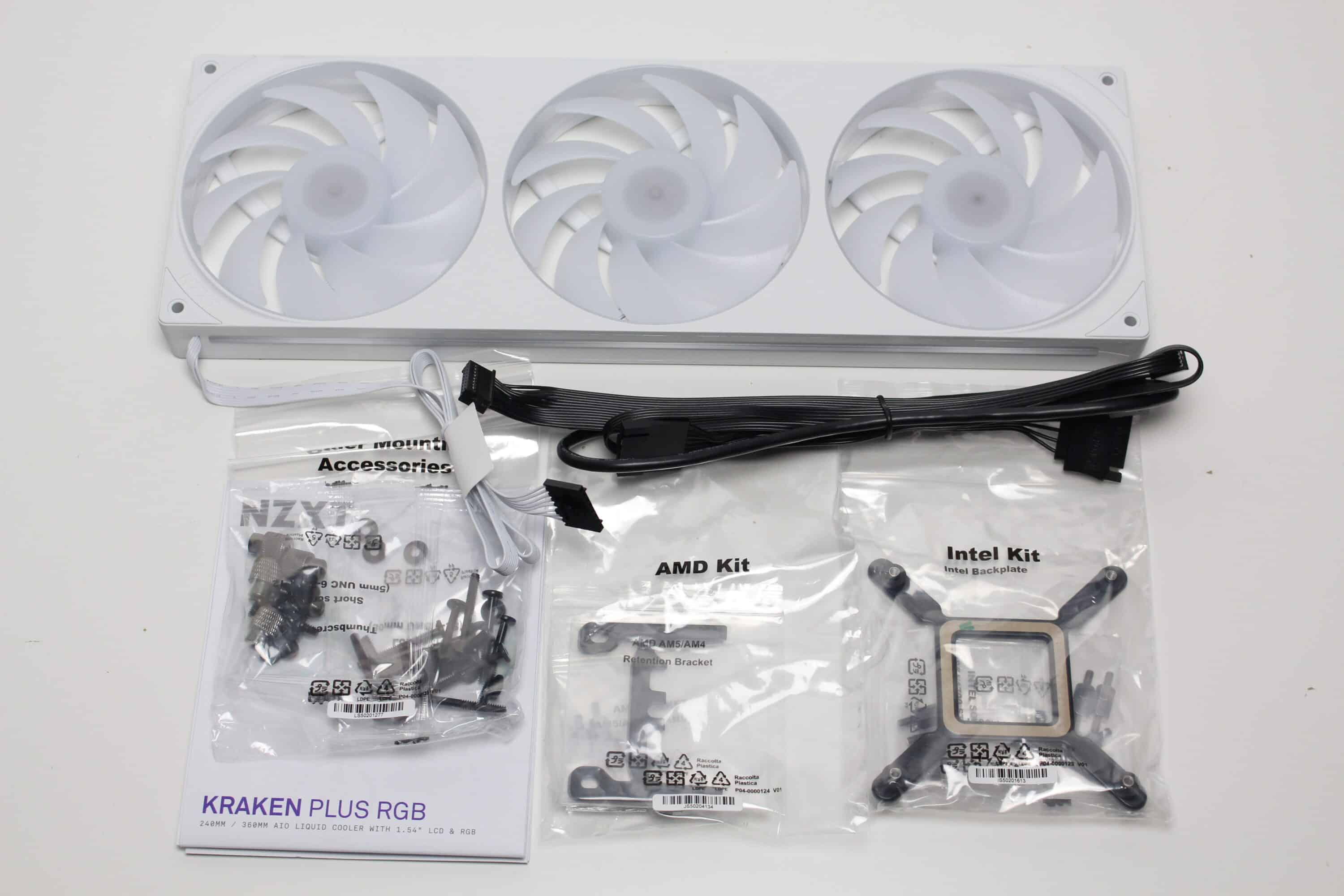 NZXT uses a proprietary connection cable for the Kraken Plus 360 RGB. One end plugs directly into the pump and then splits into a SATA power connector, a 3-pin 12V connector, a USB 2.0 connector and a socket for connecting the proprietary fan cable. Unfortunately, even the white version comes with a black cable. For use in an “all-white” system, this could be a deal-breaker.