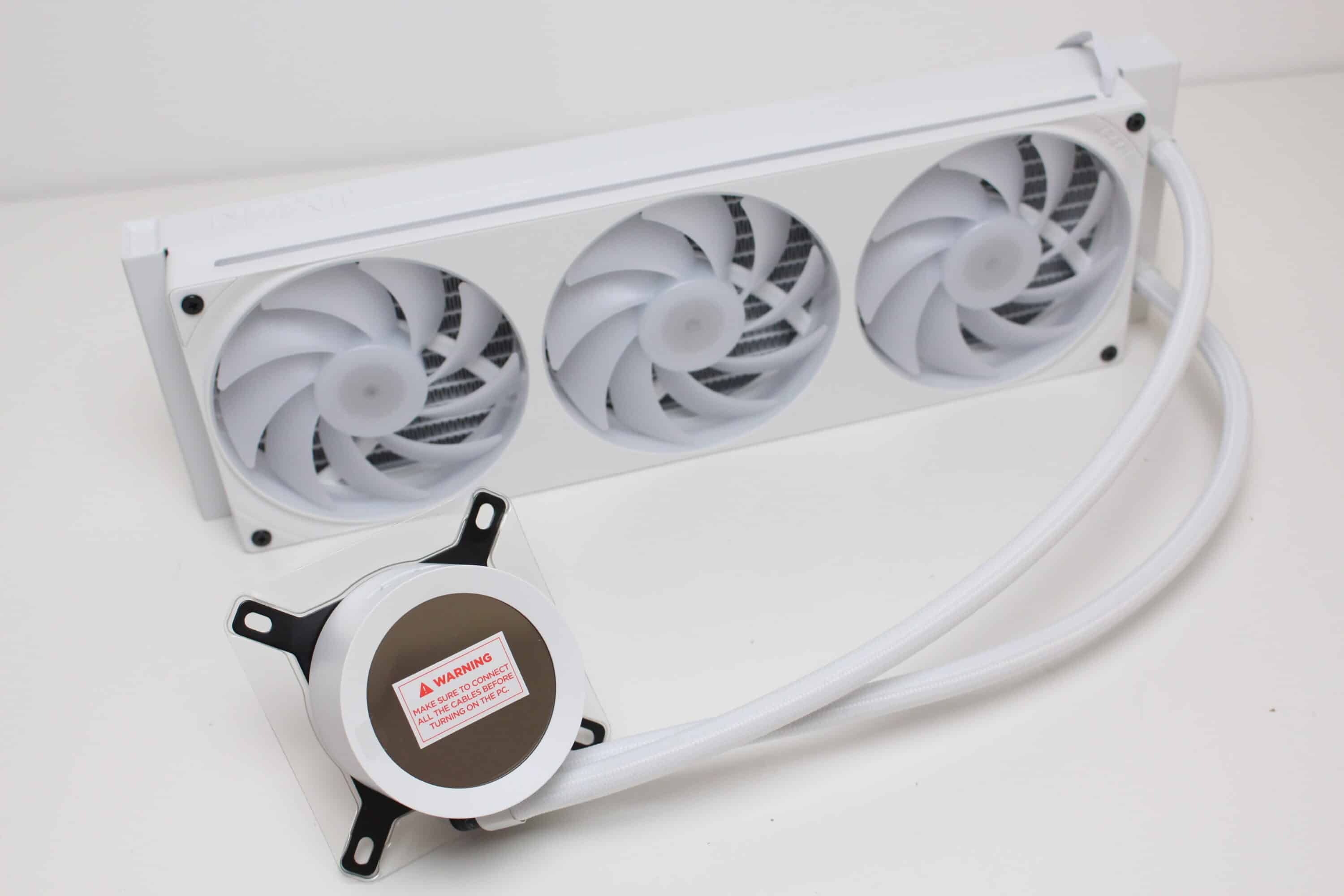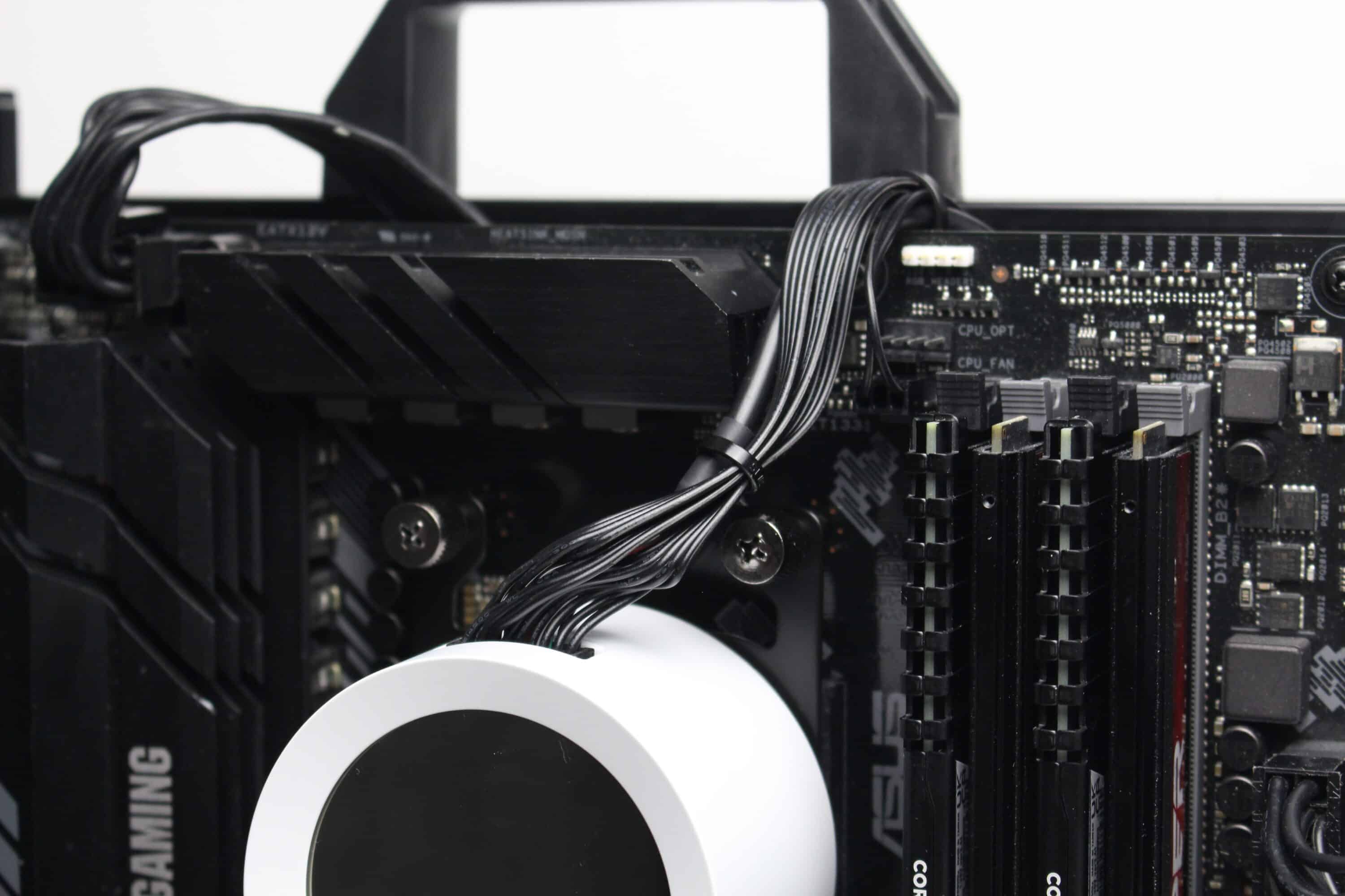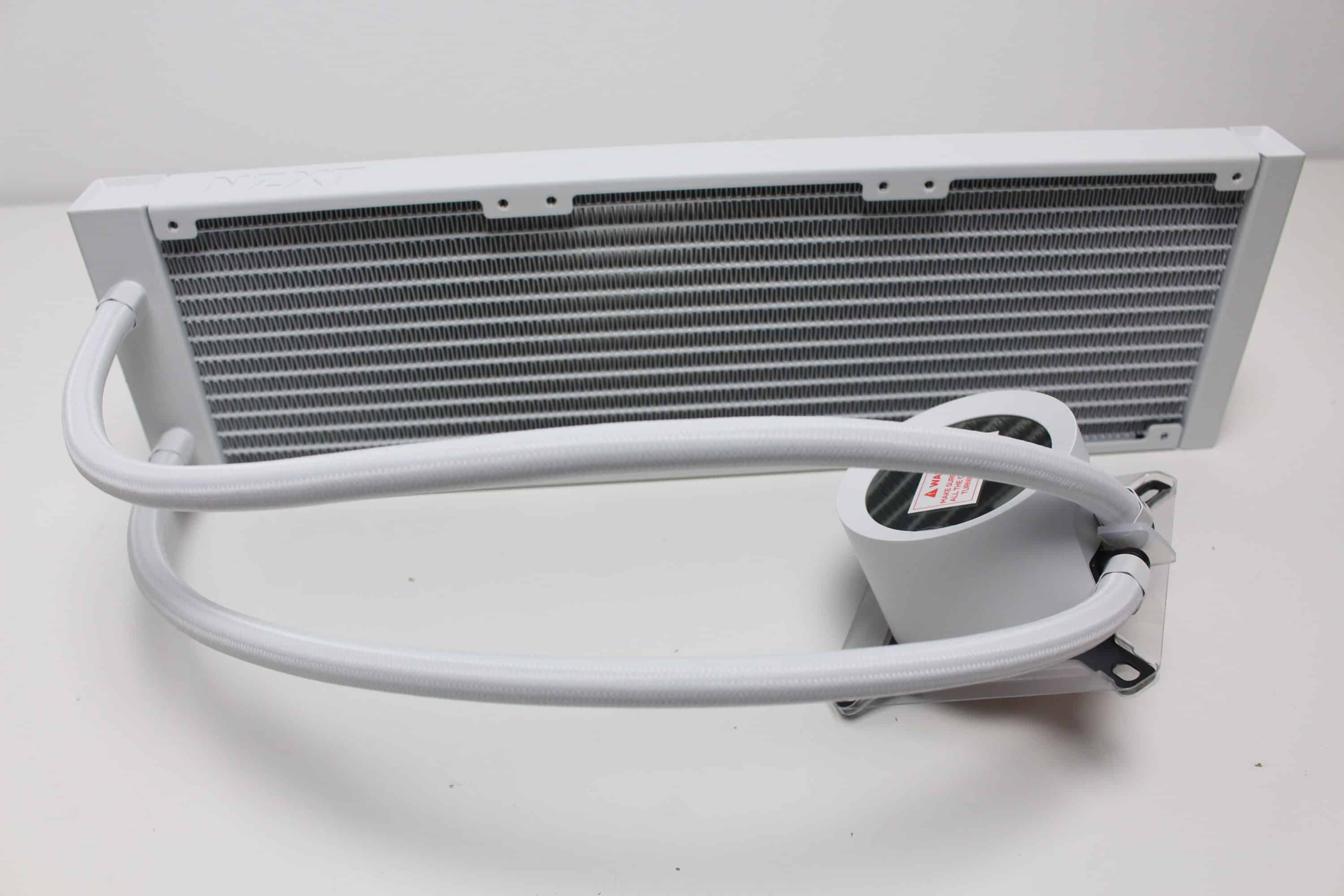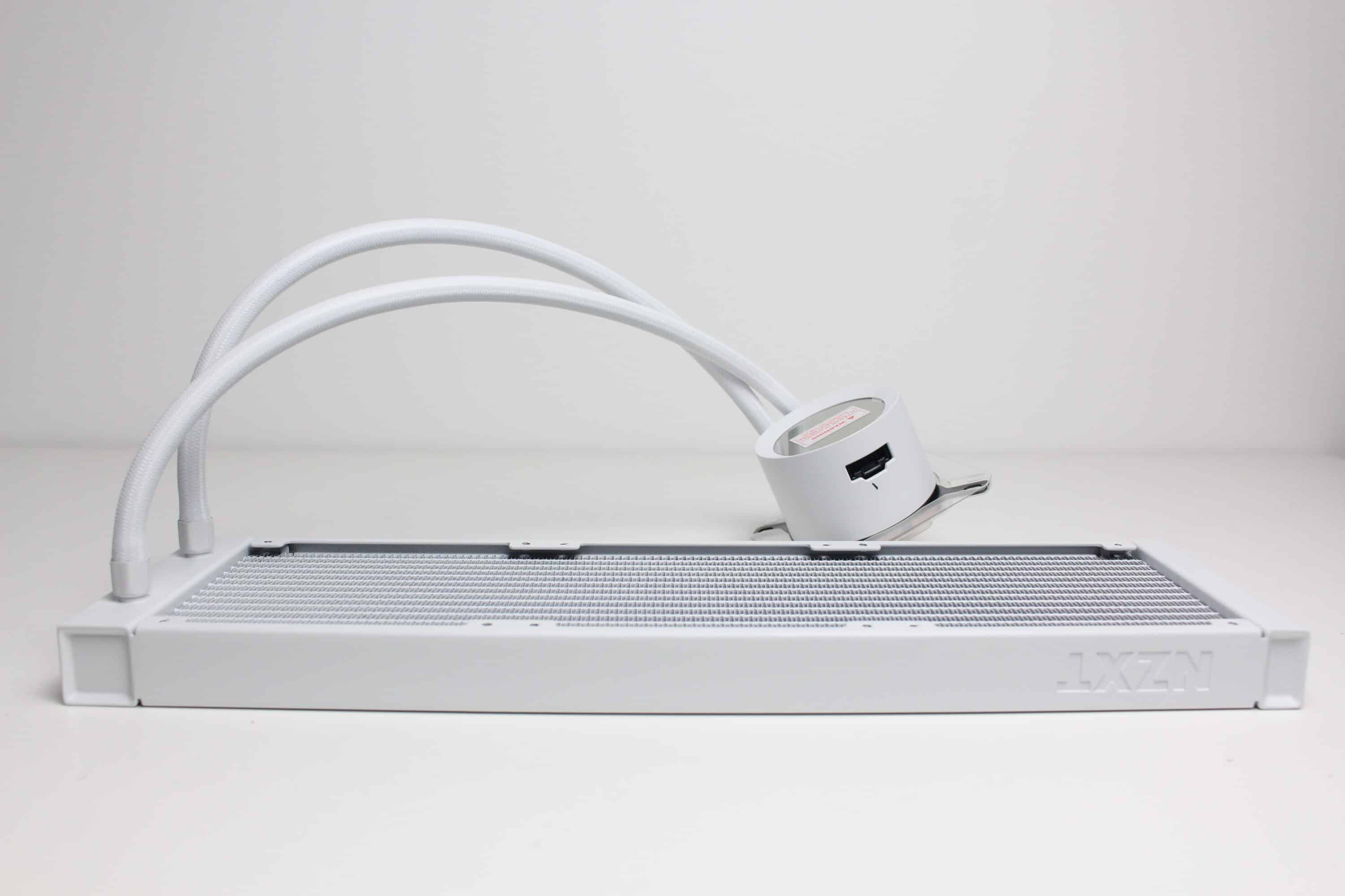 NZXT uses a proprietary connection cable for the Kraken Plus 360 RGB. One end plugs directly into the pump and then splits into a SATA power connector, a 3-pin 12V connector, a USB 2.0 connector and a socket for connecting the proprietary fan cable. Unfortunately, even the white version comes with a black cable. For use in an “all-white” system, this could be a deal-breaker.