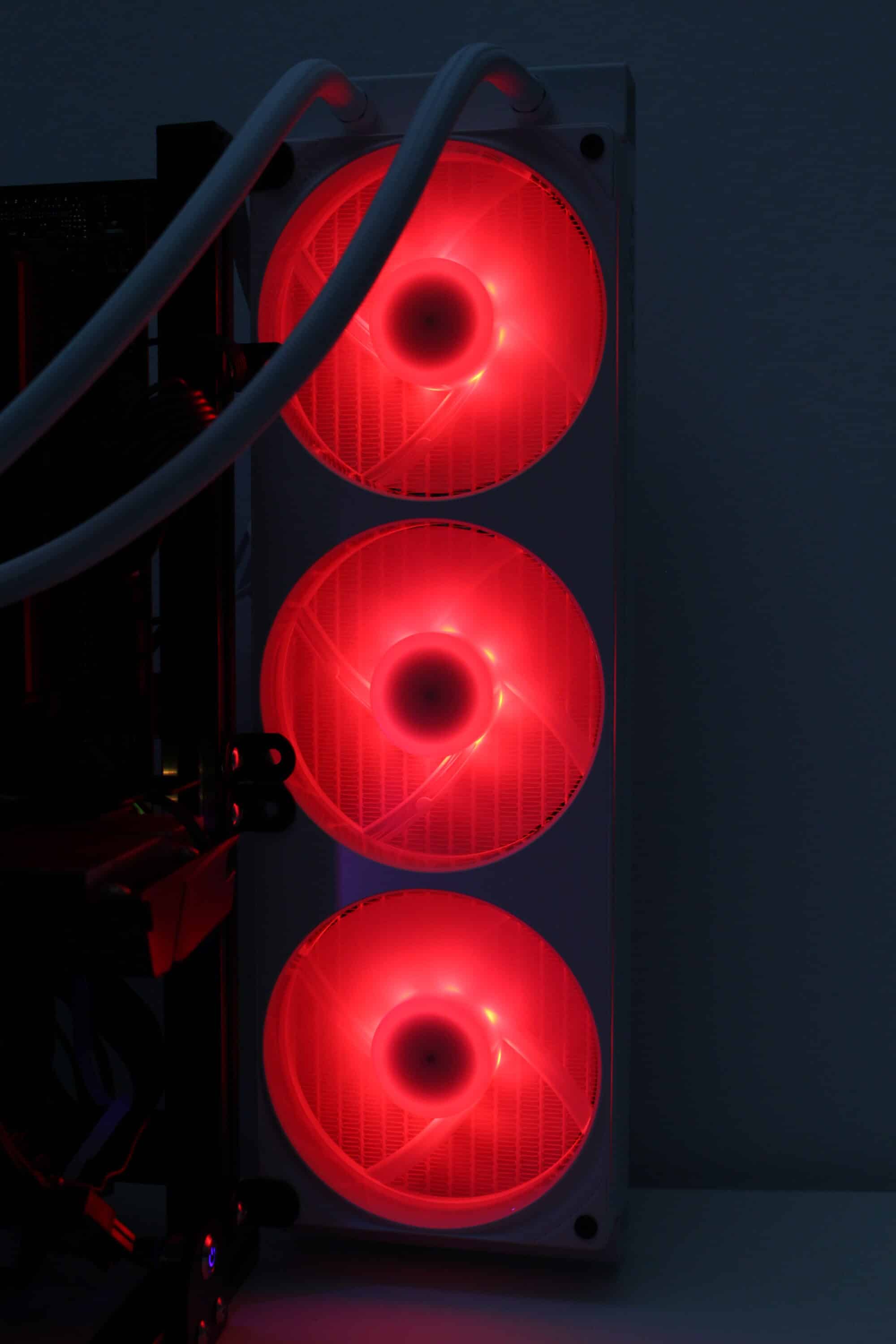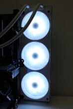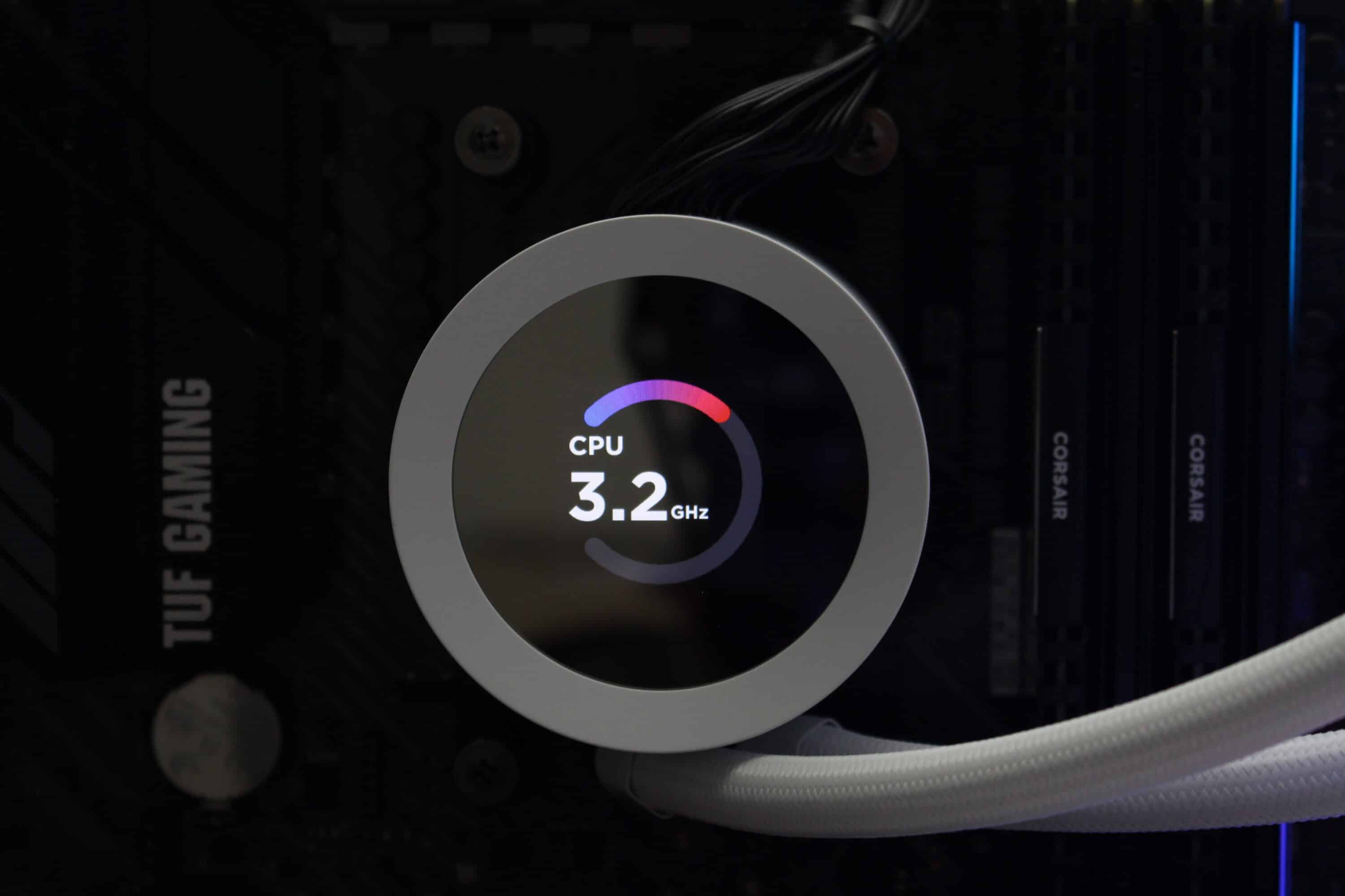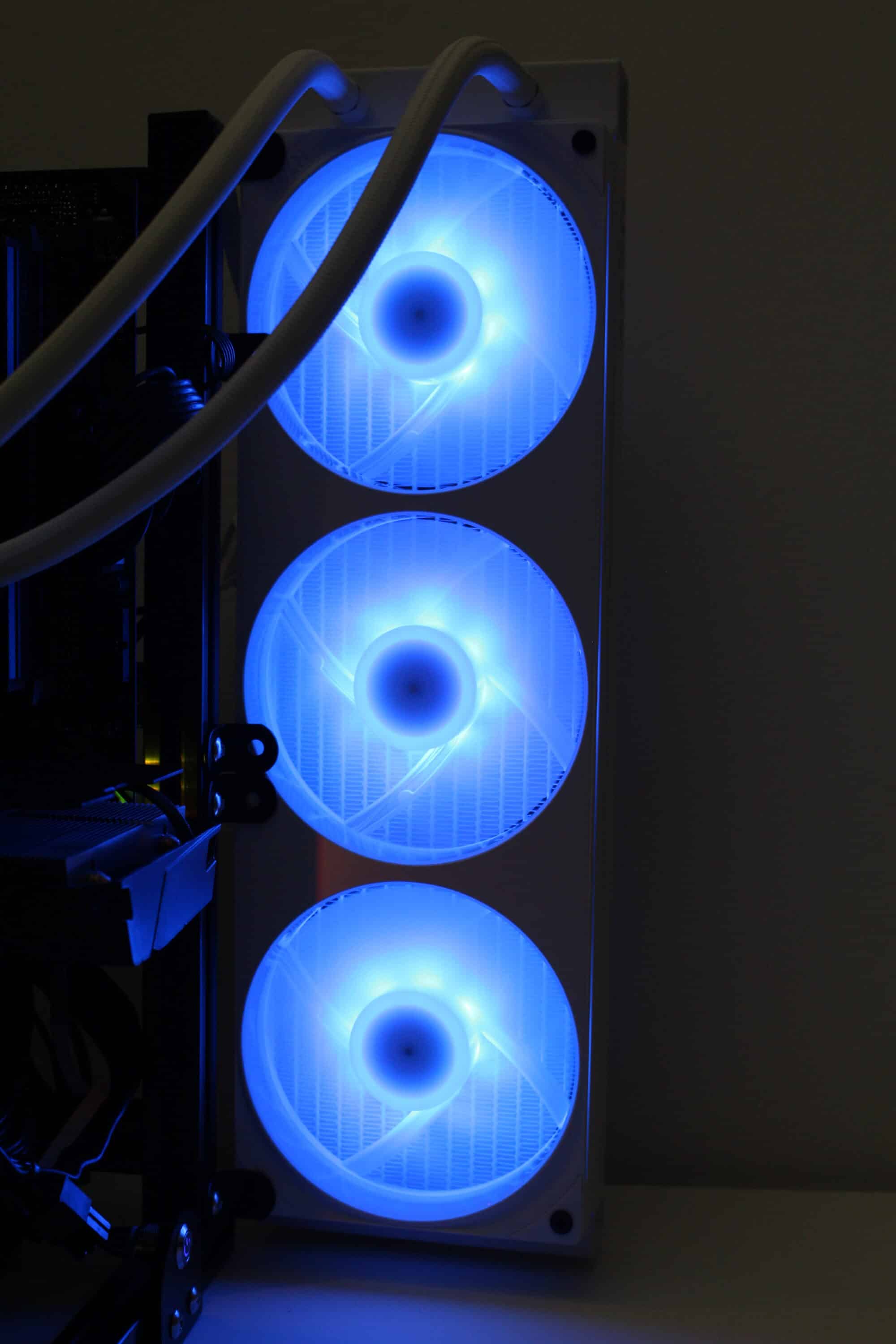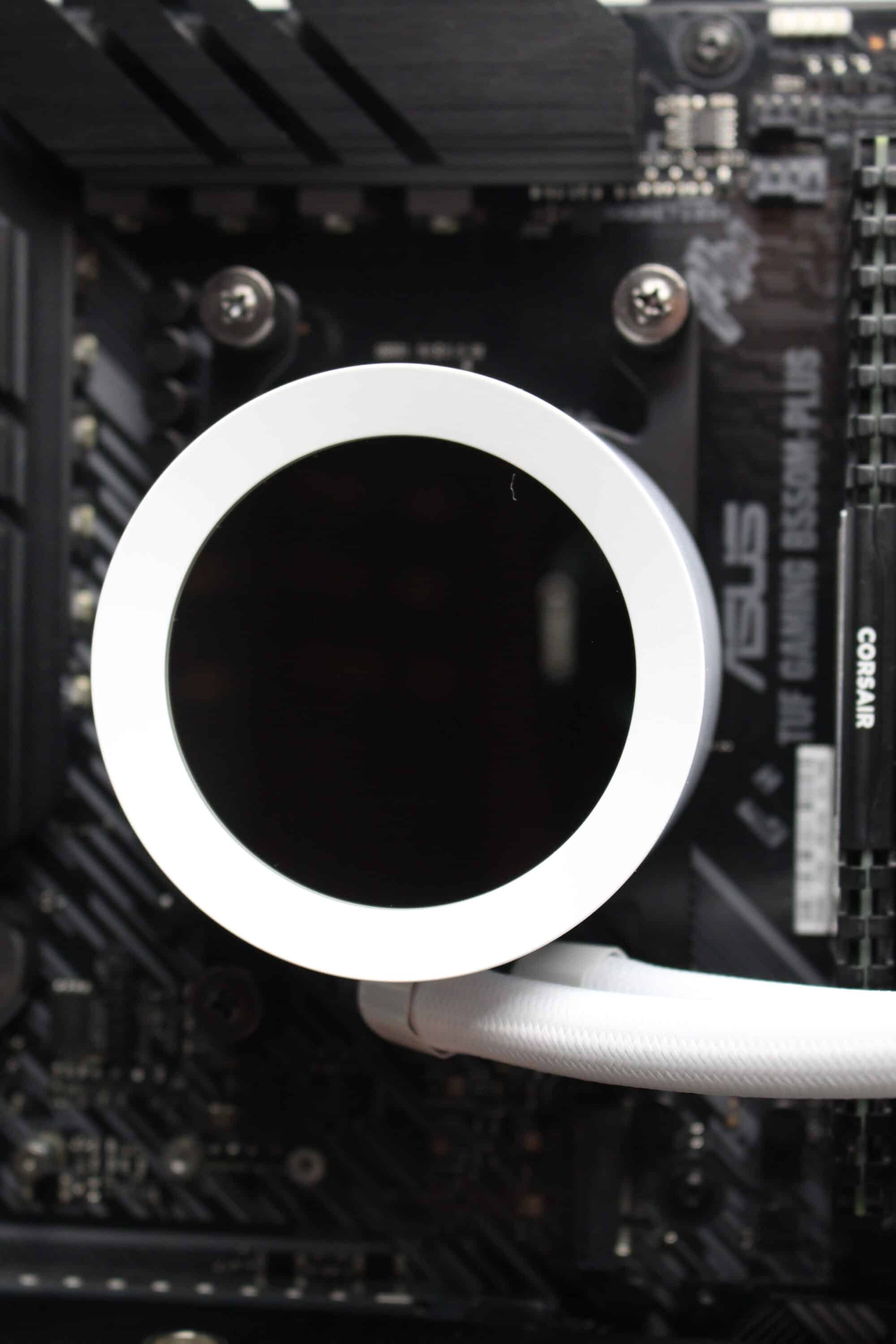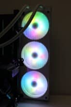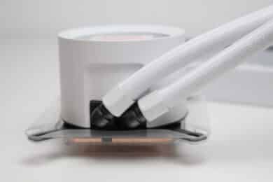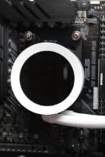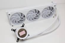 However, this display is not particularly large, nor is it impressive in terms of general image quality or viewing angle stability. In addition, both the control of the display and the RGB lighting in the fans require the use of the NZXT CAM software. The same applies to controlling the number of revolutions. Furthermore, NZXT uses a proprietary connection cable for the connection between the pump and fan, which is not even white in the white version. Finally, it should be said that the fan and pump become annoyingly loud at higher speeds and the fans, at least in vertical mode, hum annoyingly at certain speeds.