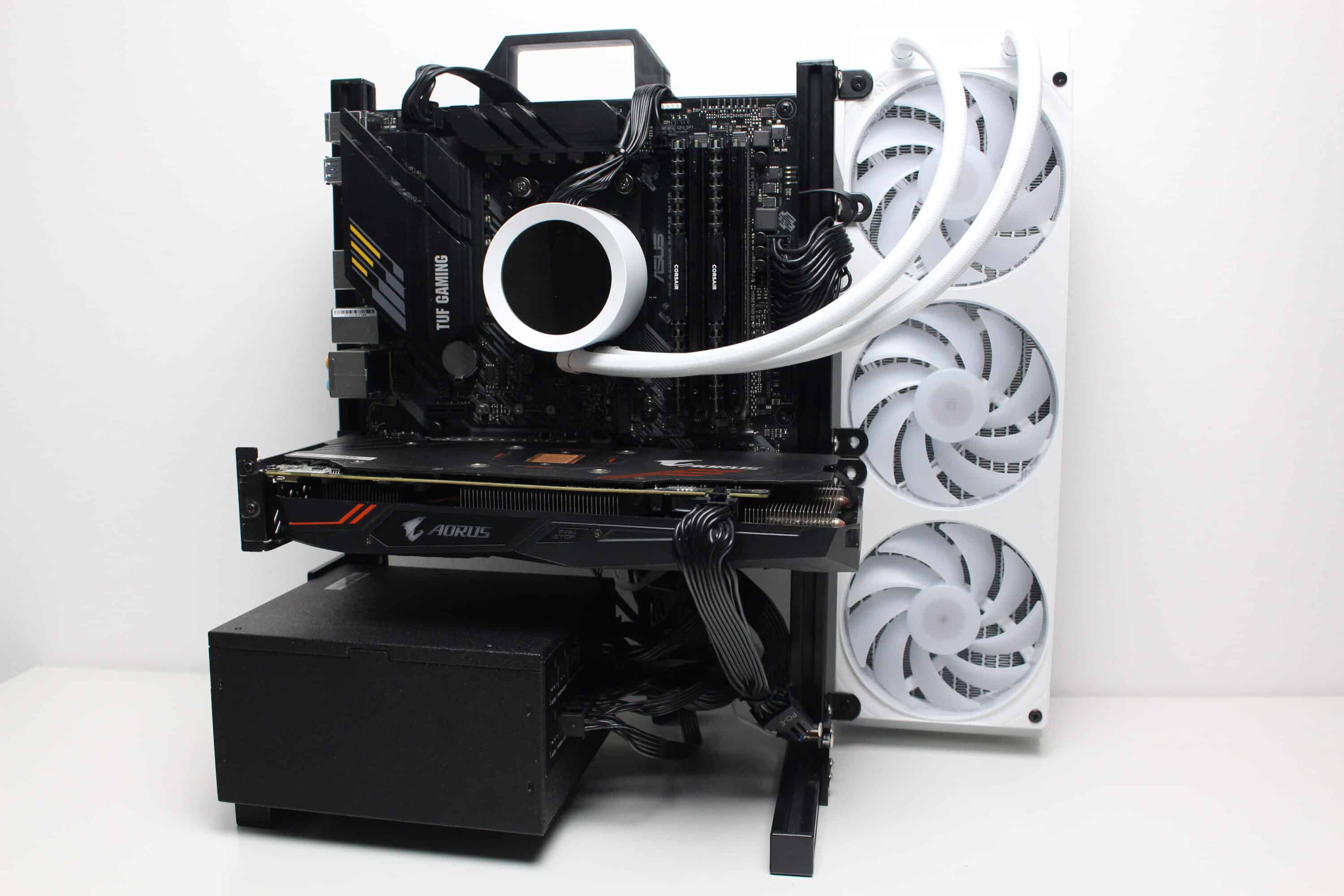 For the performance test, a test system is used which is mounted on a benchtable. This allows us to rule out factors such as heat build-up in the case. The test system consists of the following components.