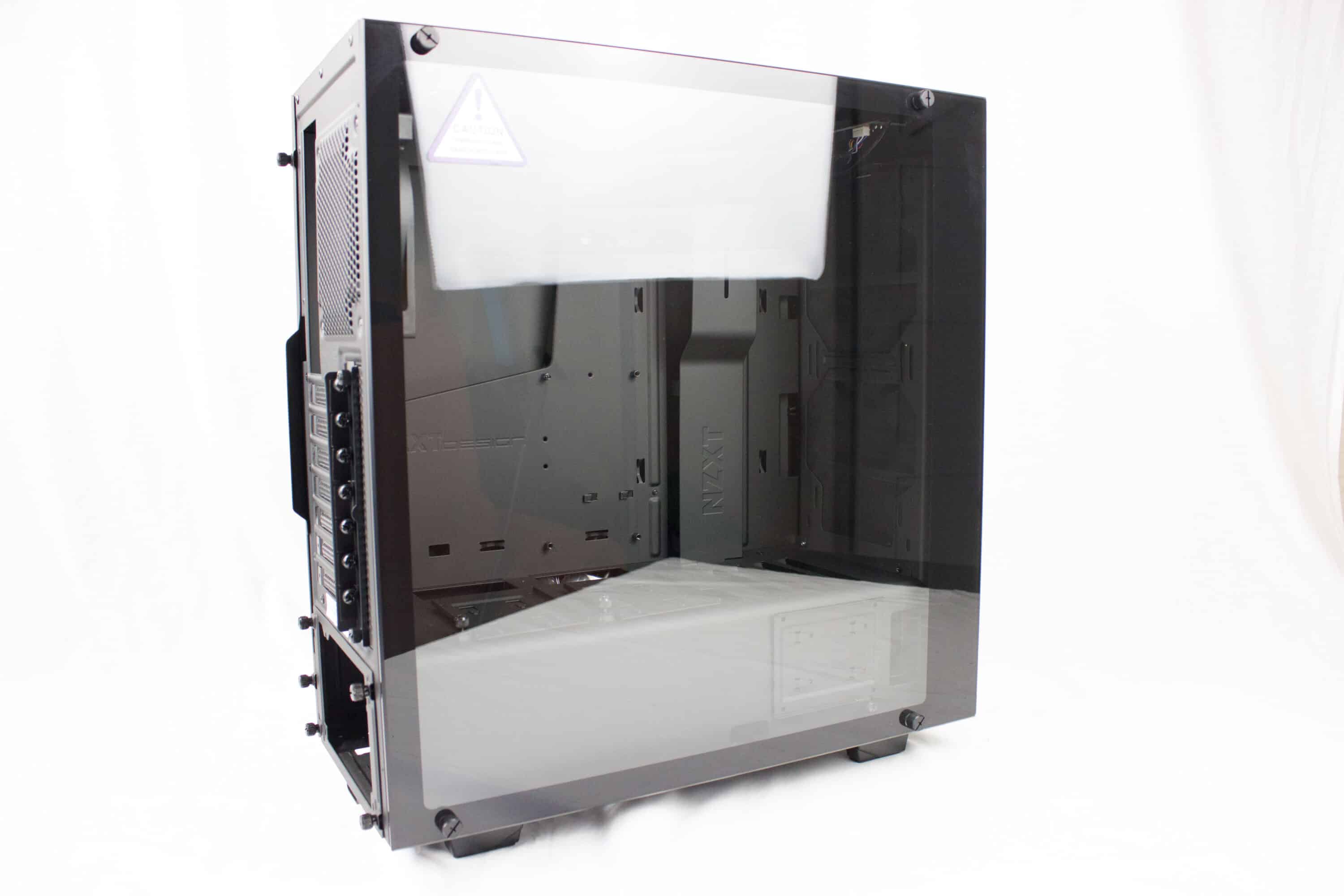 We tested the case in plain matt black. The housing is available in the colours matt white, matt black, matt black with blue or red accents. The matt black case doesn’t set many accents, apparently NZXT doesn’t want that either. The S340 Elite convinces with its huge glass pane. Hardened glass with a little tint – sounds at first glance like a dream of Casemodder and users who like tidy cabinets and outstanding cable management. It’s the same! Even without much bling bling and with a relatively good cable management one would rather put the case on rather than under the table. Glass? You can see every fingerprint on it. YES! A first touched disc captures fingerprints and dust almost intentionally. Fortunately, the washer can be easily removed by loosening a few screws and even by hand. This allows the window to be cleaned quickly. I can’t think of a better way.