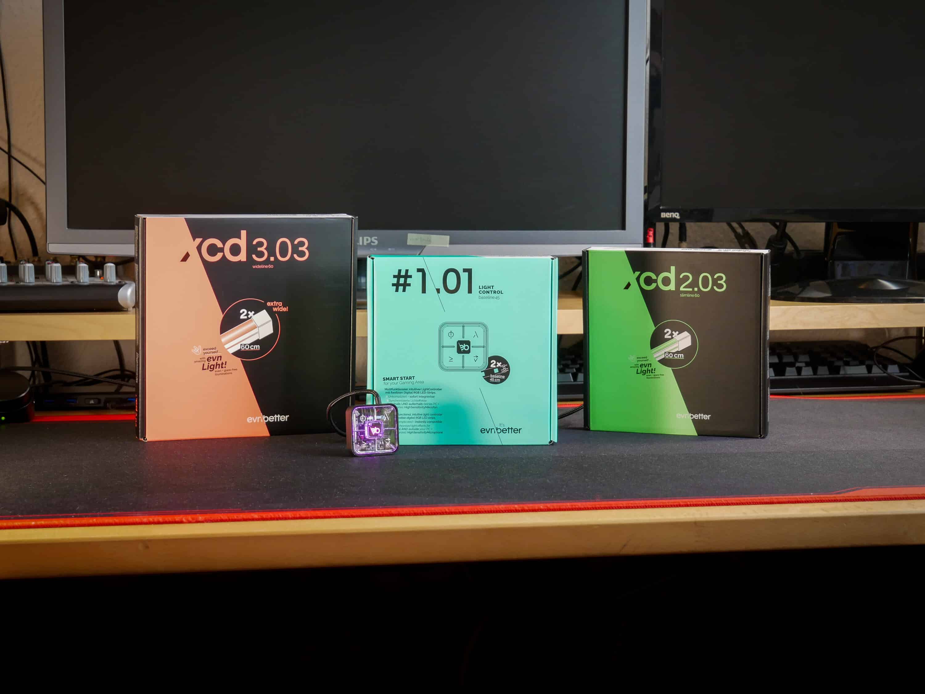 I was convinced by evnbetter’s lighting system with the #1 LightControl and the LED strips xcd 1 Baseline, xcd 2 Slimline and xcd 3 Wideline.