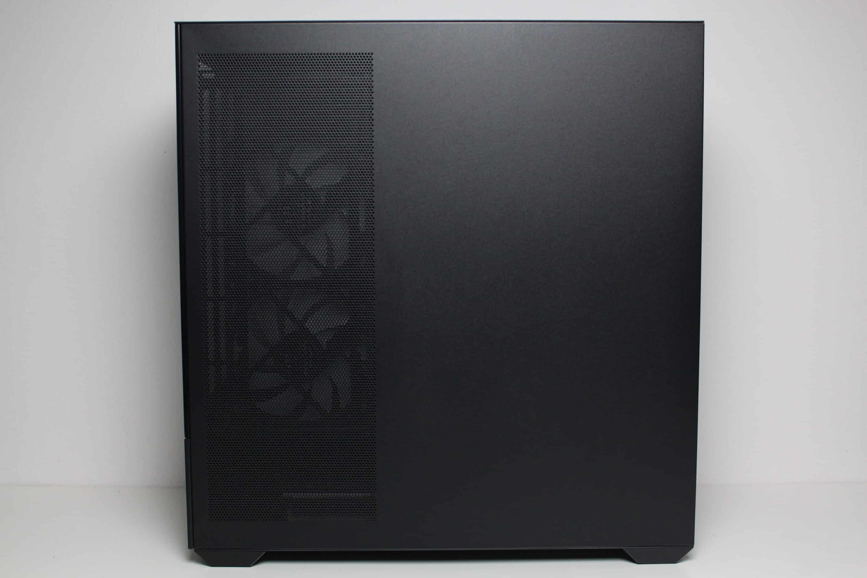 As already mentioned at the beginning, not only the front panel of the Sharkoon MK6 RGB but also the left side panel is made of tinted tempered glass. Removal is very easy thanks to the push-pin mechanism used. However, the side panel does not have a locking screw. The right-hand side panel is made of steel, is also equipped with a push-pin mechanism and reveals a large fan opening on the left-hand side, which also functions as a dust filter due to its fine structure.