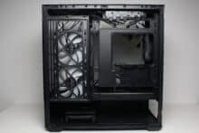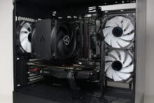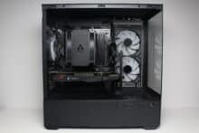We didn’t like the lack of decoupling when mounting data carriers and the fan noise at full speed. However, the latter is largely compensated for by the wide speed range and the low minimum speed. Compared to the larger Sharkoon AK6 RGB, the price difference of just €5 seems relatively small. However, mini towers are often less popular than midi towers, which is why the manufacturer has to expect a lower margin.