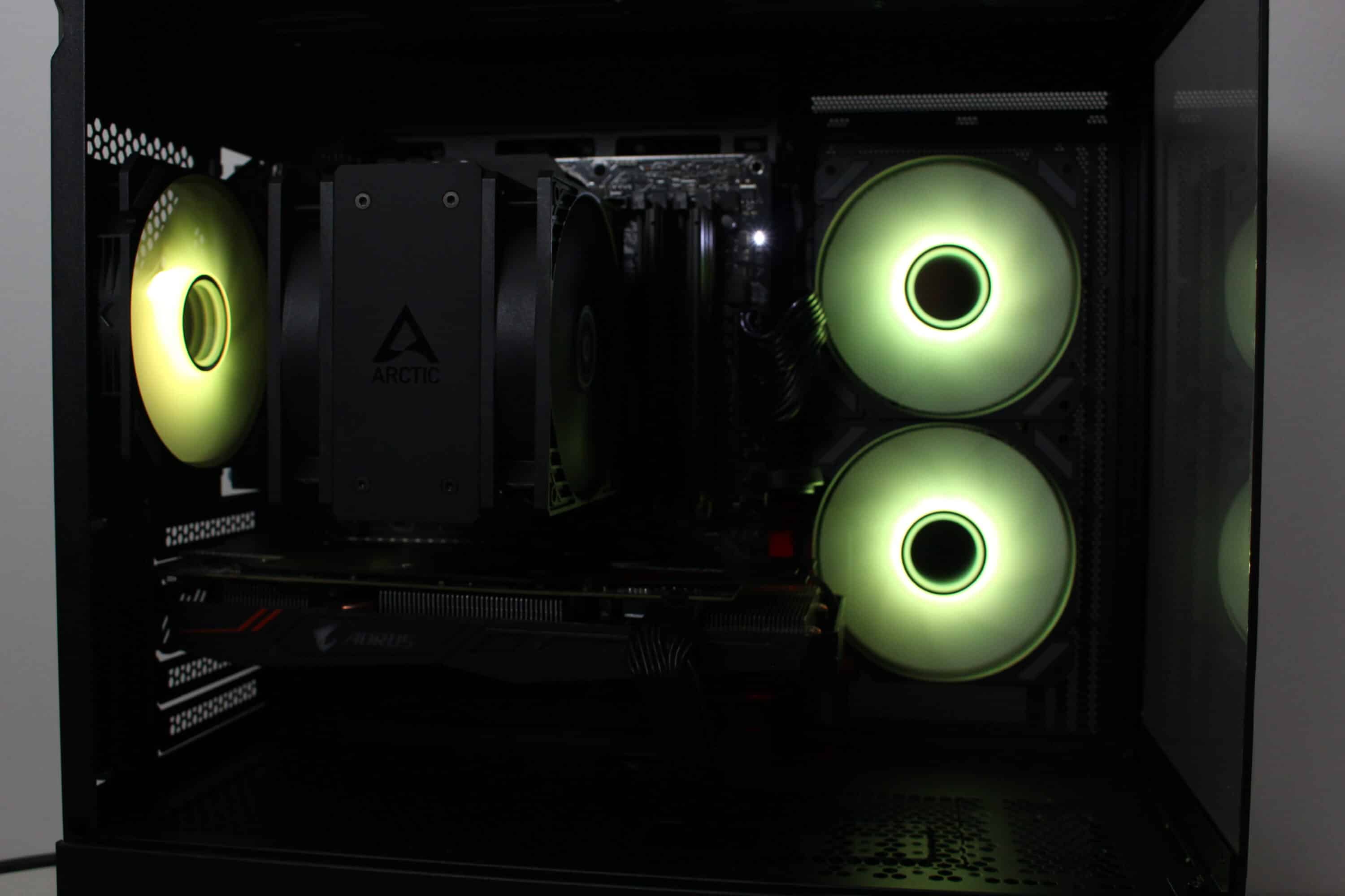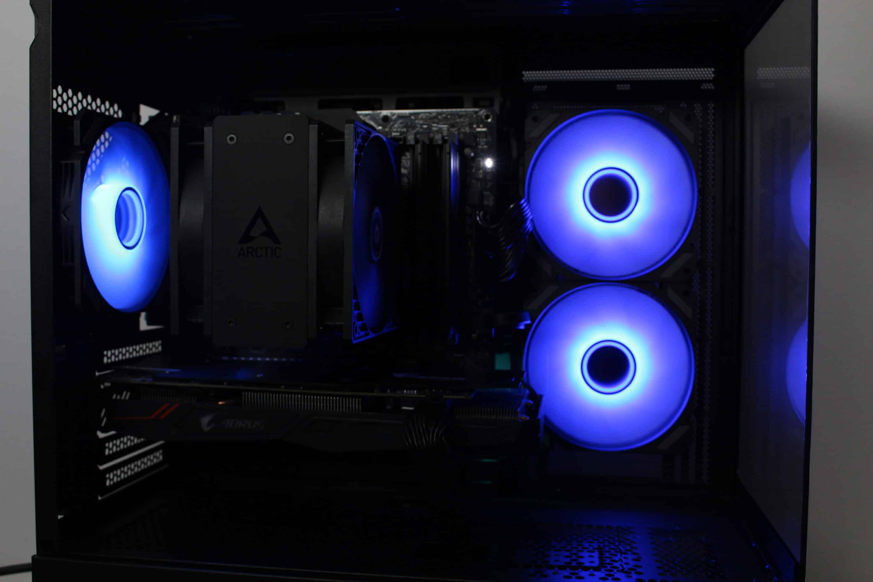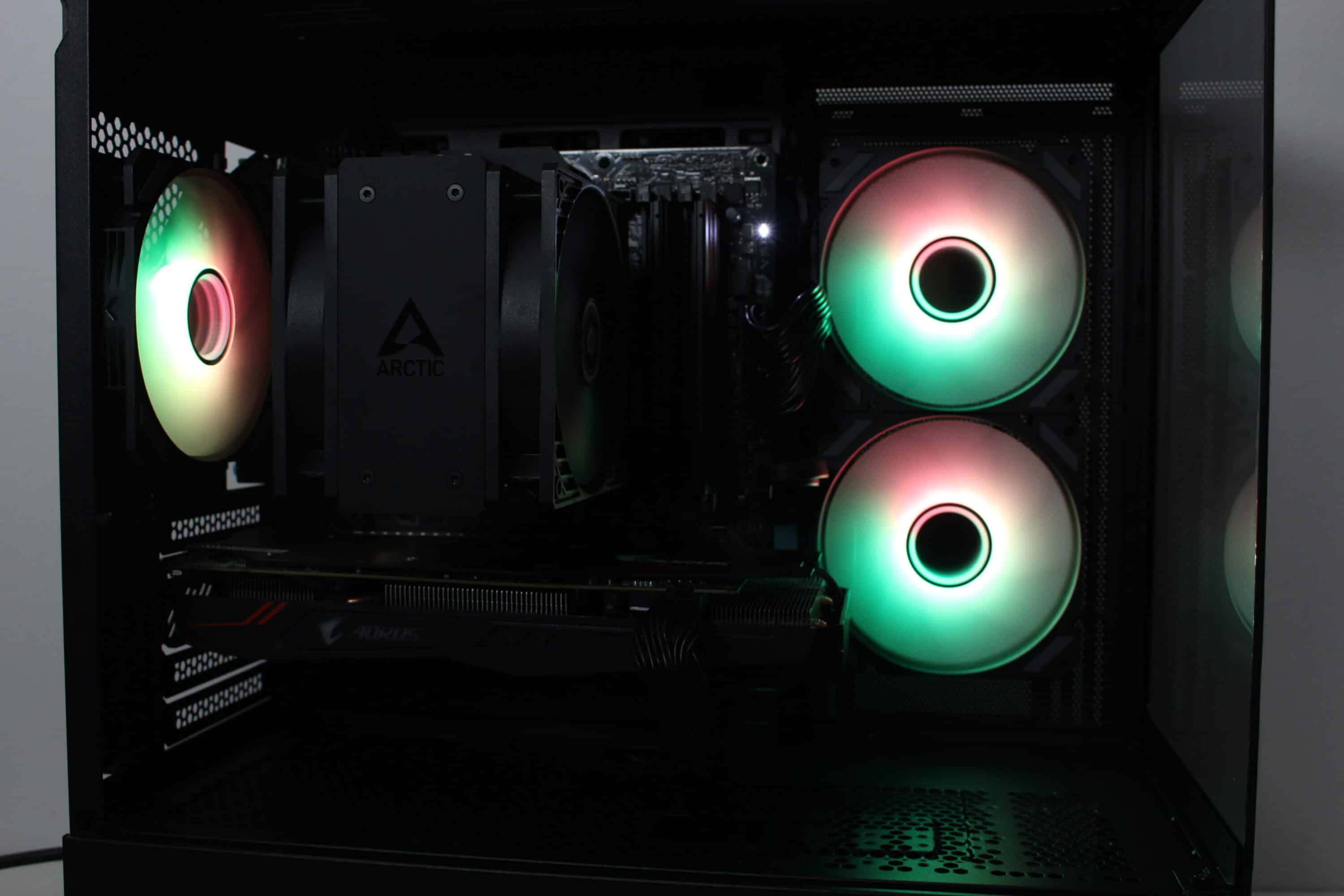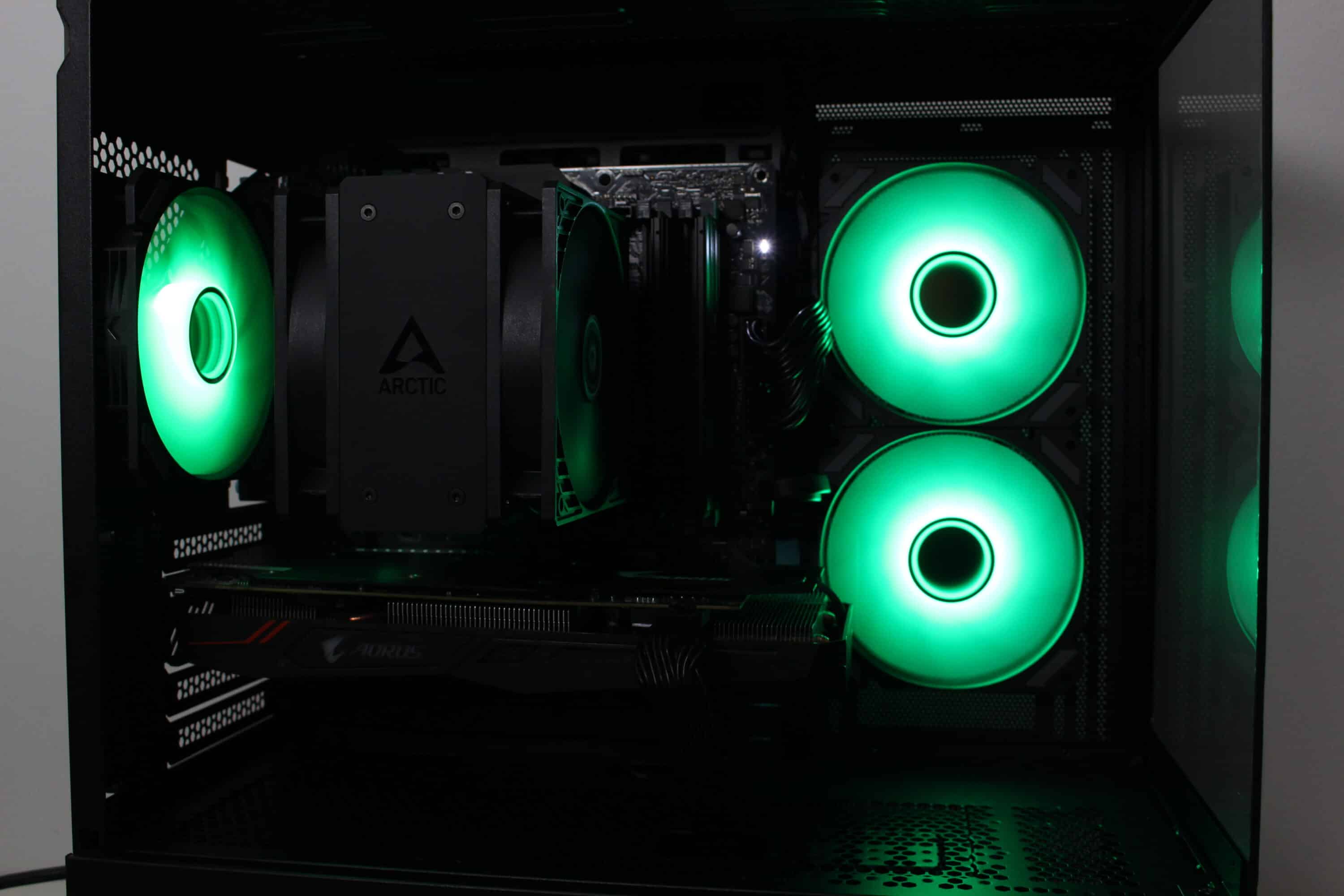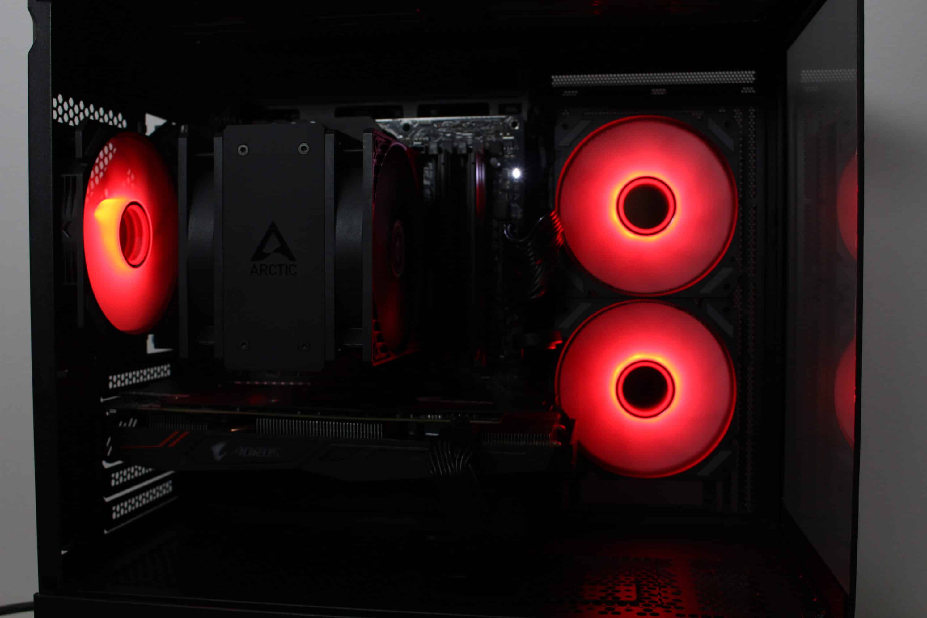 However, at full speed of almost 1800 revolutions per minute, it is not surprising that the fans can be clearly heard from the case. Nevertheless, they make a lot of noise and ensure proper cooling of the processor and graphics card. Thanks to the wide speed range, the fans can also be operated much more quietly or silently.