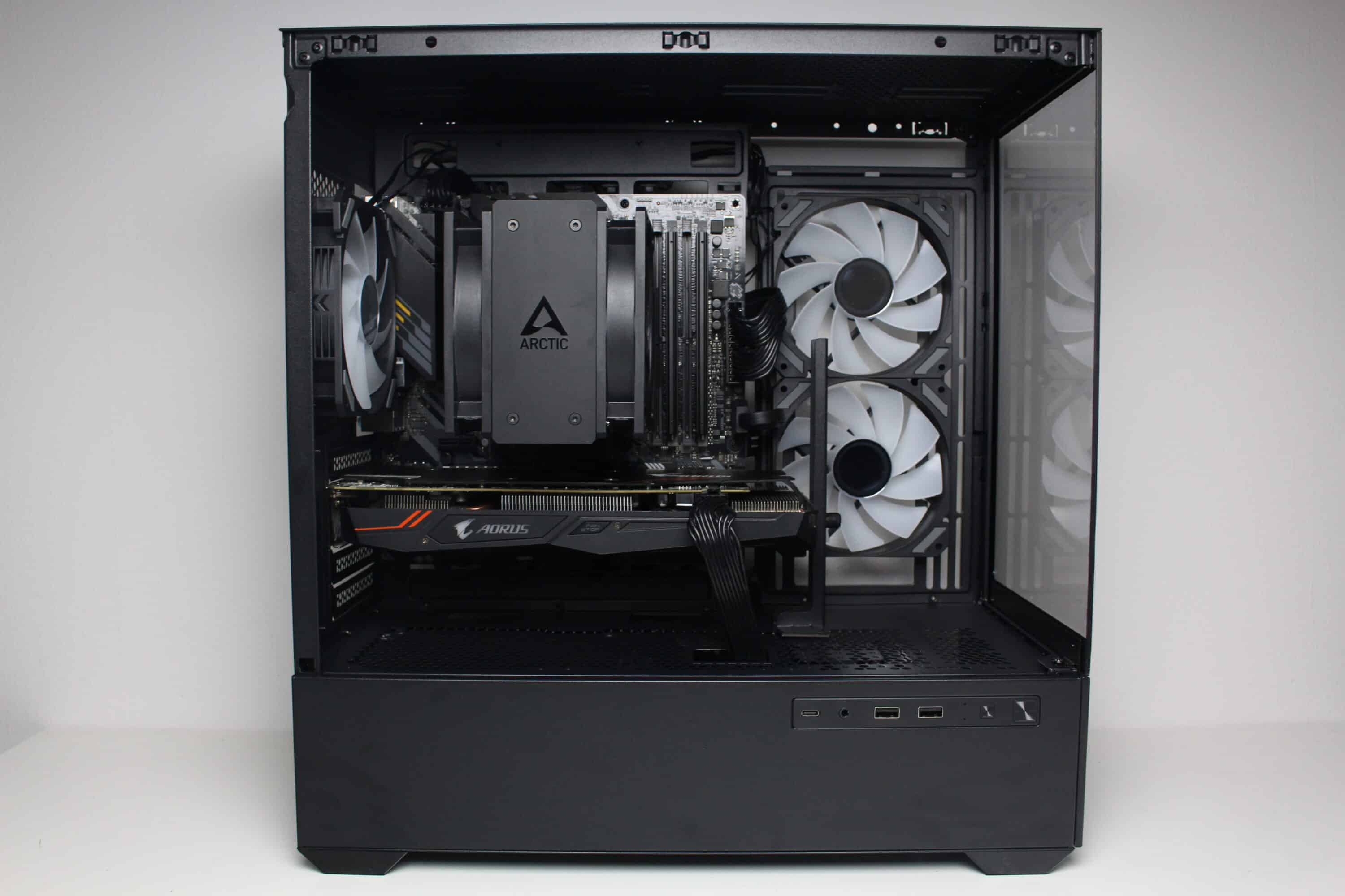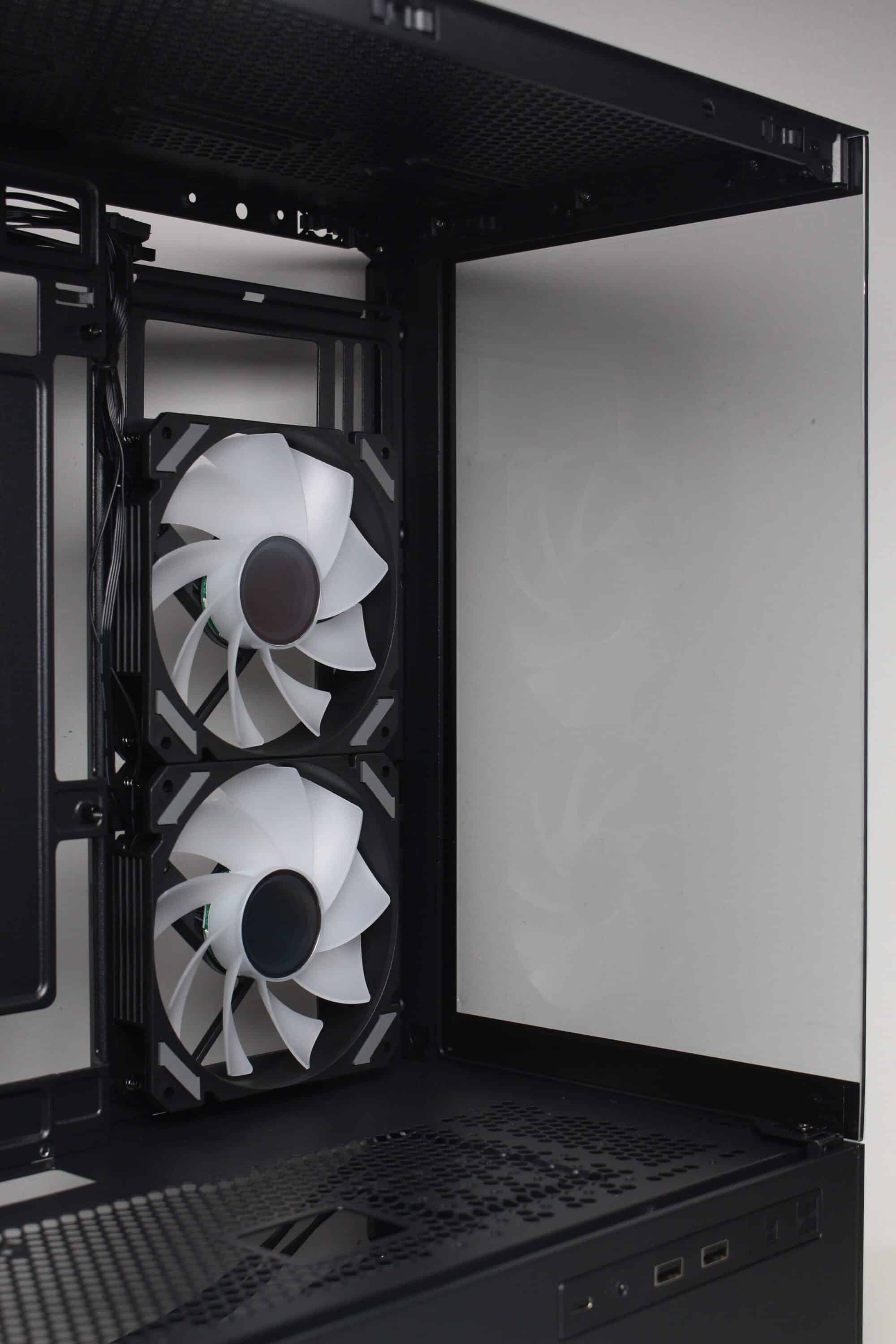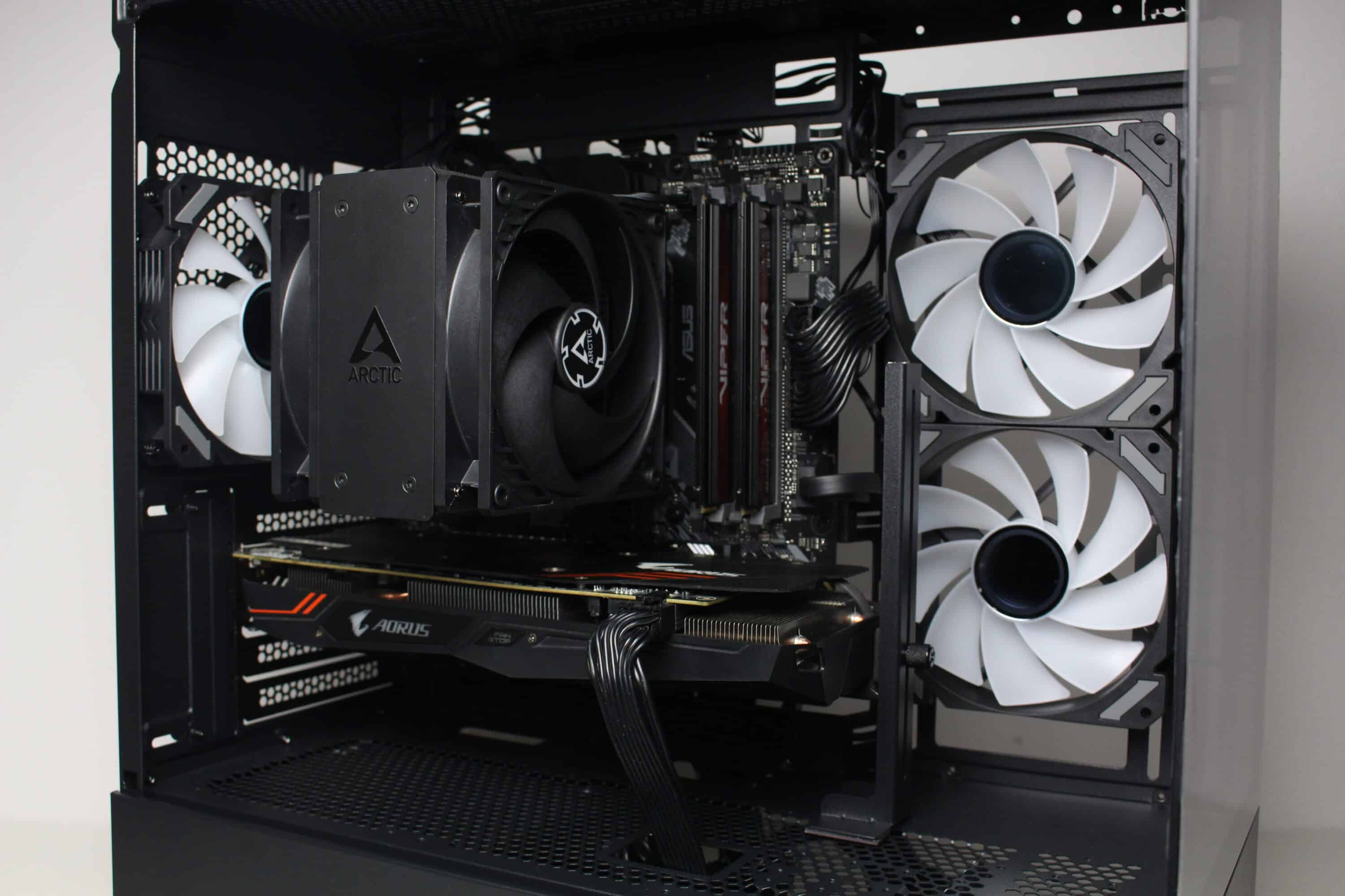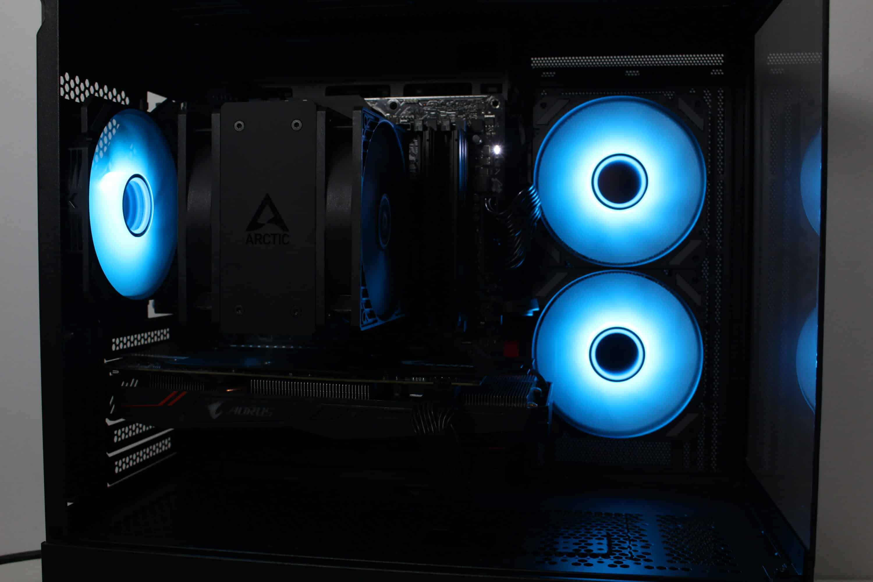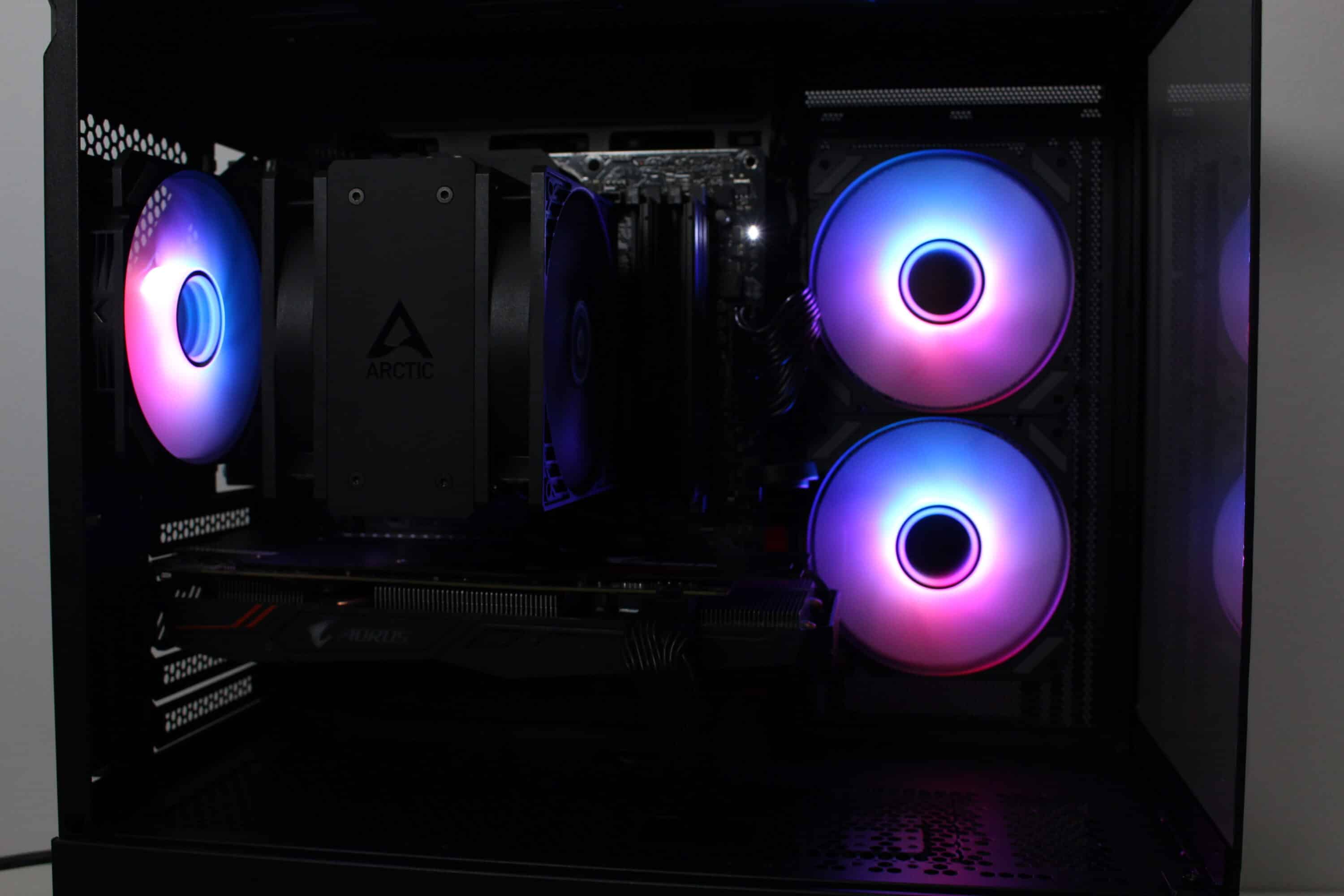 However, at full speed of almost 1800 revolutions per minute, it is not surprising that the fans can be clearly heard from the case. Nevertheless, they make a lot of noise and ensure proper cooling of the processor and graphics card. Thanks to the wide speed range, the fans can also be operated much more quietly or silently.