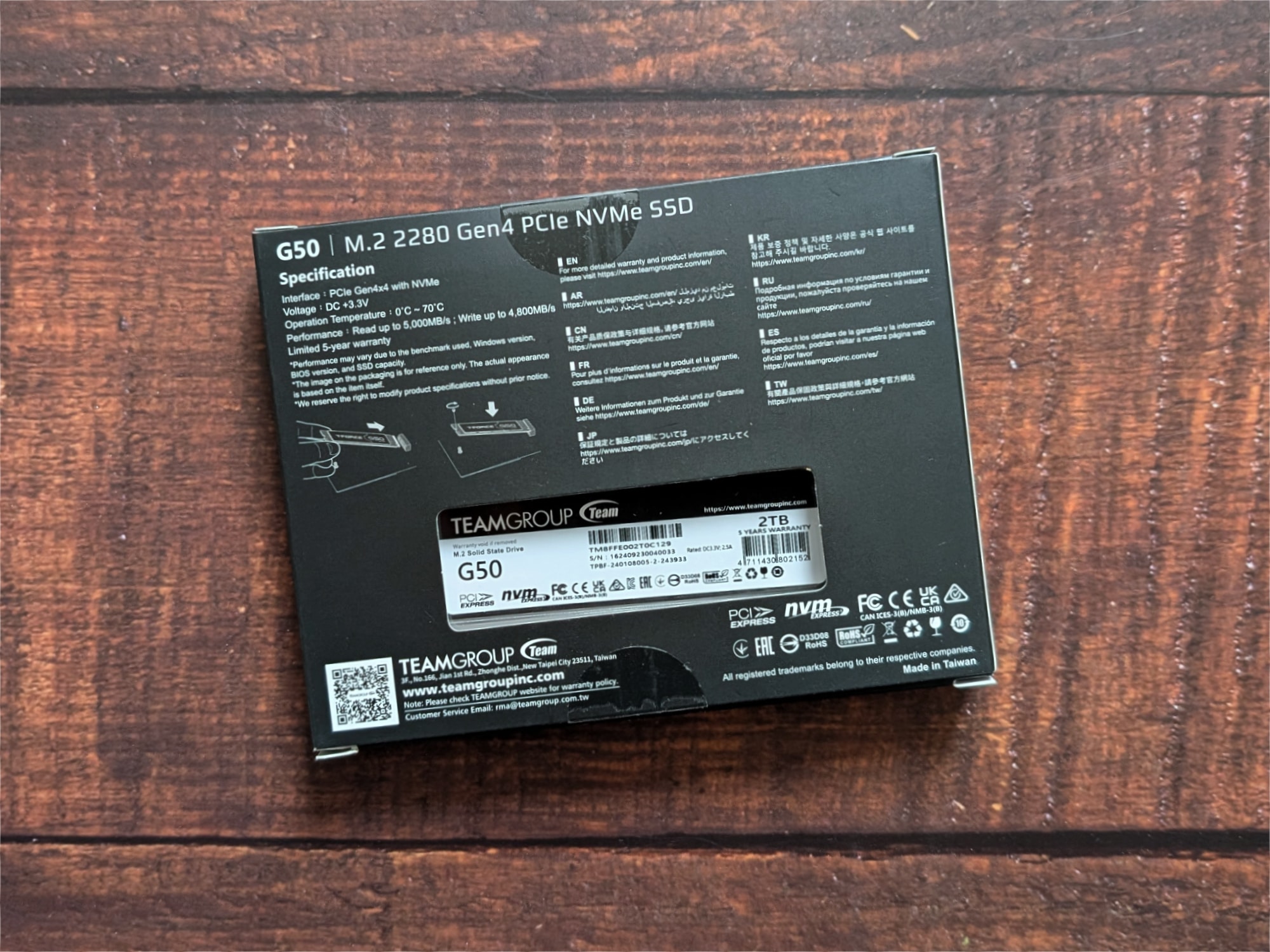 The warranty period of the TeamGroup T-Force G50 is 5 years or until the TBW value of 1,300 TB is reached for the 2 TB model, if this is reached earlier.
