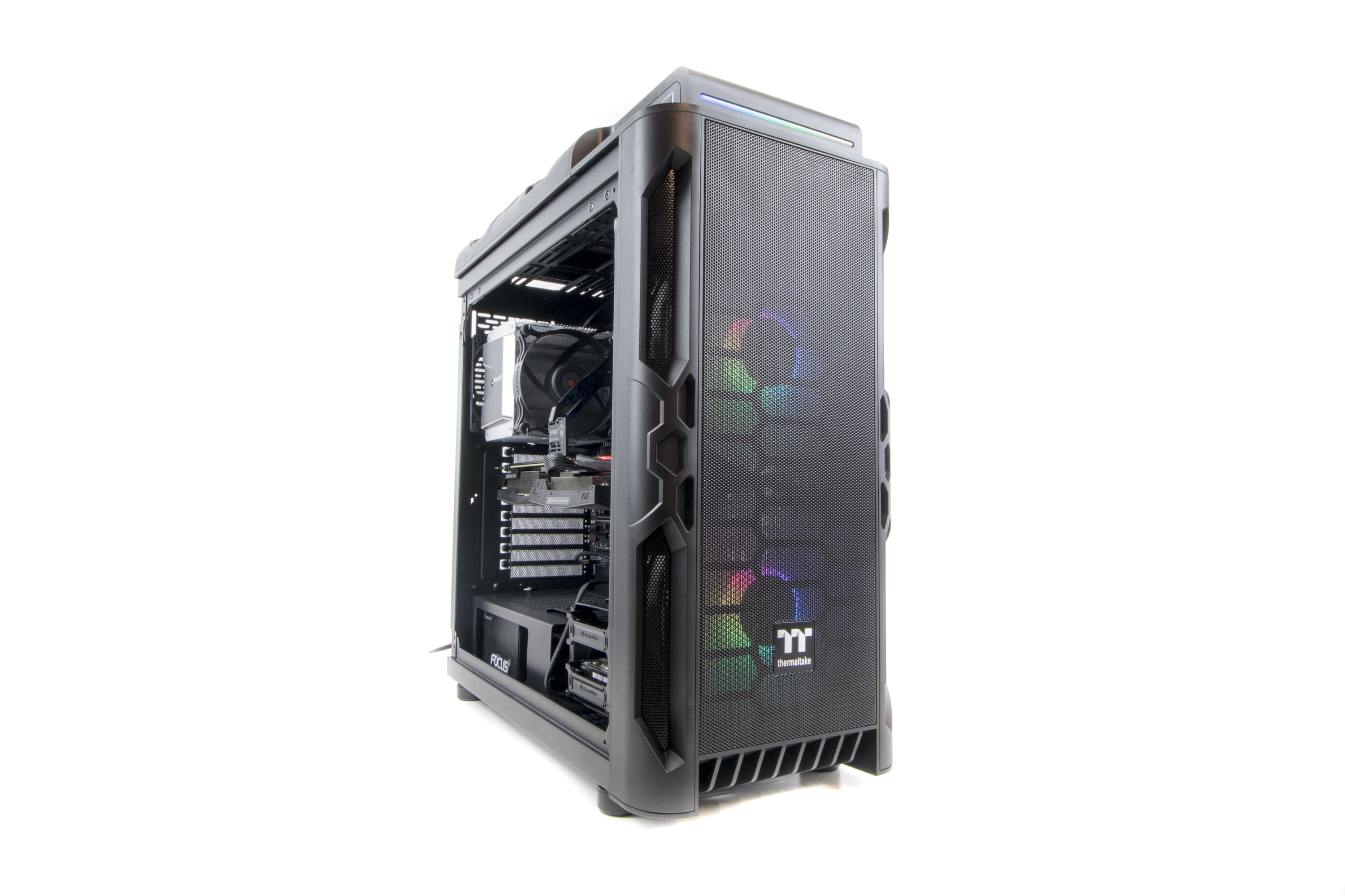 | Fans: | front: 3x 120 mm, 3x 140 mm or 2x 200 mm (pre-installed, RGB-illuminated) Rear: 1x 120 mm (pre-installed) Cover: 3x 120 mm, 2x 140 mm or 1x 200 mm |