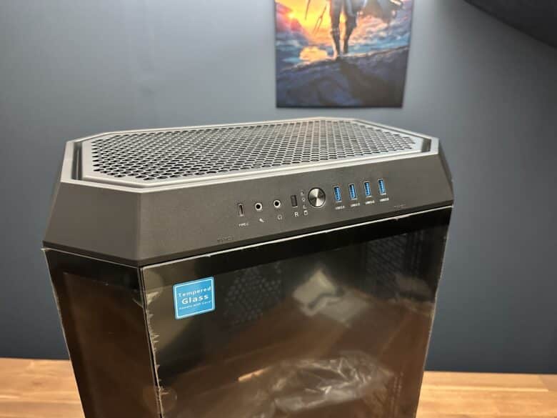 A major plus point is the sophisticated cooling concept: the large number of fan slots and the continuous perforation ensure excellent air circulation and reliably prevent heat build-up. Even during intensive use, the system remained pleasantly cool and the temperatures of the components were within an optimum range. The interior still leaves enough room for additional or more powerful cooling components.