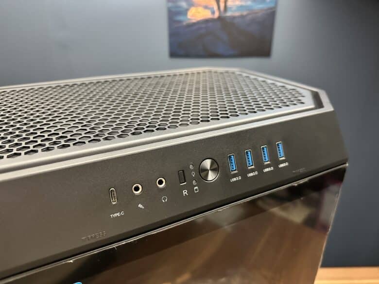 | Front connections: | 1x USB 3.2 Type-C / 4x USB 3.0 / 1x HD audio |