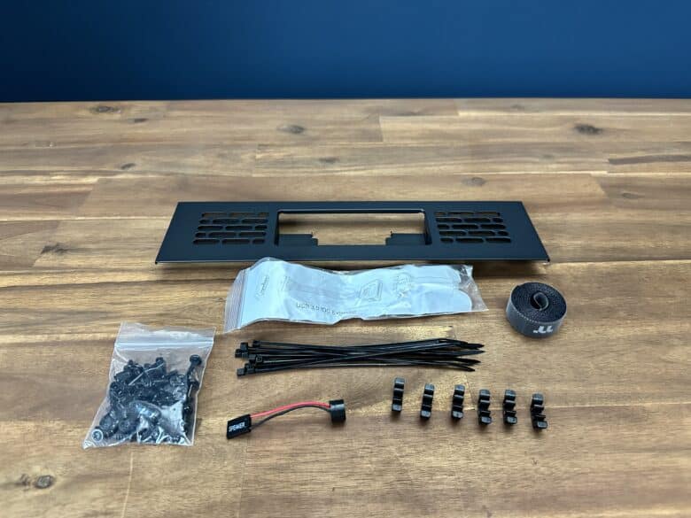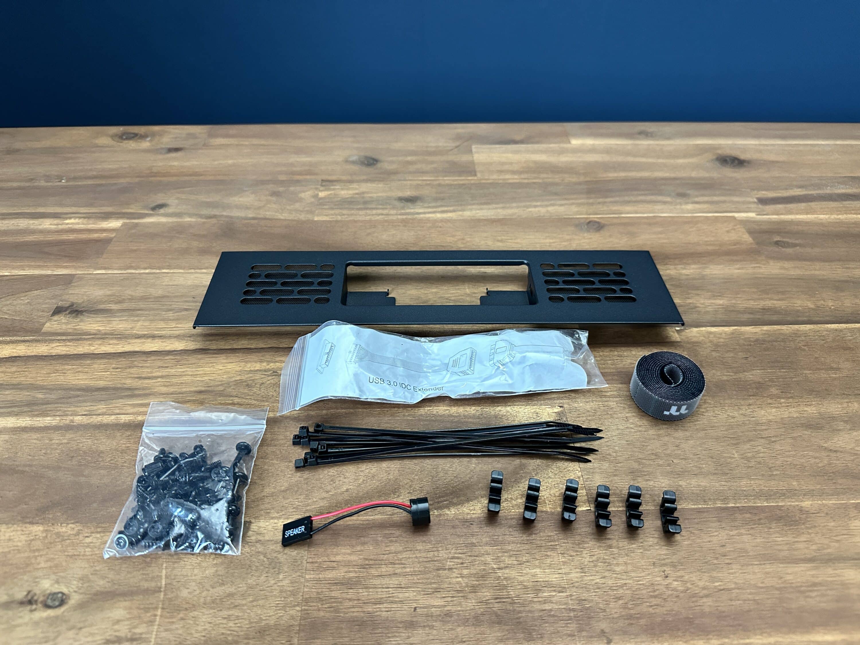 Thermaltake also includes all the necessary screws and accessories for tidy cable management. The included accessories for securely mounting the graphics card are particularly practical, providing additional stability and protection. The Tower 600 also includes an interchangeable front panel that allows the optional LCD screen kit to be installed to further enhance the look and function of the setup.