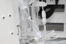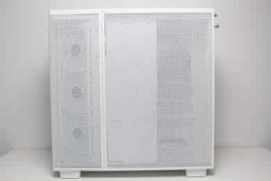 On the outside, the View 380 XL TG ARGB looks like its little brother, just a little bigger. Visually, this midi tower can be categorized as an “aquarium” case. The front is dominated by a pane of untinted tempered glass, which is covered with two protective films at the factory. Underneath, we find the I/O panel, which has one USB-C and two USB-A ports. It also has a 3.5 mm audio socket and two buttons for power and reset. All connection cables are commendably kept completely white.