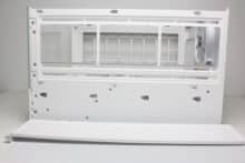 The last thing we’ll lose in this chapter is a word about the capacities for data carriers. Measured by its size and the space behind the mainboard tray, this is not a particularly presentable feature of this midi tower. Only one 3.5″ and 2.5″ or three 2.5″ data carriers can be installed on the hinged door at the same time, although there would theoretically be much more space under the power supply unit. In addition, there is no decoupling and installation is not tool-free.