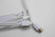 The Thermaltake View 380 XL TG ARGB comes with four pre-installed fans with ARGB lighting. We were able to determine ten LEDs per fan, which were installed in the fan hub. The connection is made via a daisy-chain connection on the 3-pin 5V ARGB header on the mainboard. Finally, a few impressions of the activated lighting.