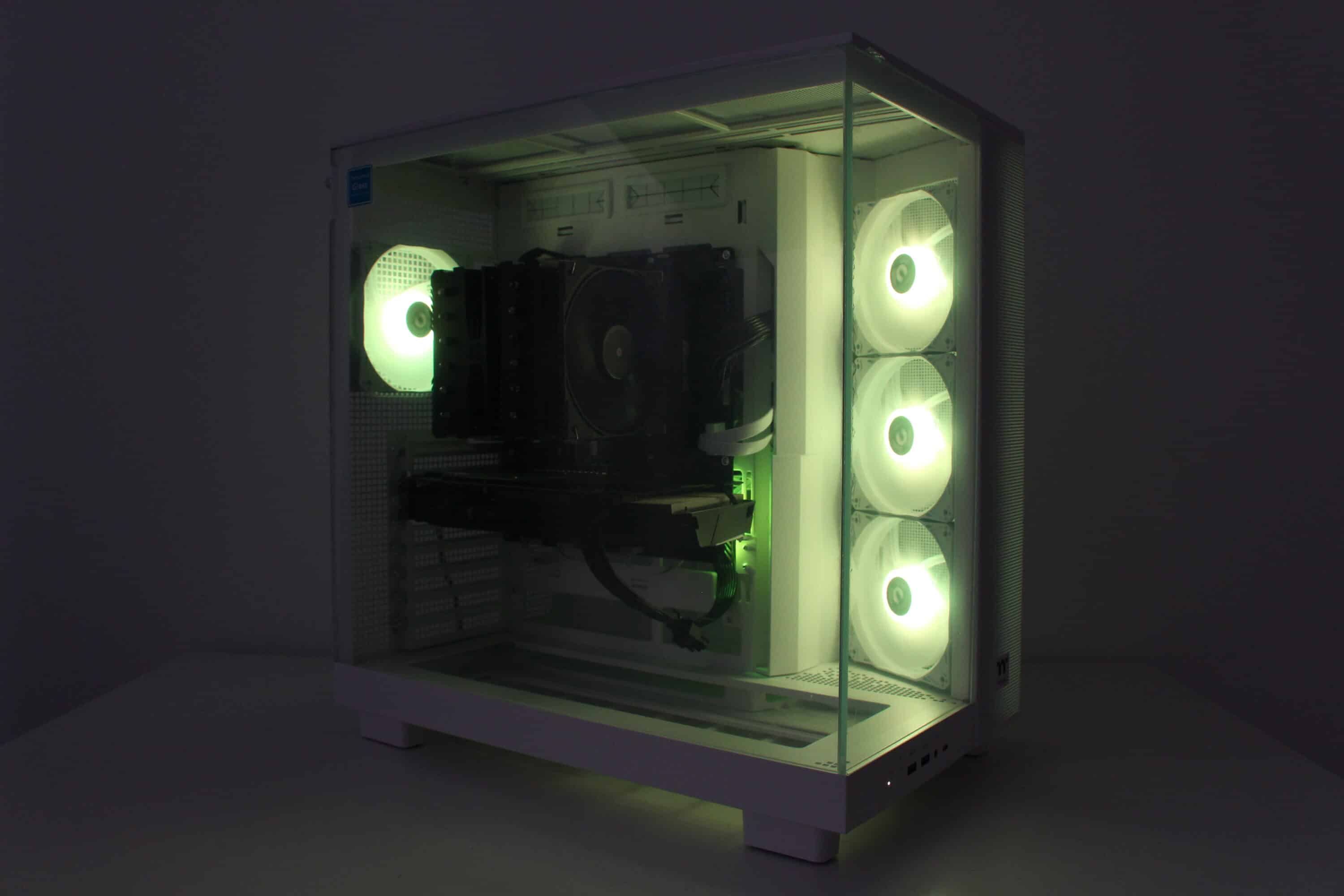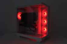 The case fans are barely audible at low and medium speed and are very discreet and not at all annoying. At full speed, a certain amount of air noise can be heard, which we would classify as audible but not disturbing compared to other case fans. Unfortunately, these fans are not free of background noise such as a quiet clacking noise.