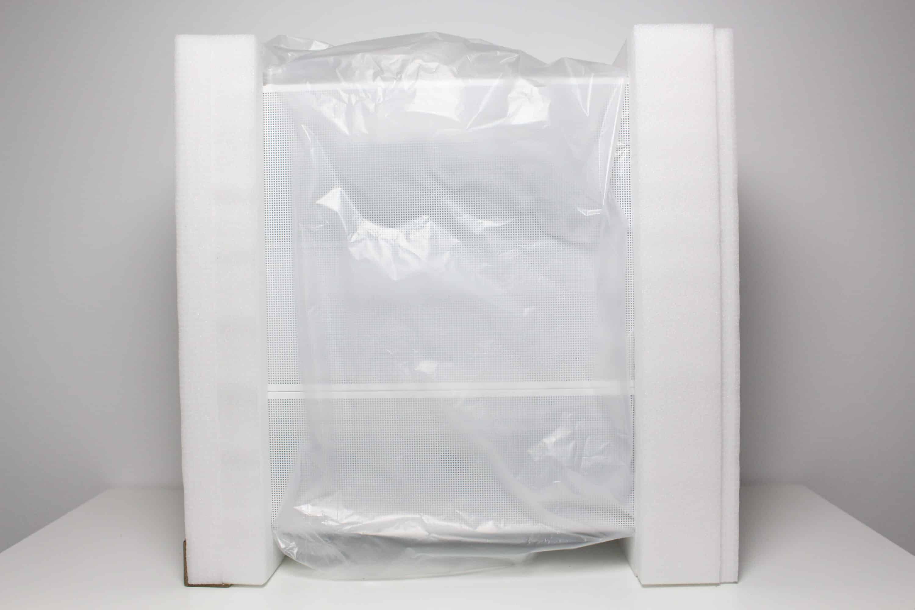 Inside the box, Thermaltake wraps the case with two blocks of soft foam and a plastic film. In addition, the foam has been stabilized in the front area with a strip of sturdy cardboard. Themaltake places the mounting accessories in a brown box, which in turn contains a practical accessory box. This contains all the necessary screws, Velcro strips, white cable ties, a motherboard speaker and a GPU bracket.