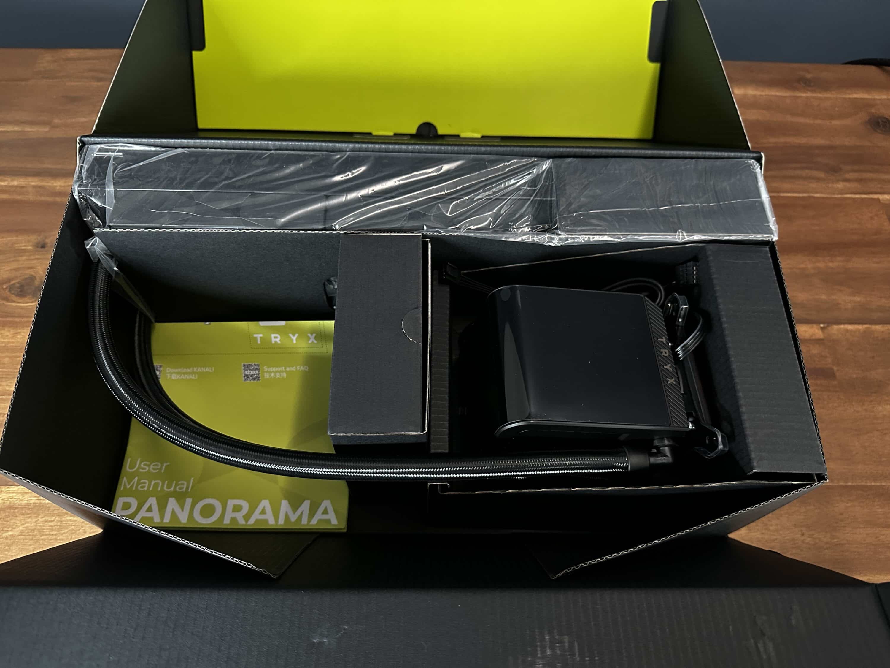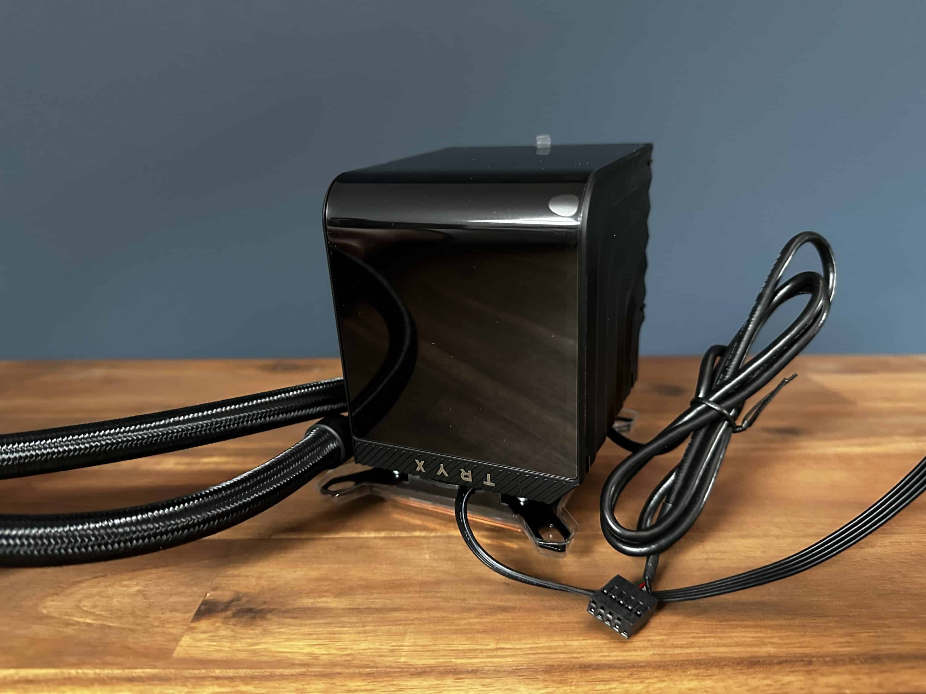 The pump body with its integrated display attracts attention as soon as it is unpacked. The first impression: “bigger than expected!” The TRYX Panorama 240 immediately stands out from many other all-in-one water cooling systems thanks to its striking presence.