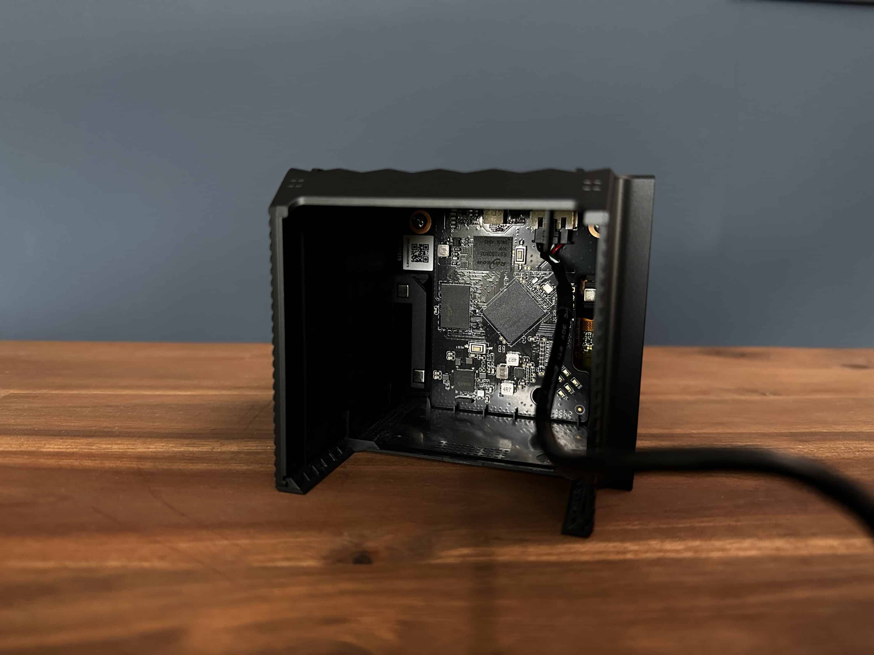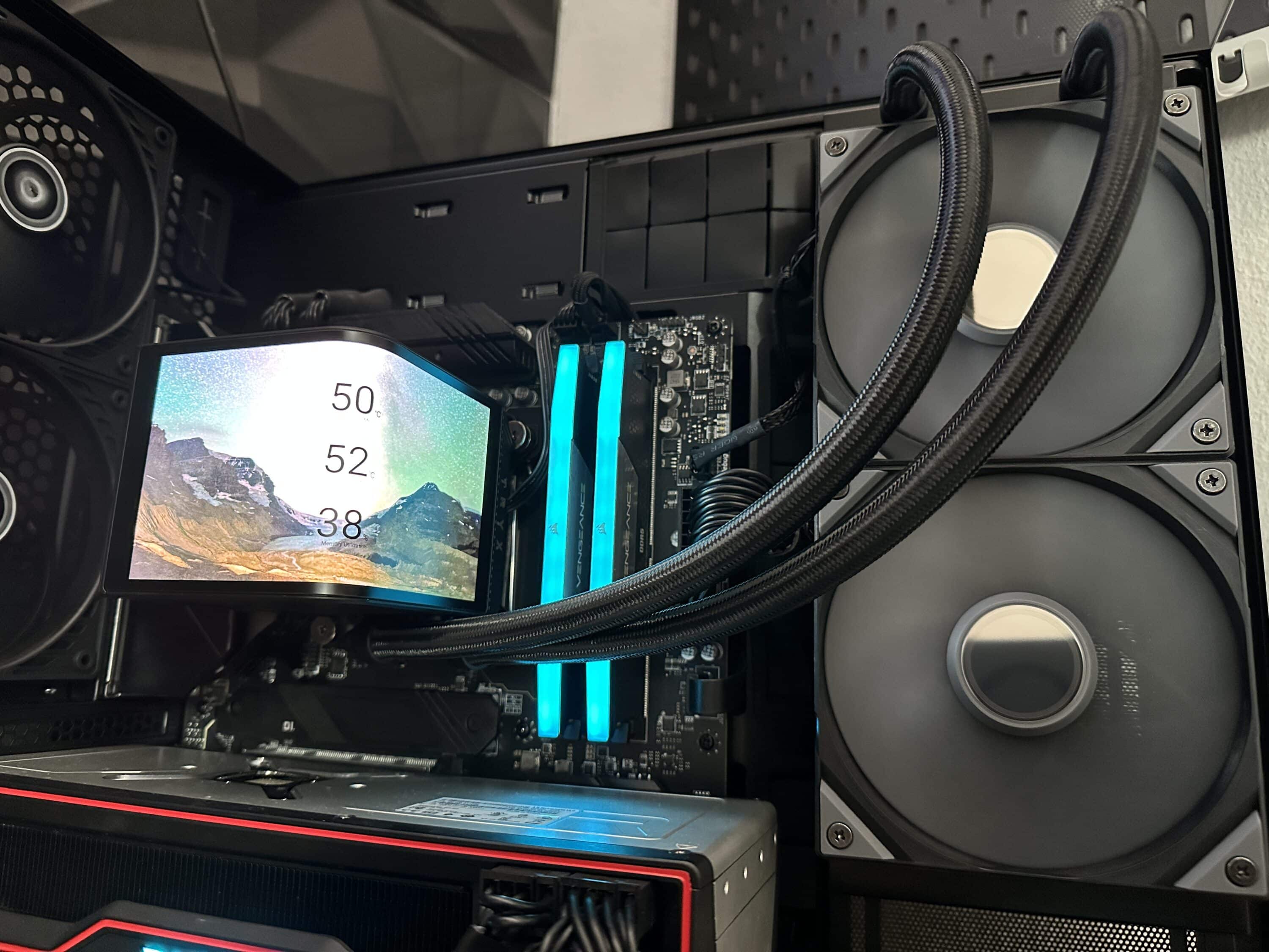 One practical detail is that the display module is easy to remove. The pump unit and fan can be seen underneath, which makes maintenance and cleaning easier and underlines the well thought-out design of the TRYX Panorama 240.