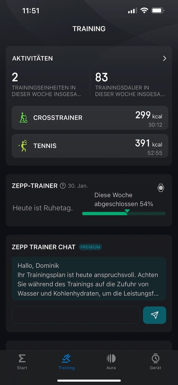 Although the T-Rex 3 supports sleep recording, this was not actively used in the test – partly due to the rather clunky design, which is less comfortable to wear at night. Generally speaking, the accuracy of sleep analysis via smartwatches is limited for technical reasons and only partially reliable. According to external tests by specialized platforms, even the T-Rex 3 does not deliver consistently precise results. In addition, the detailed evaluation of sleep quality in the Zepp app requires a paid subscription (Zepp Aura), which makes its use unattractive for many.
