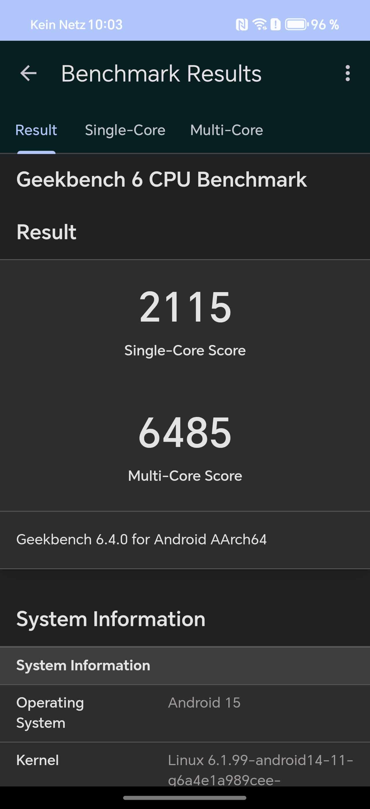| Geekbench 6 Multi-Core | 6,485 pts. |
