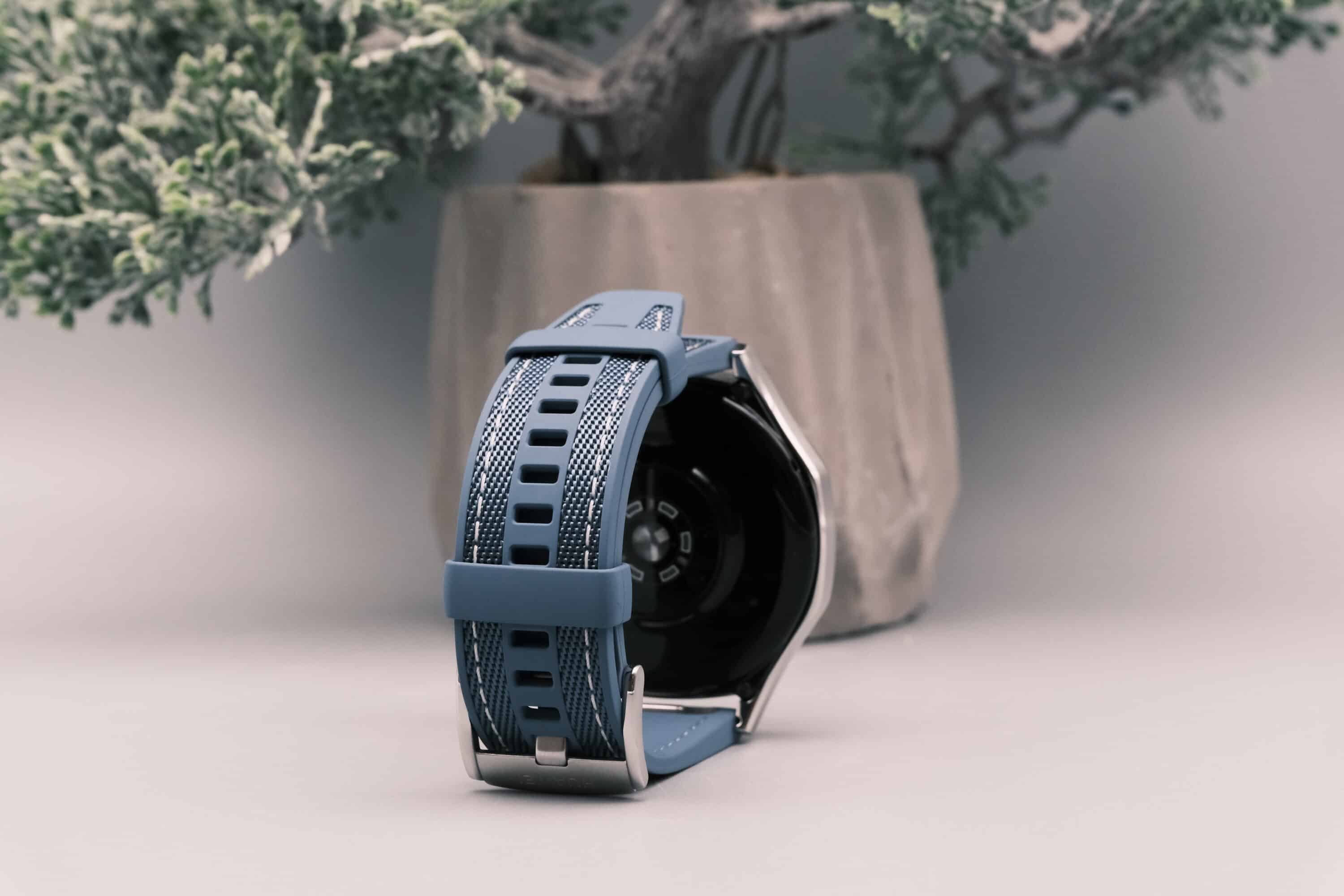 The Watch GT5 is available in 46 mm and 42 mm sizes. New this year is the “Blue Woven” model, which comes in a new blue color and features a strap that combines fluoroelastomer with a blue fabric.