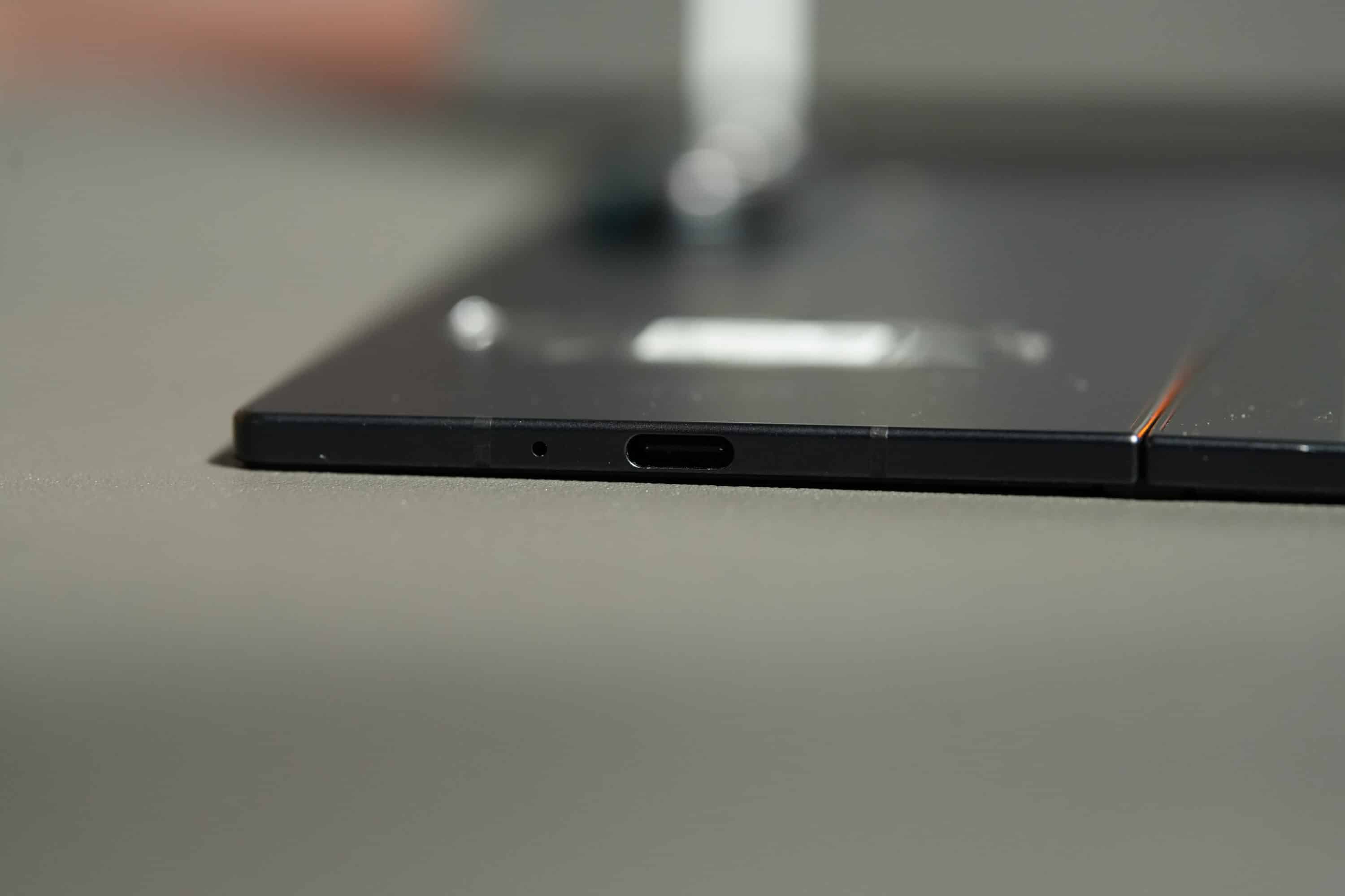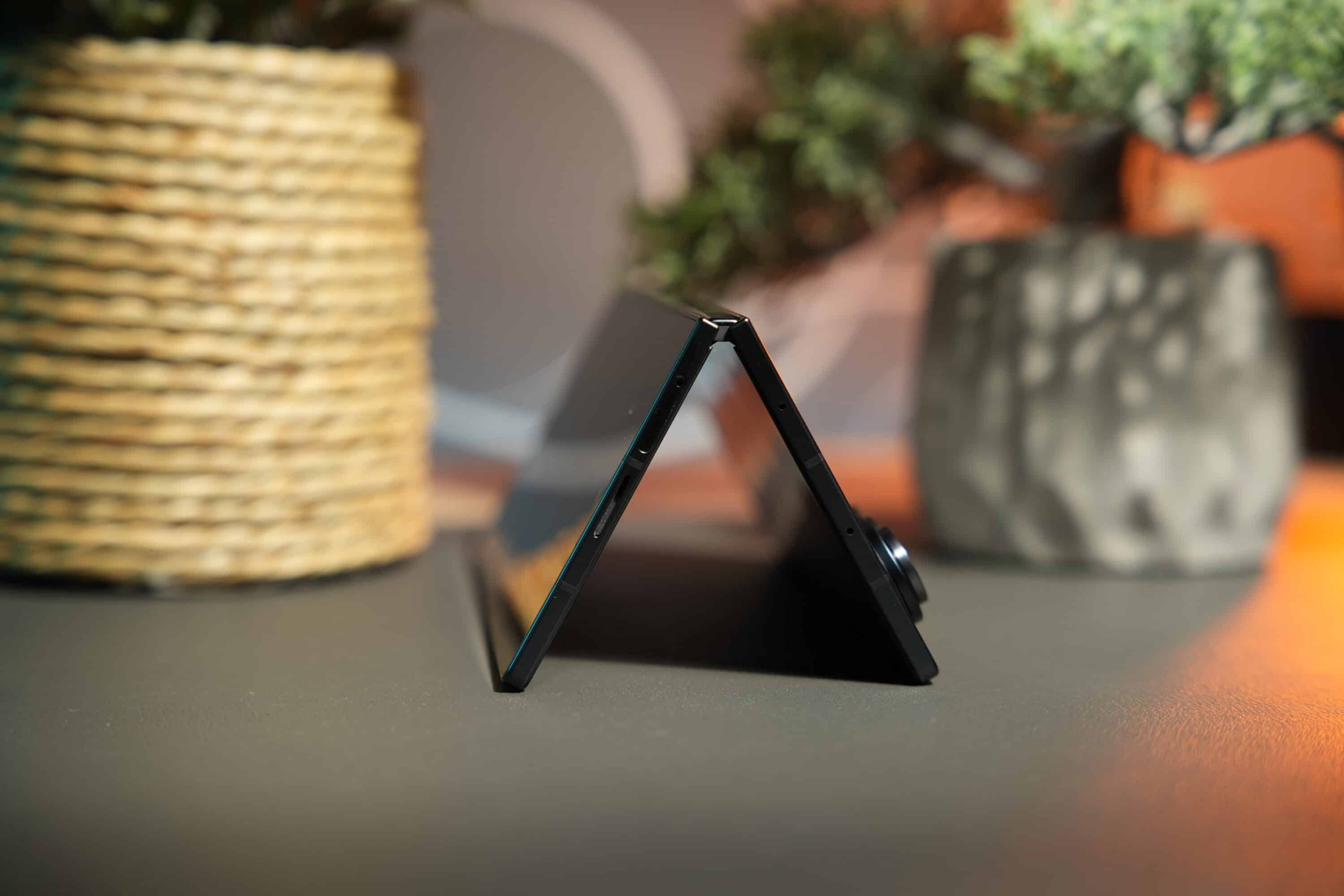 The fact that the fold in the middle is now virtually non-existent naturally has a positive effect on the thickness of the device. However, in my opinion, this makes it more difficult to open the Foldable, as both sides rest on top of each other with no space in between. Especially as the hinge is quite stiff, which makes it even more difficult to open. This could be a little tricky, especially for people with large hands.
