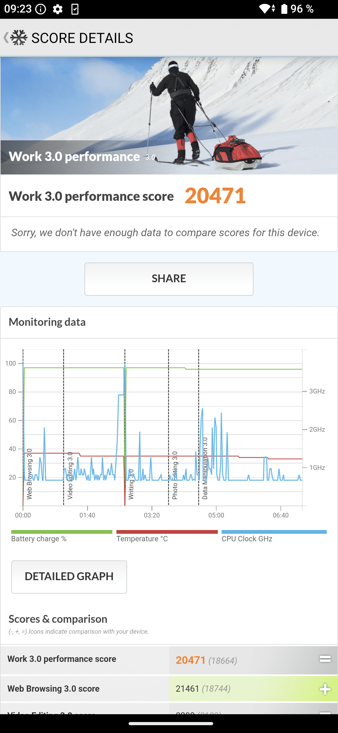 The system runs quickly and reliably in everyday use. Apps start without delay and multitasking works smoothly. However, the Sony Xperia 1 VII gets noticeably warm under load and throttles performance comparatively quickly, which is evident in the 3D Mark stress test: