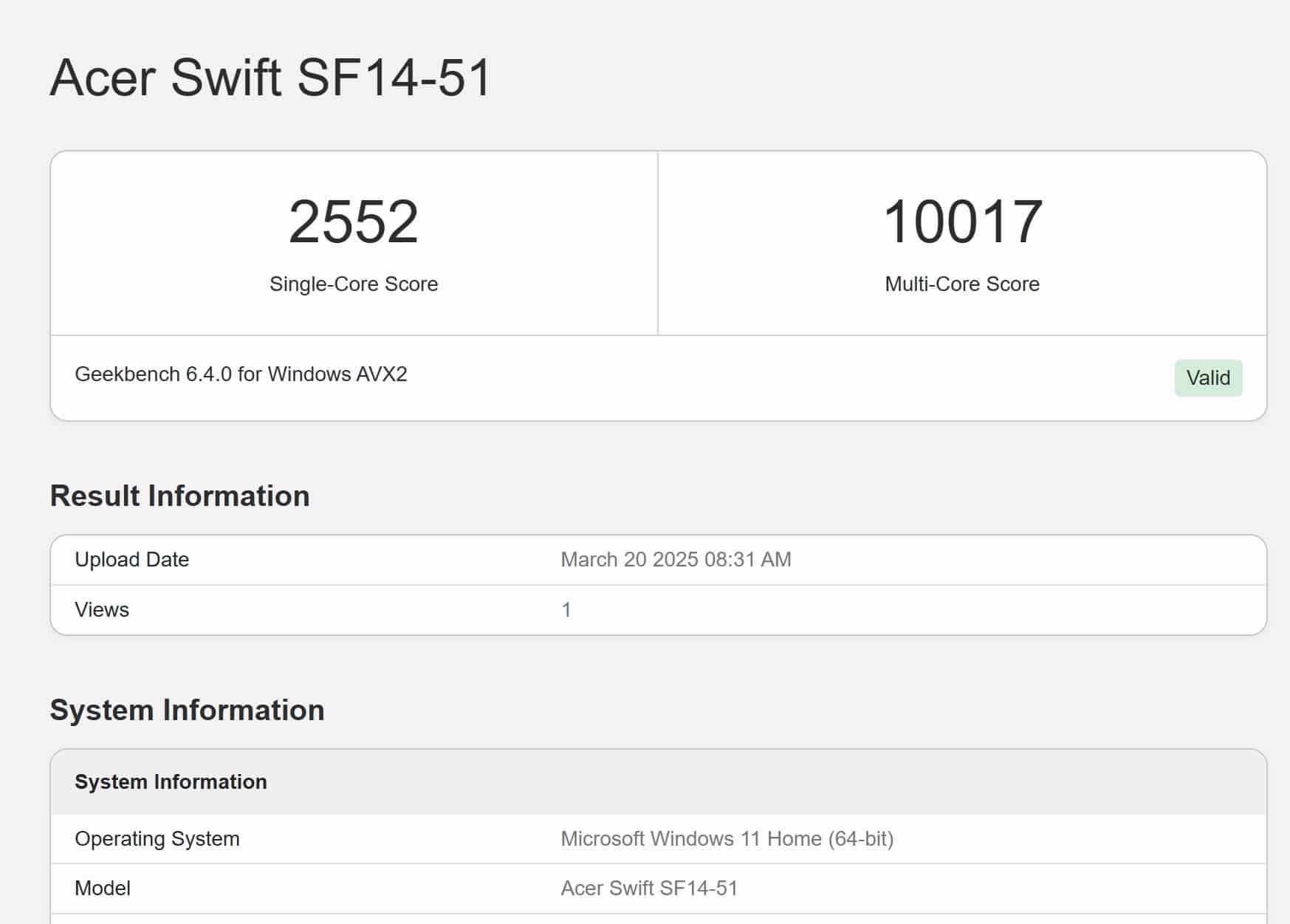 | Geekbench 6 Multi Core | 10,017 pts. |