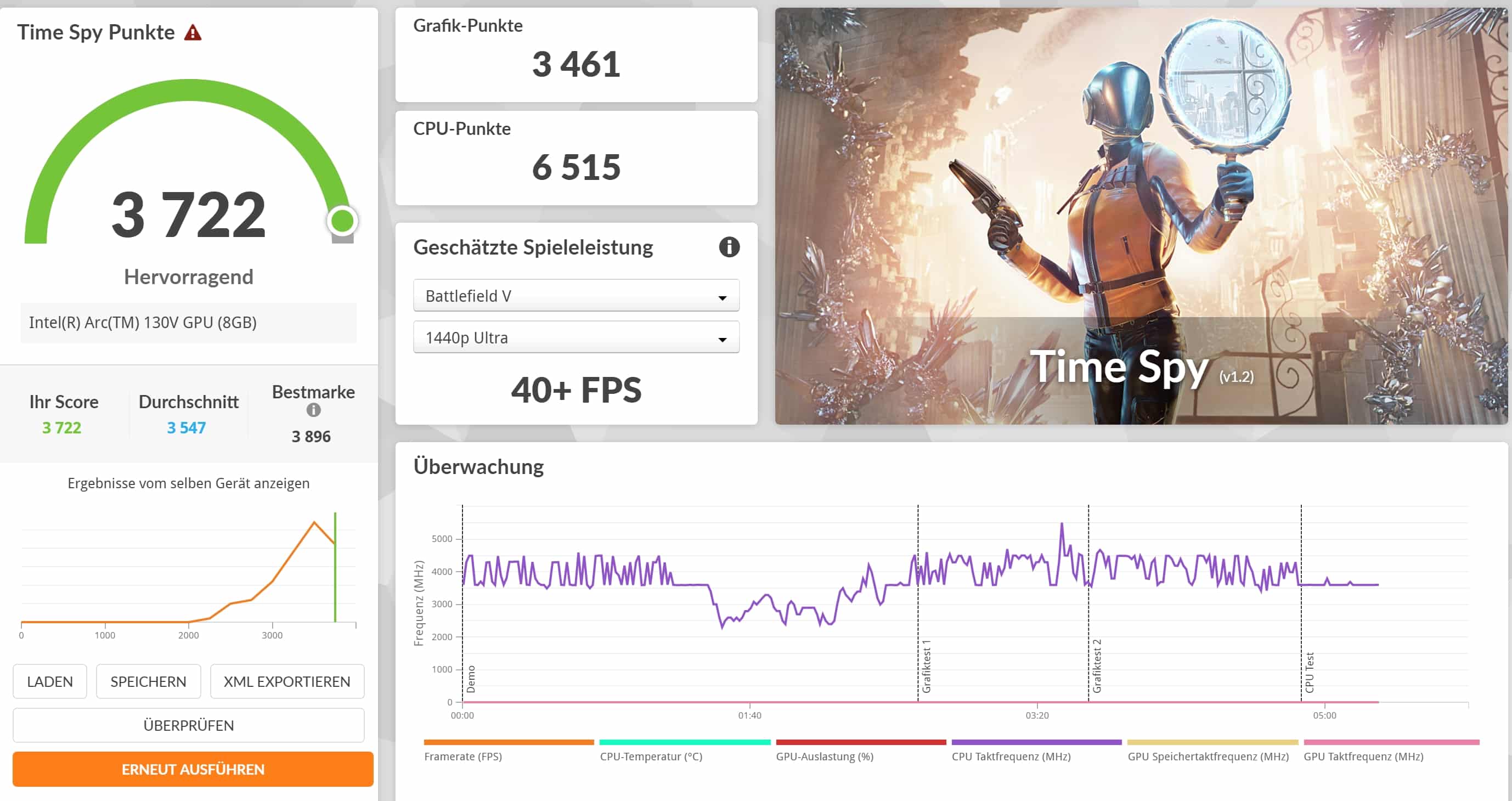 In terms of gaming and 3D performance, the Acer Swift 14 AI is clearly ahead of other notebooks with Intel Iris Xe and Intel Arc 1st generation solutions thanks to Intel Arc. You shouldn’t necessarily expect a powerful gaming notebook and the Arc Graphics 140V and AMD’s Radeon 890M deliver significantly more performance, but the notebook is definitely suitable for light gaming.