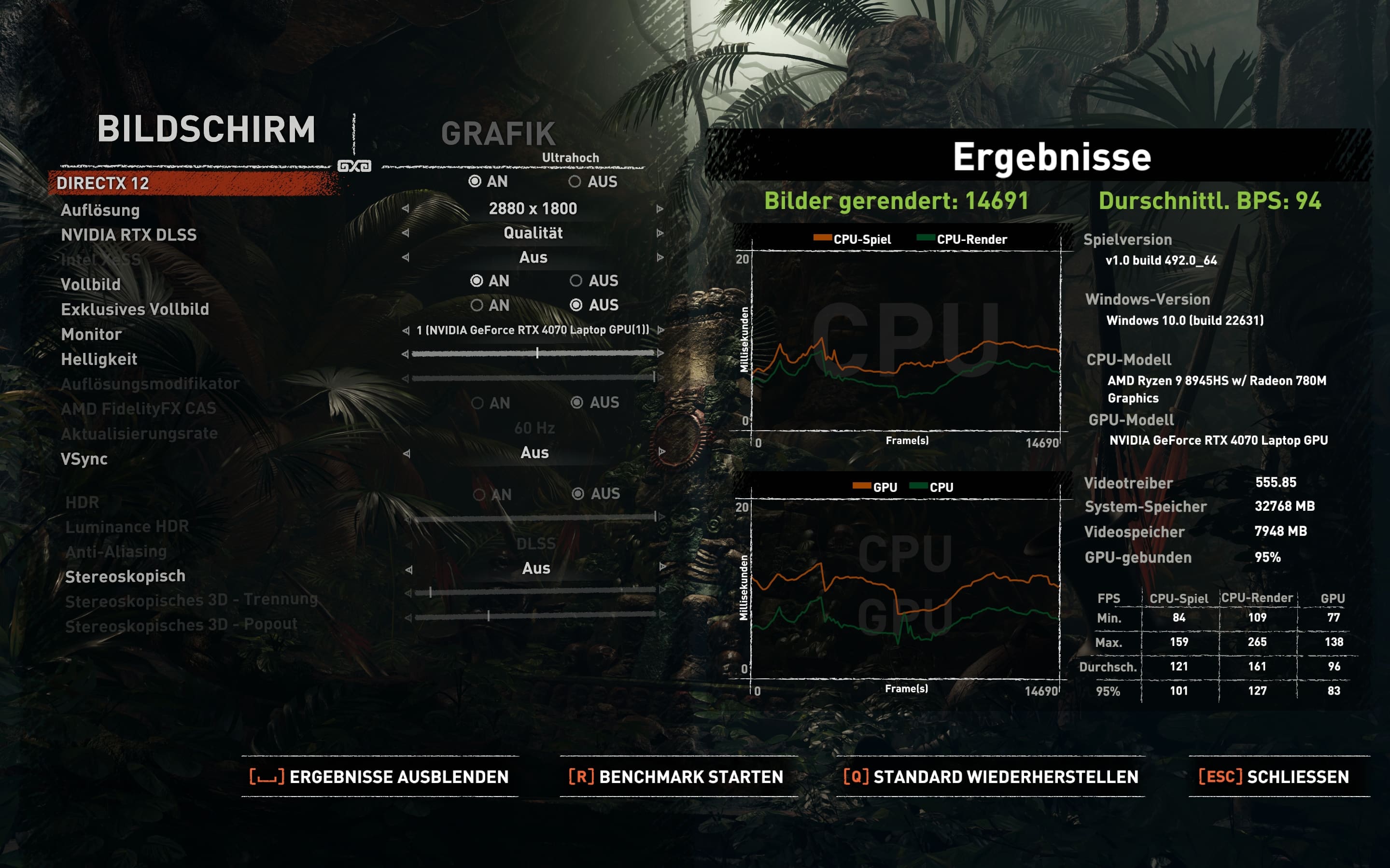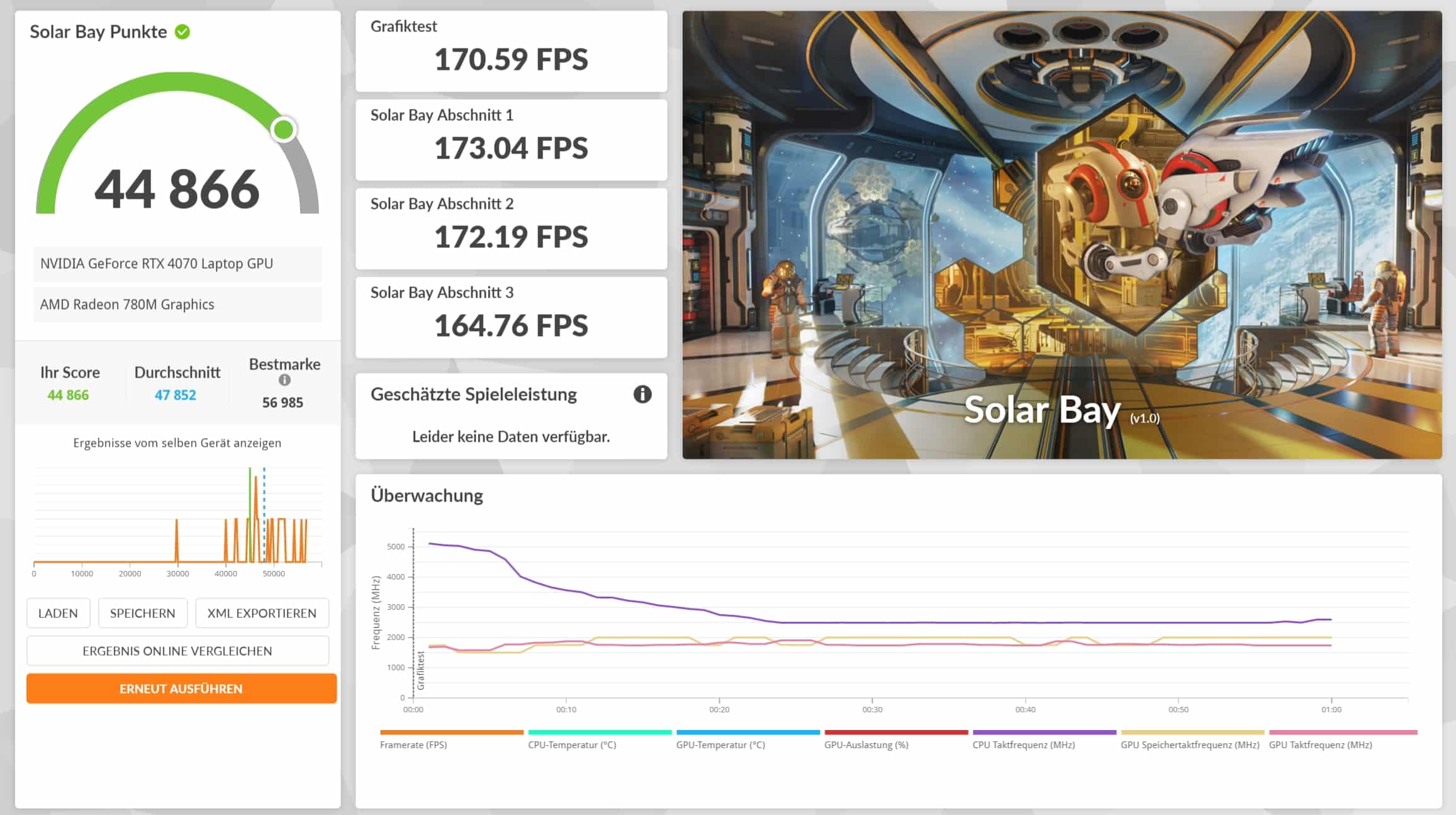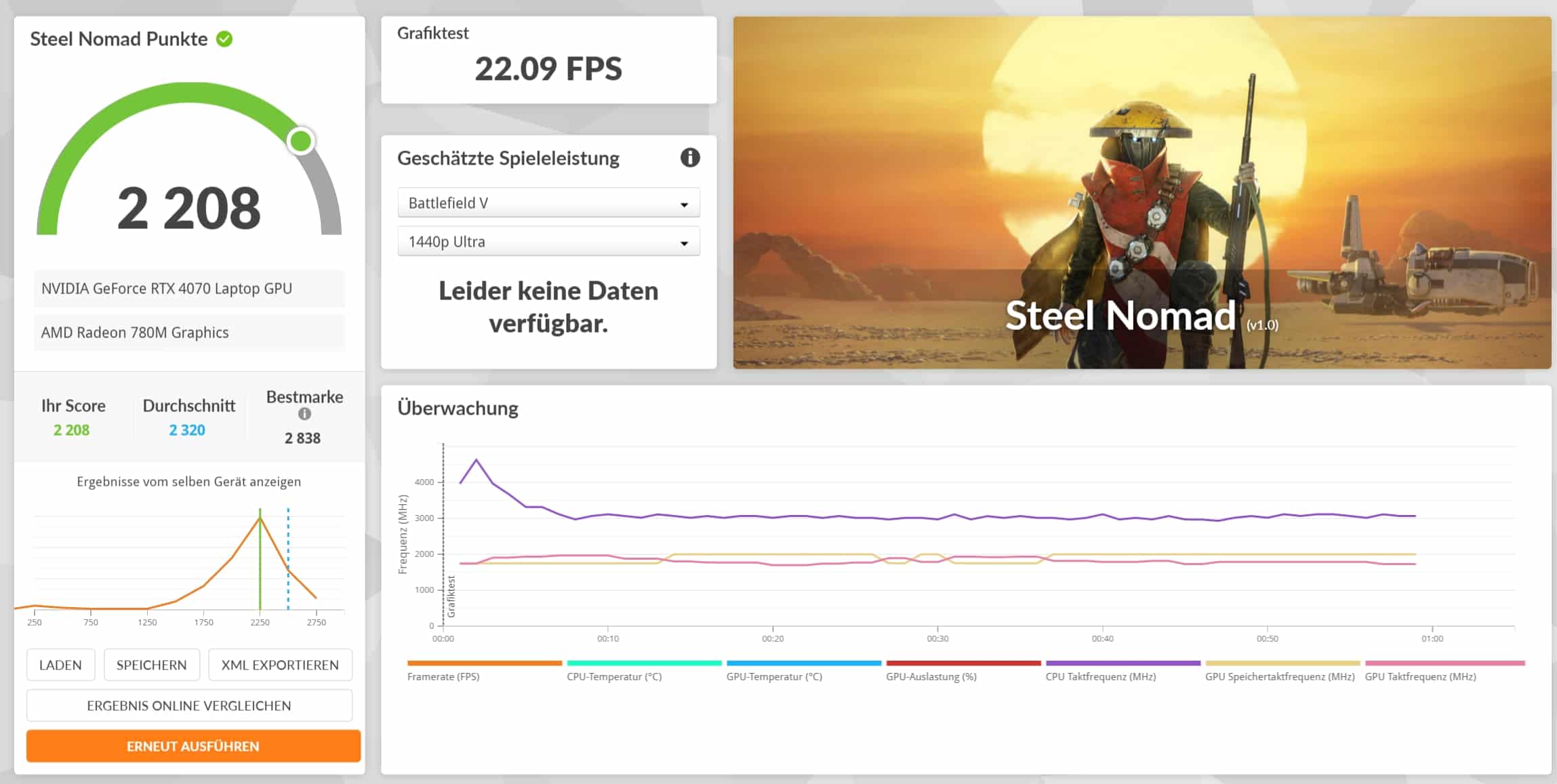 In general, the notebook offers enough reserves to also play current games in 3K or 1440p with maximum details. With a slight reduction in the level of detail, three-digit frame rates can be easily achieved. However, you should reduce the level of detail or the resolution a little for absolute graphics powerhouses with maximum ray tracing settings in order to achieve a smooth 60 fps.