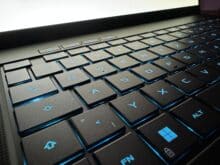 Although the cooling system does not have a vapor chamber, the notebook’s cooling performance is also impressive. The case heats up noticeably under continuous load, but does not get excessively hot. The area around the keyboard also remains operable at all times without any problems, although it gets very hot directly below the display.