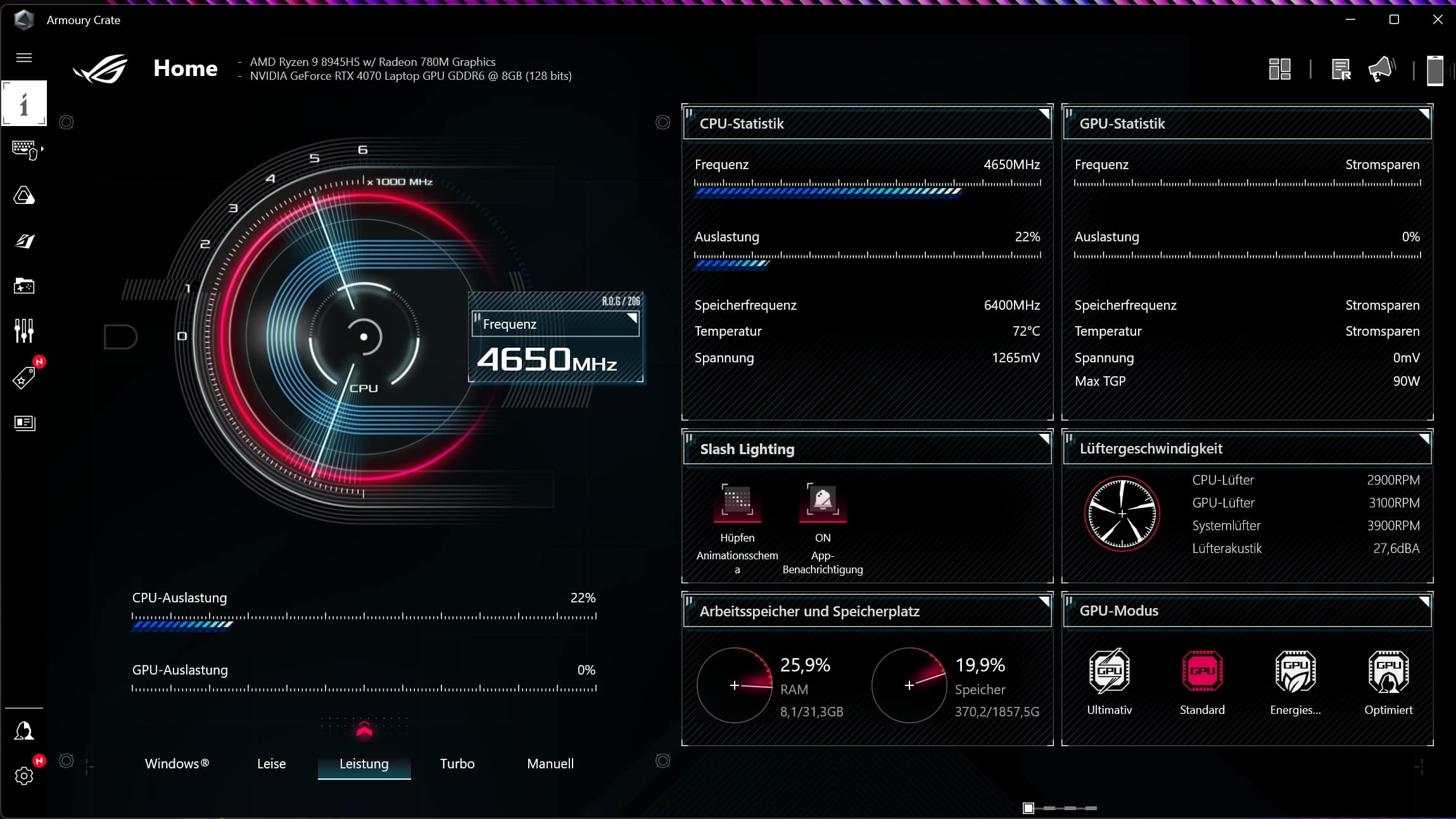It is a pity that ASUS soldered the RAM permanently. Although 32 GB are of course absolutely sufficient at the peak. The cooling and noise development are also at a very good level, not to mention the battery life. This is where the efficient AMD Ryzen 9 comes into its own.
