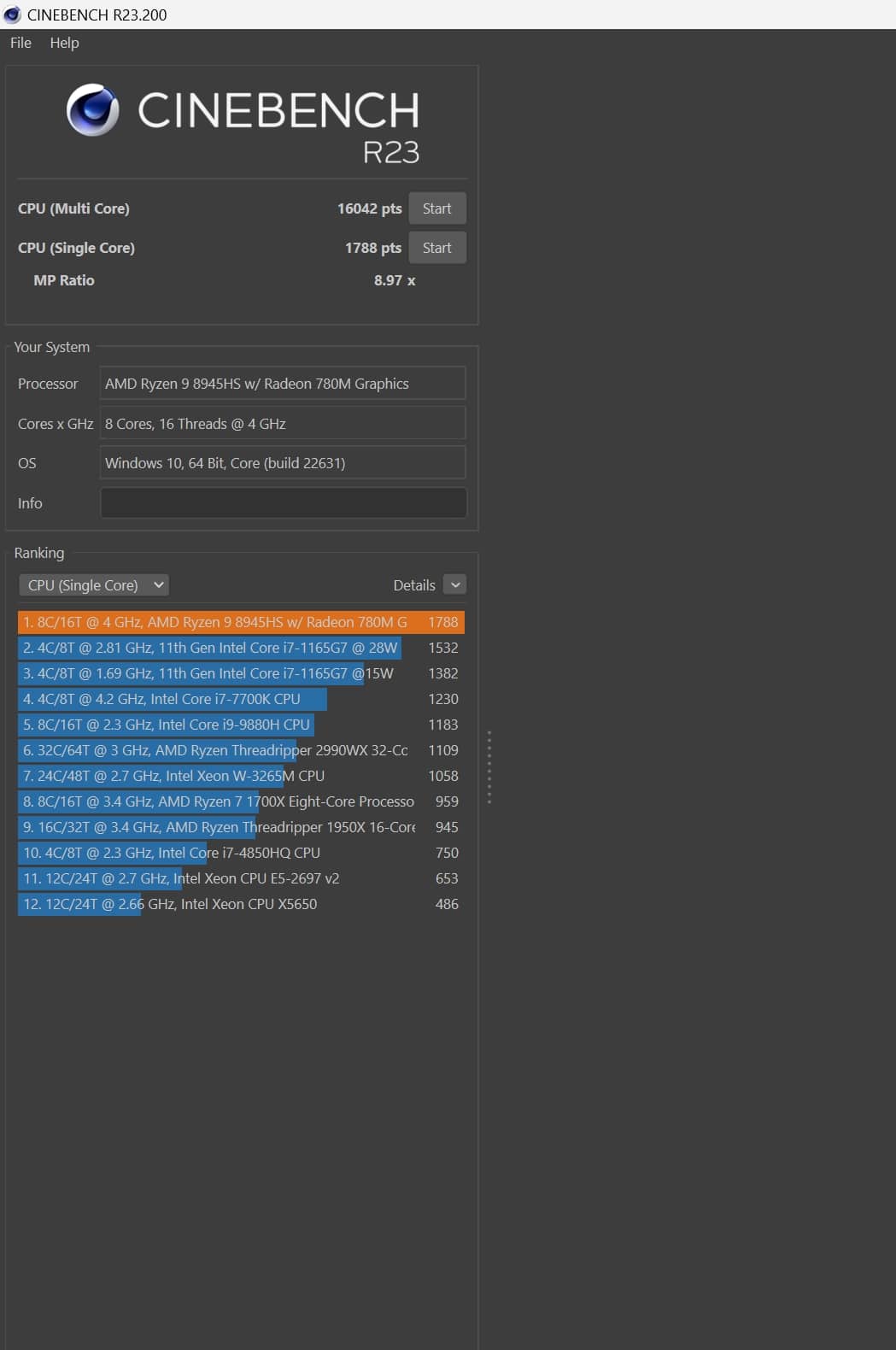 | Cinebench R23 Single Core | 1,788 pts. | 1,785 pts. |