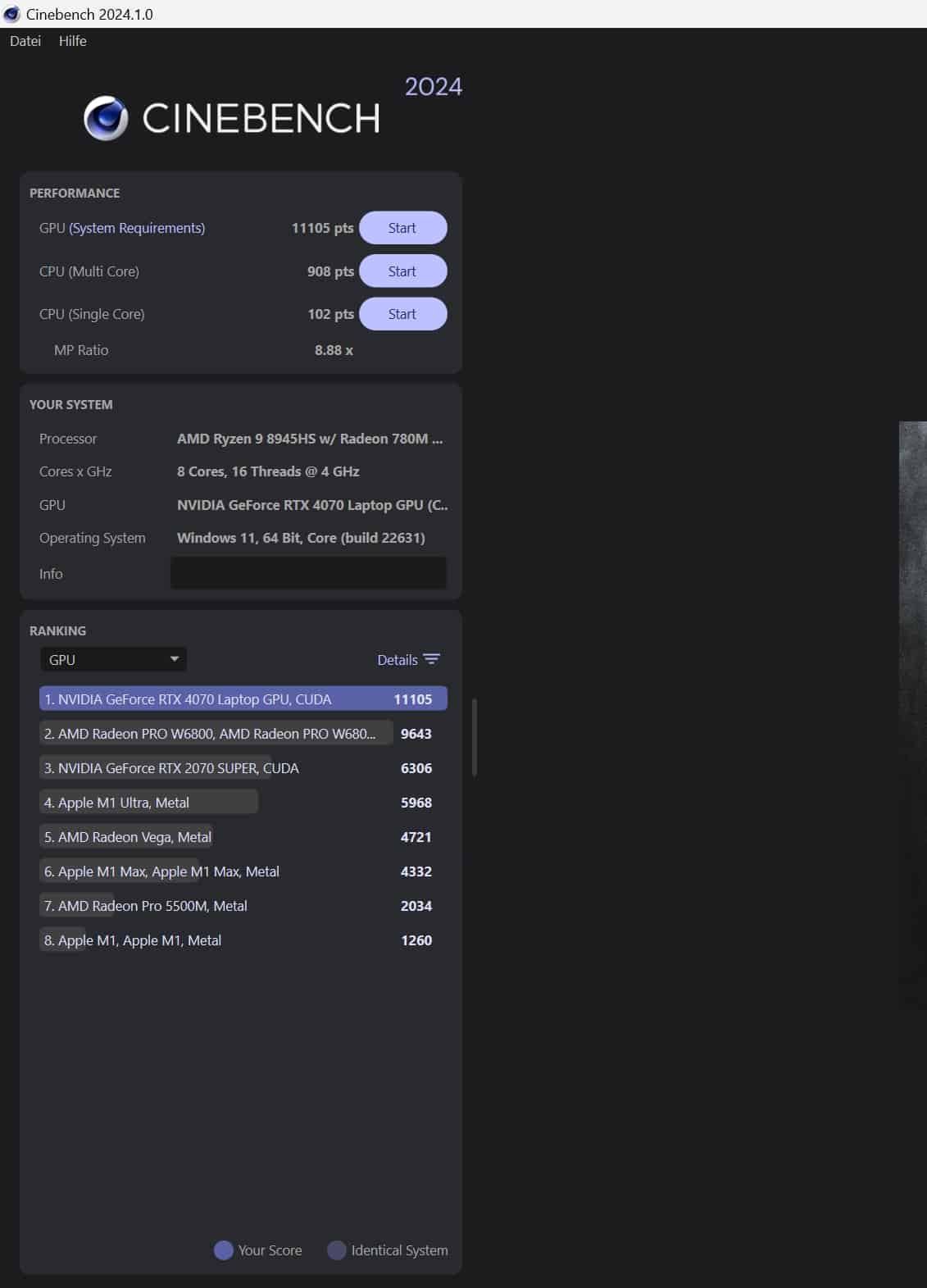 | Cinebench 2024 GPU | 11,105 pts. | 8,138 pts. |