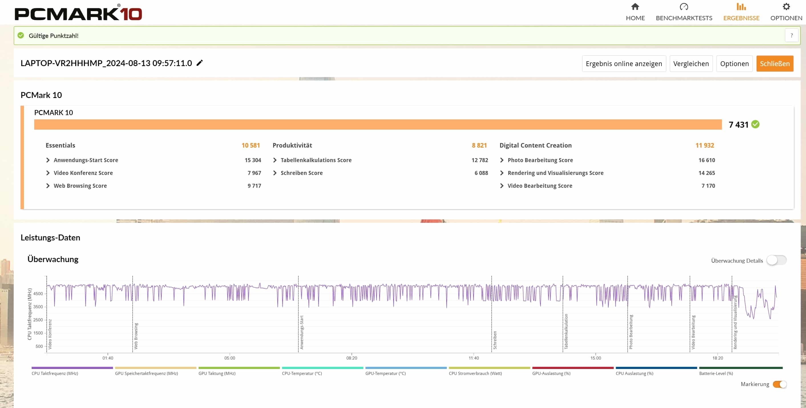 | PCMark 10 total score | 7,431 pts. | 7,285 pts. |