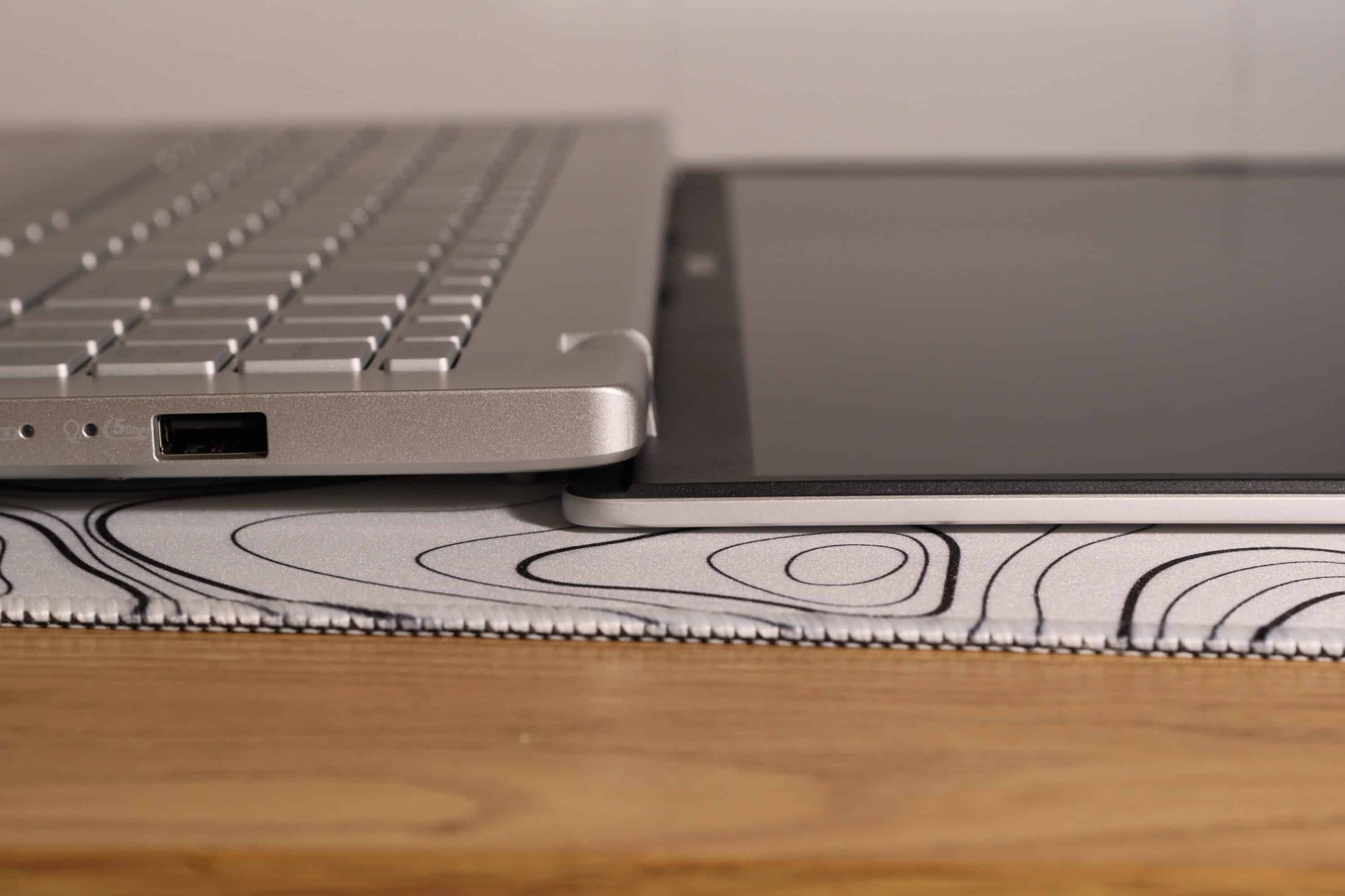 It also offers three-stage white key illumination, which is great for working in darker environments. There is also a pleasantly large clickpad that is slightly offset to the left, is 15 cm wide and 10 mm high, offers excellent gliding properties and is capable of multi-touch.