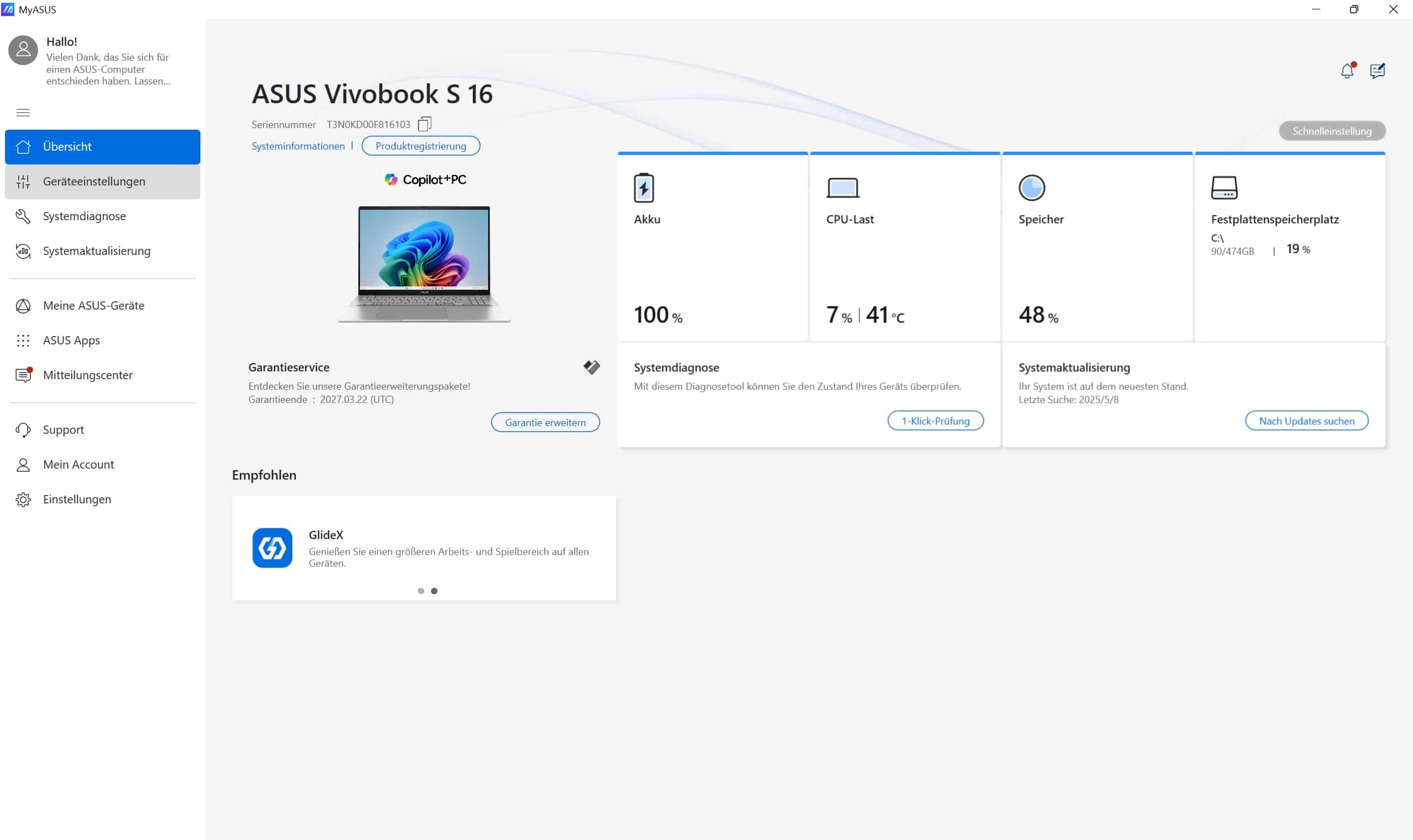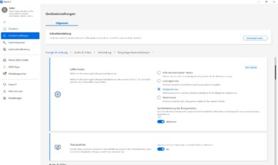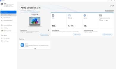 System information can also be viewed via the integrated MyASUS app. Here you can also set the fan settings and – as a result – the performance of the laptop. However, this doesn’t make too much of a difference in practice. The app is clearly laid out and scores with practical functions.