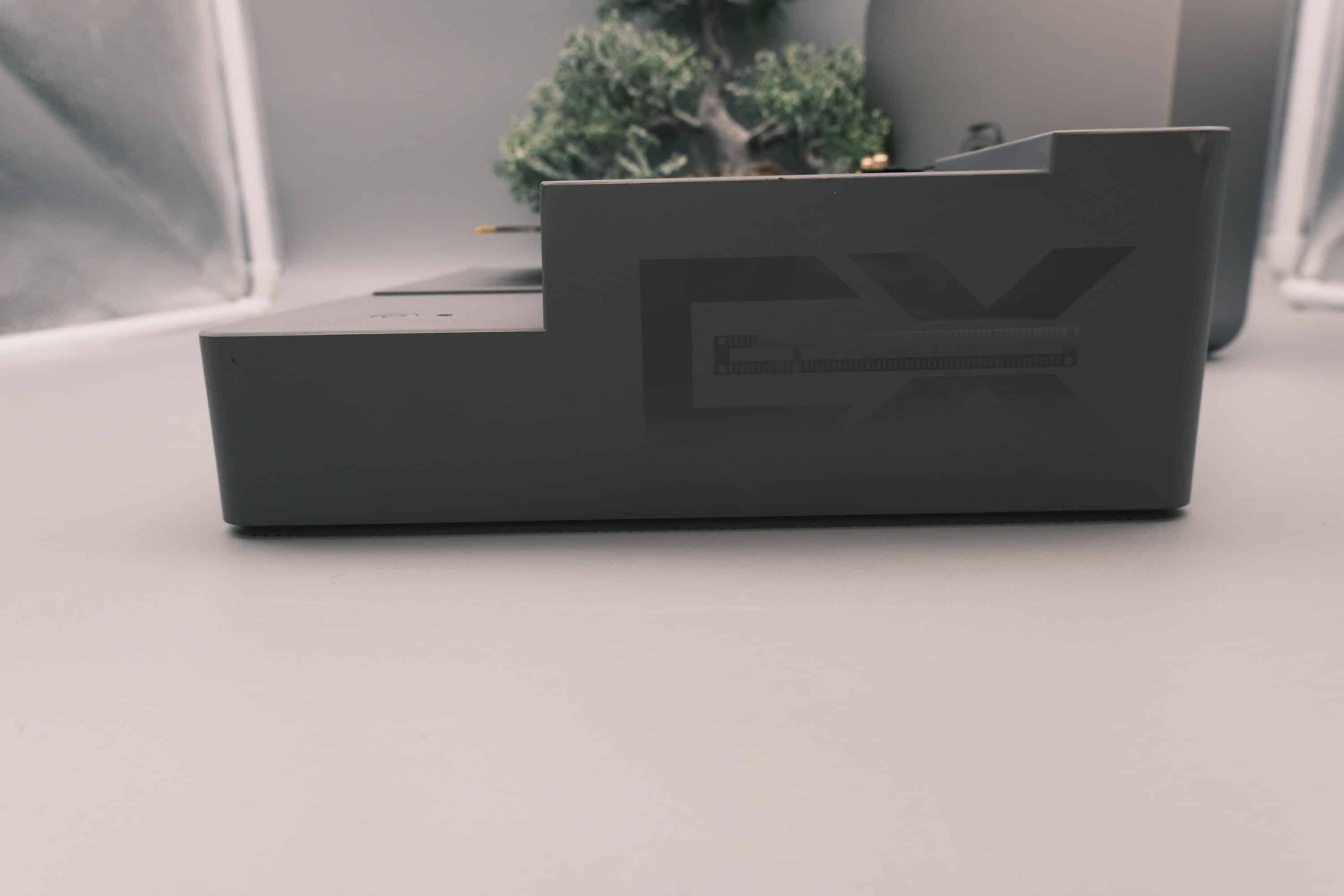 The EX docking station has its own power button and a separate power cable. A 600 watt power supply unit is also integrated into the dock, which means that the combination of mini PC and docking station should even be able to power the latest high-end graphics cards.