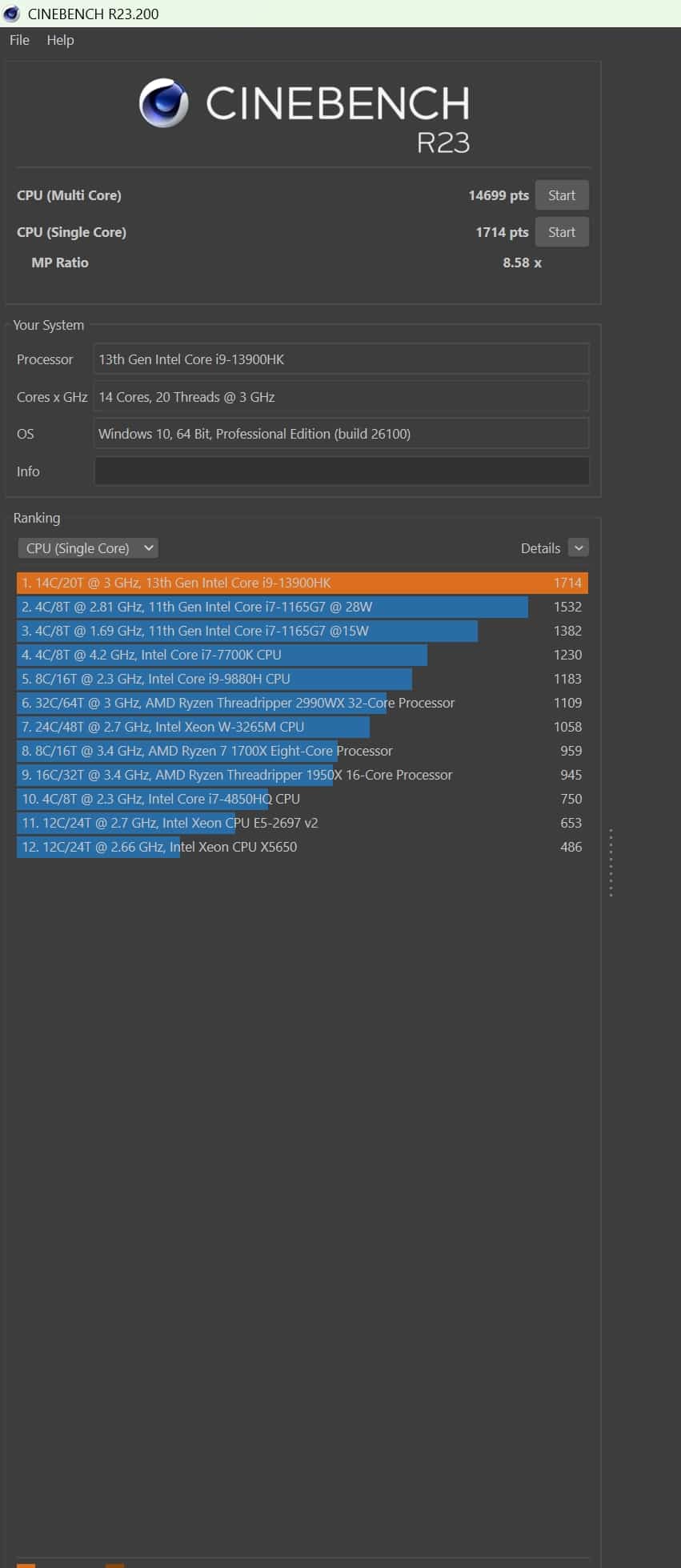 | Processor | Intel Core i9-13900HK (14 cores, 20 threads, up to 5.4 GHz) |