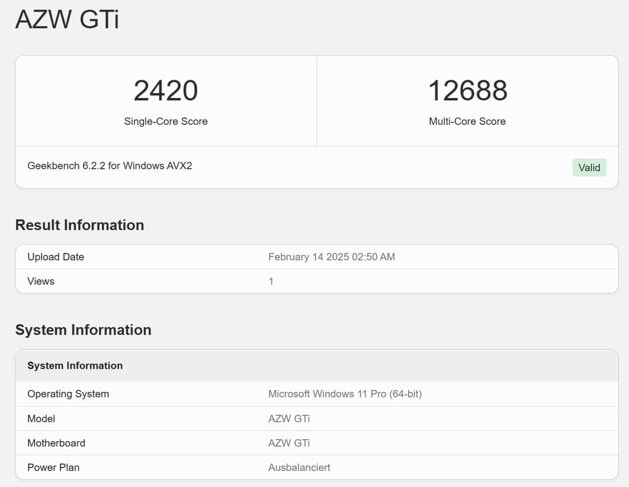 | Geekbench 6 Multi Core | 12,688 pts. |