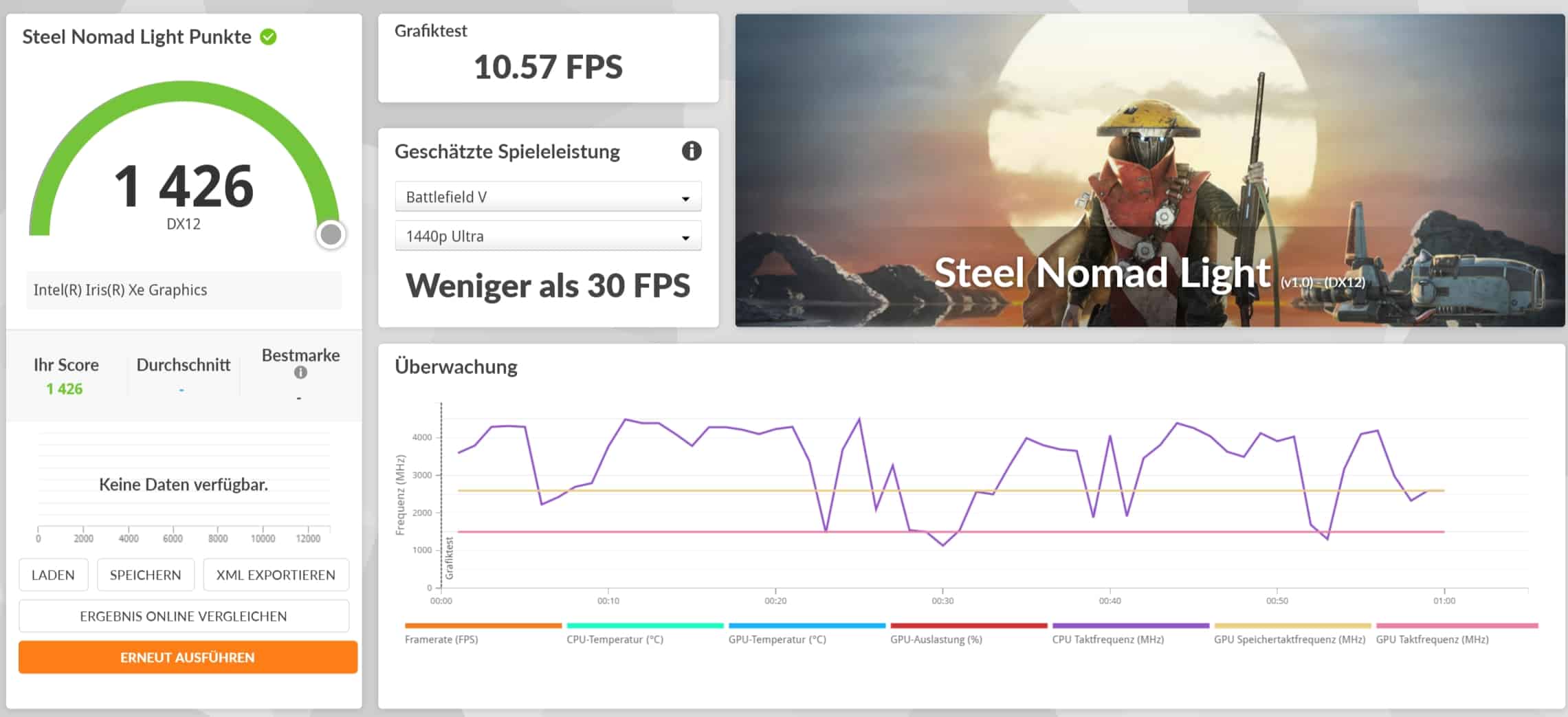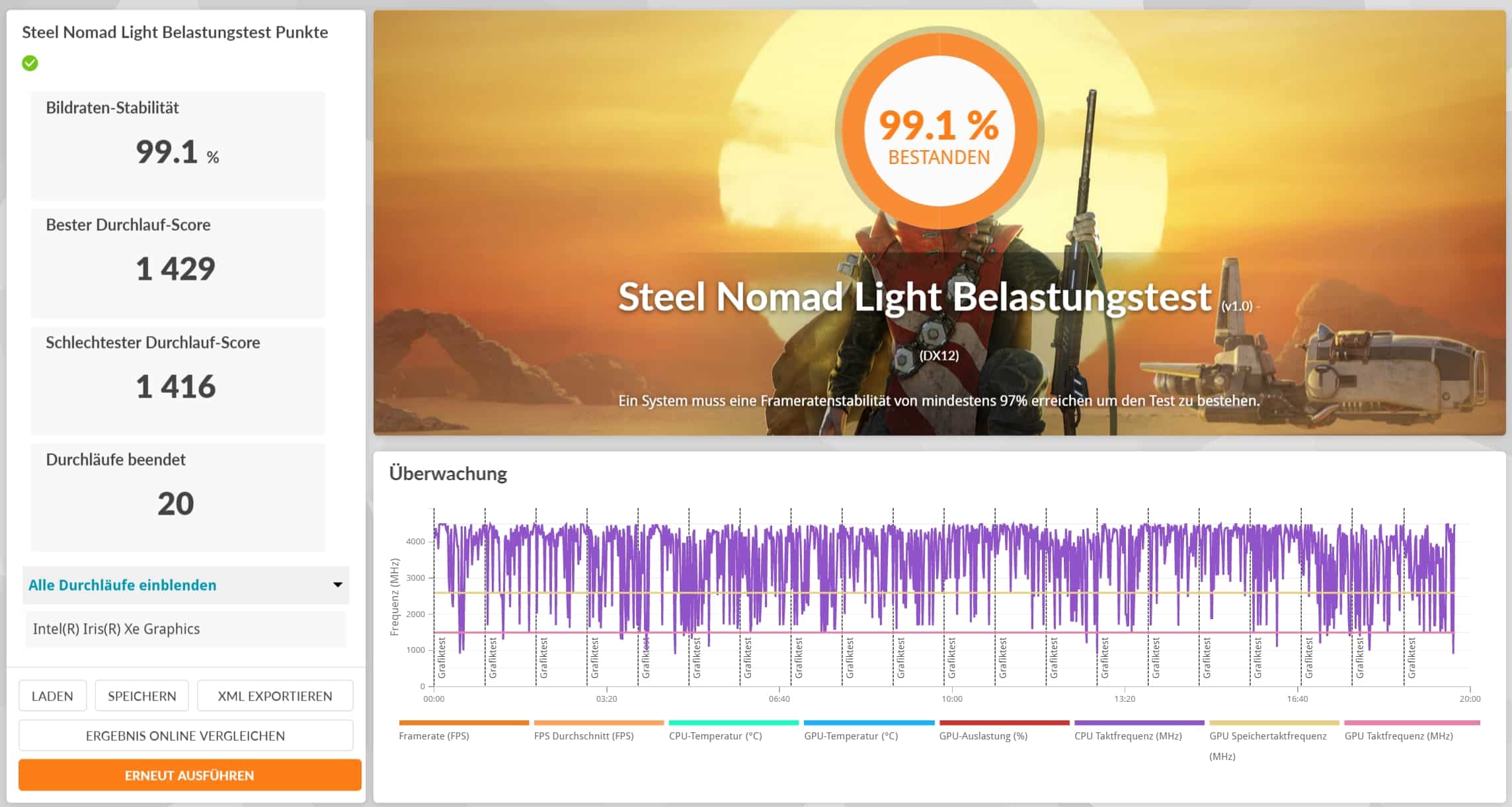 | 3DMark Steel Nomad | 6,512 pts. | 6,477 pts. | – 0.54 percent |