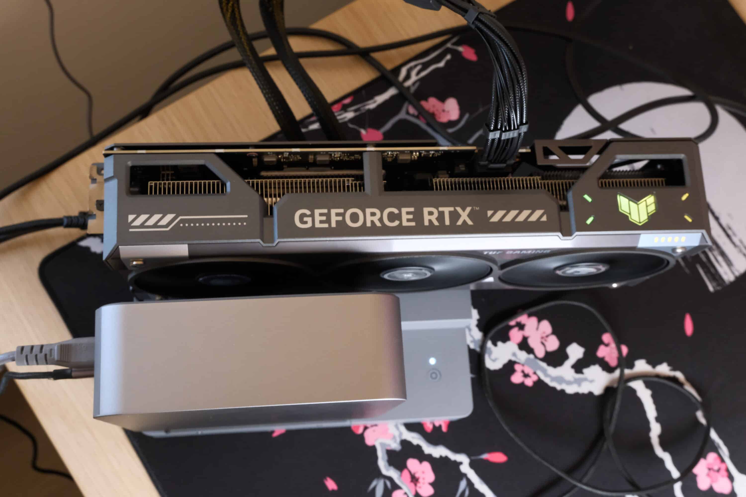 In combination with the low noise level, this is of course very pleasant. The problem with the dock is of course the exposed connections and cables, which – unlike with eGPU solutions – are much more susceptible to dirt and hair.