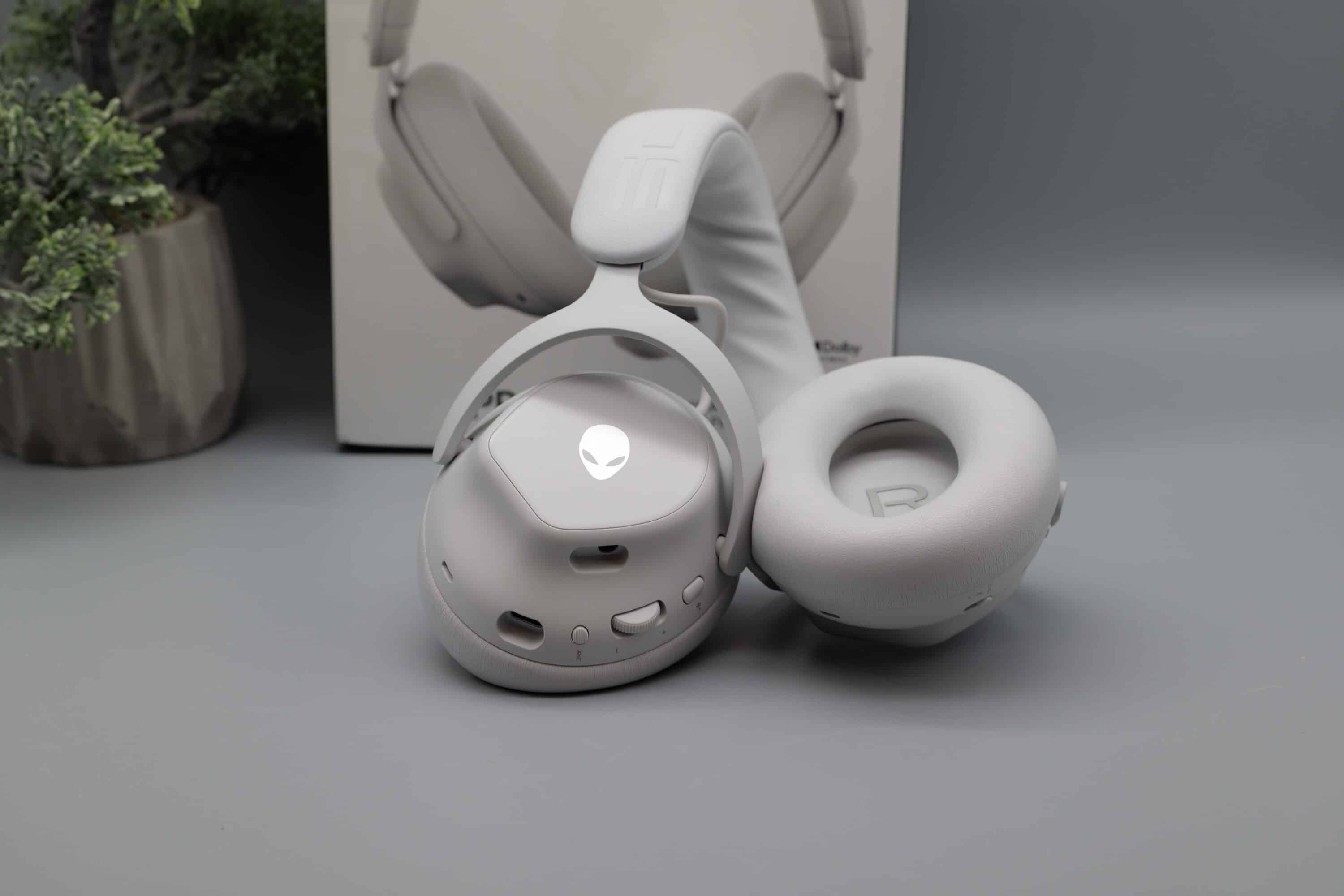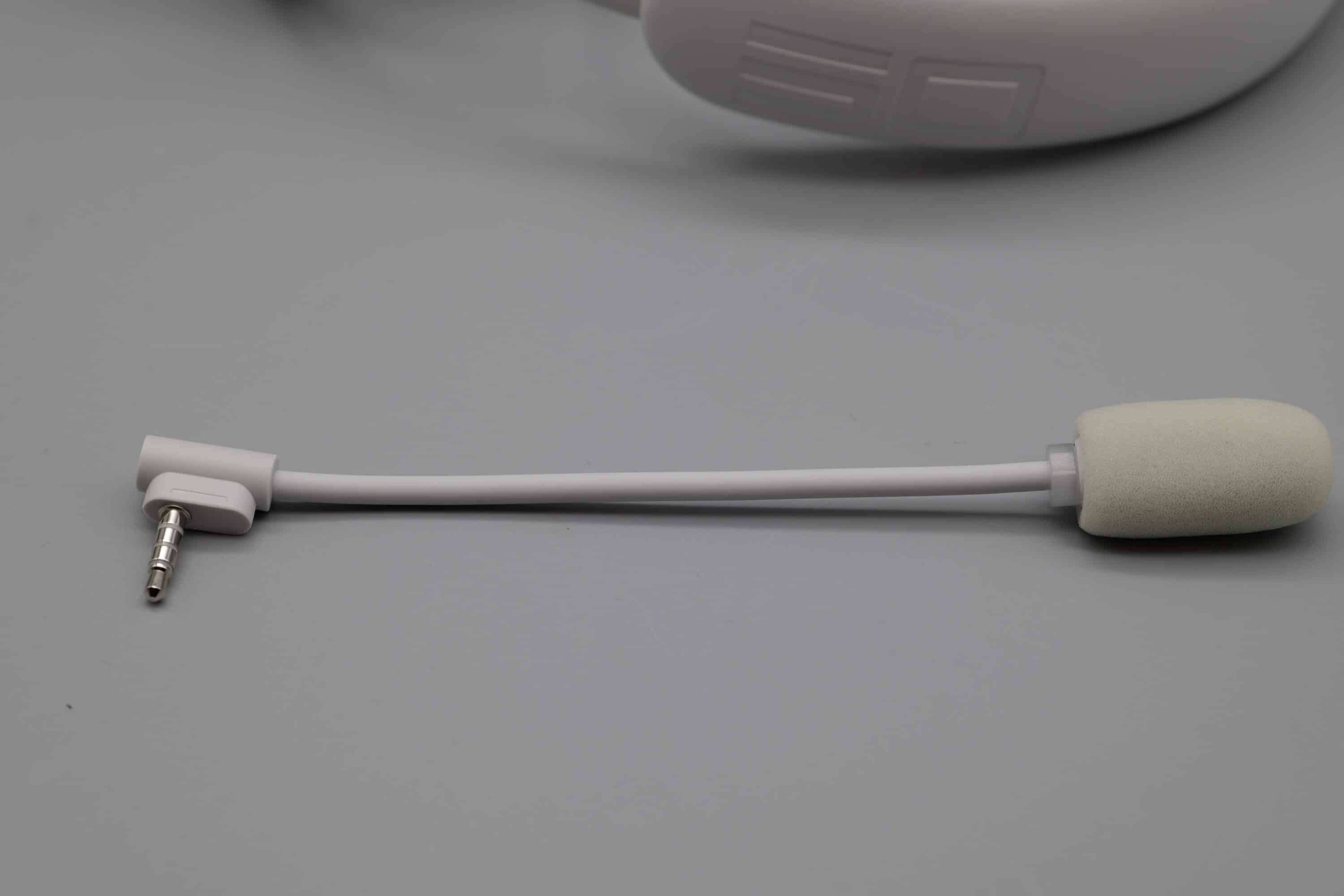 The white color scheme (Lunar Light) in particular makes the Alienware Pro look very stylish and also cuts a very good figure as over-ear headphones. Thanks to the detachable microphone boom, which is connected to the underside of the left ear cup via a 3.5 mm jack, the headset is also very suitable for listening to music.