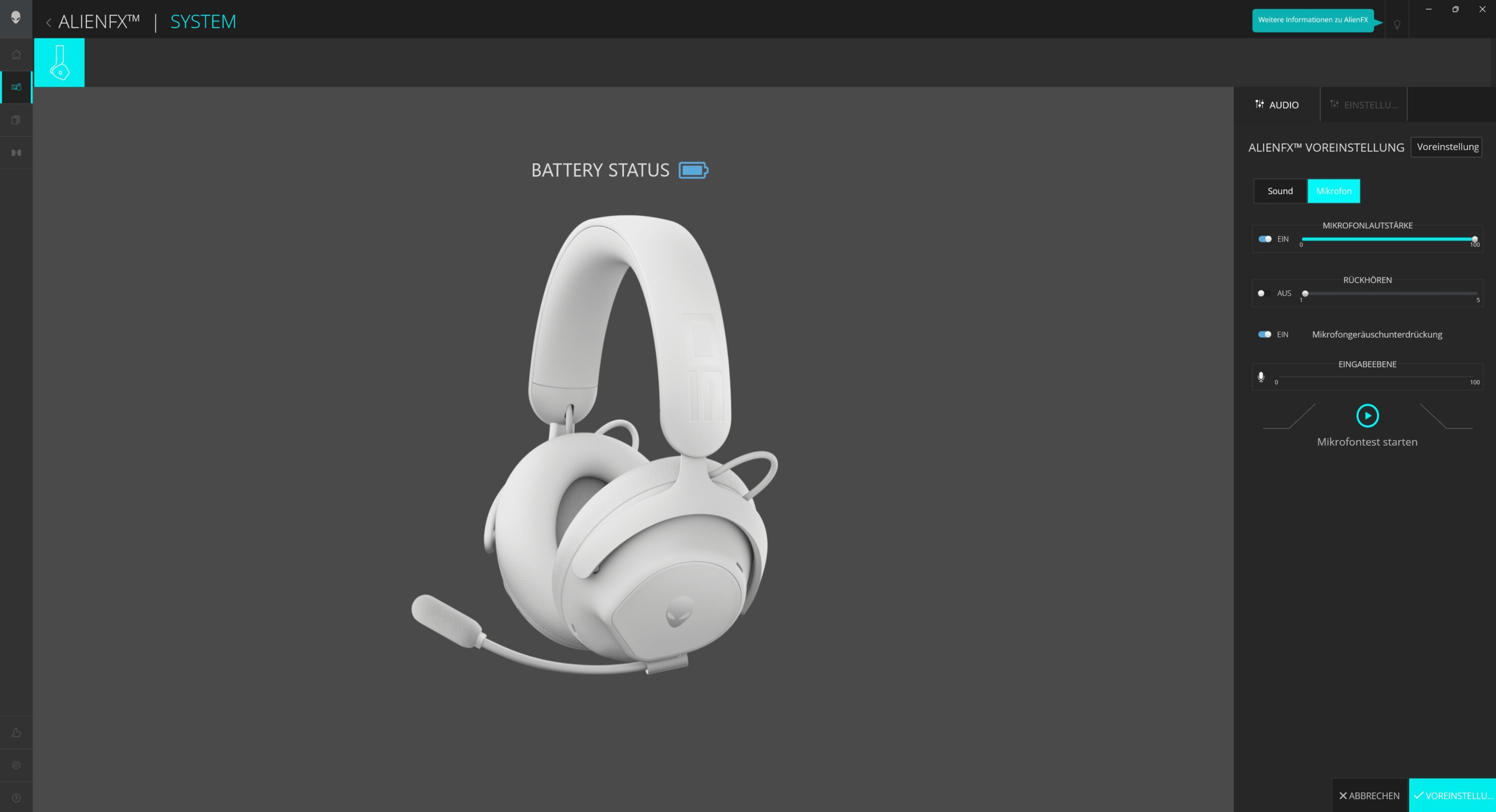 The settings in Alienware’s own app, on the other hand, are extremely limited. Here you can only adjust the volume and intensity of the transparency mode, as well as individual microphone settings such as noise suppression.