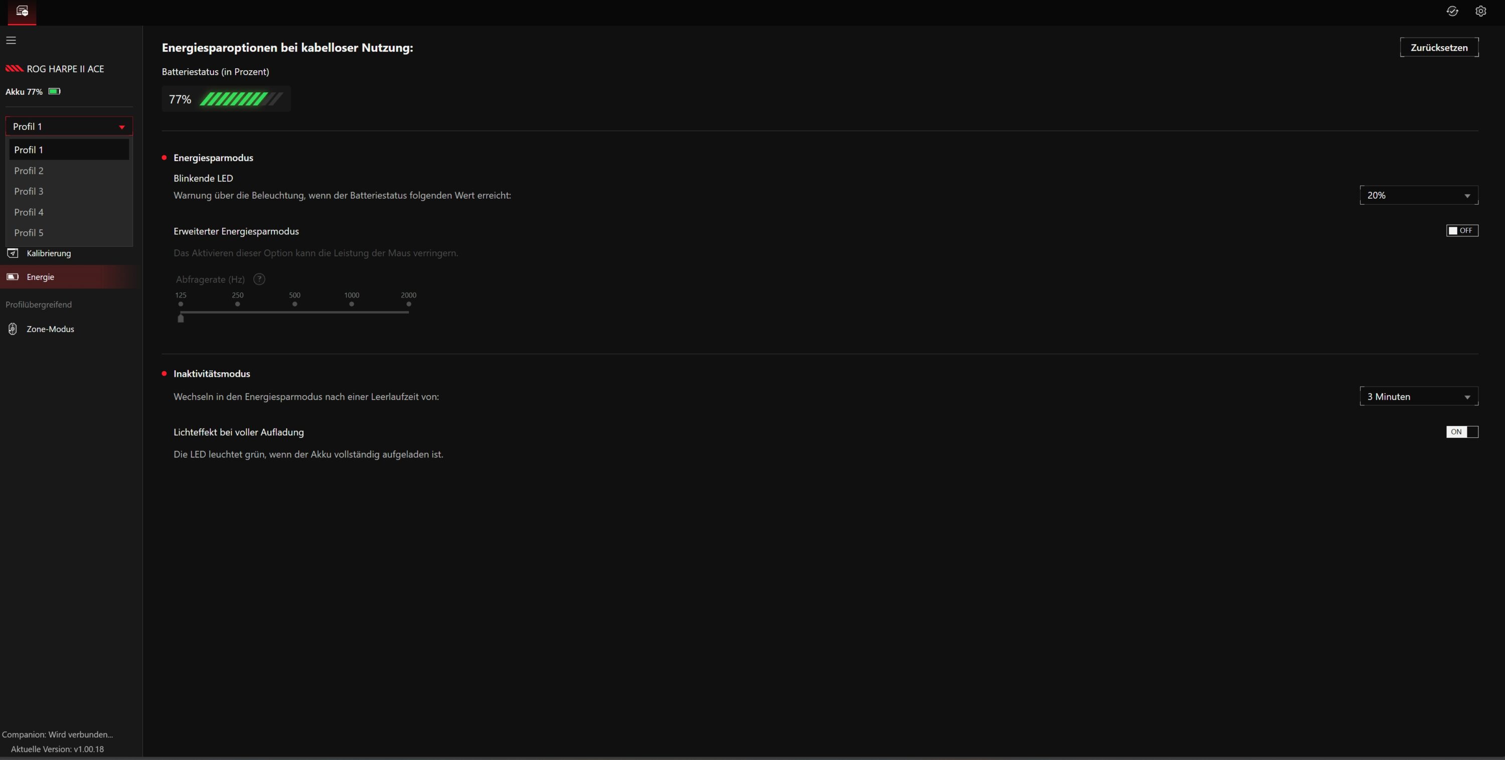 The runtime of the integrated lithium-ion battery is even better than the Extreme version: up to 101 hours with deactivated lighting and 84 hours with RGB lighting are possible via wireless, and the gaming mouse lasts even longer via Bluetooth. If you increase the sampling rate, the runtime is naturally reduced, although the response here is significantly lower than that of many other gaming mice with 8,000 Hz. Chapeau, ASUS ROG.