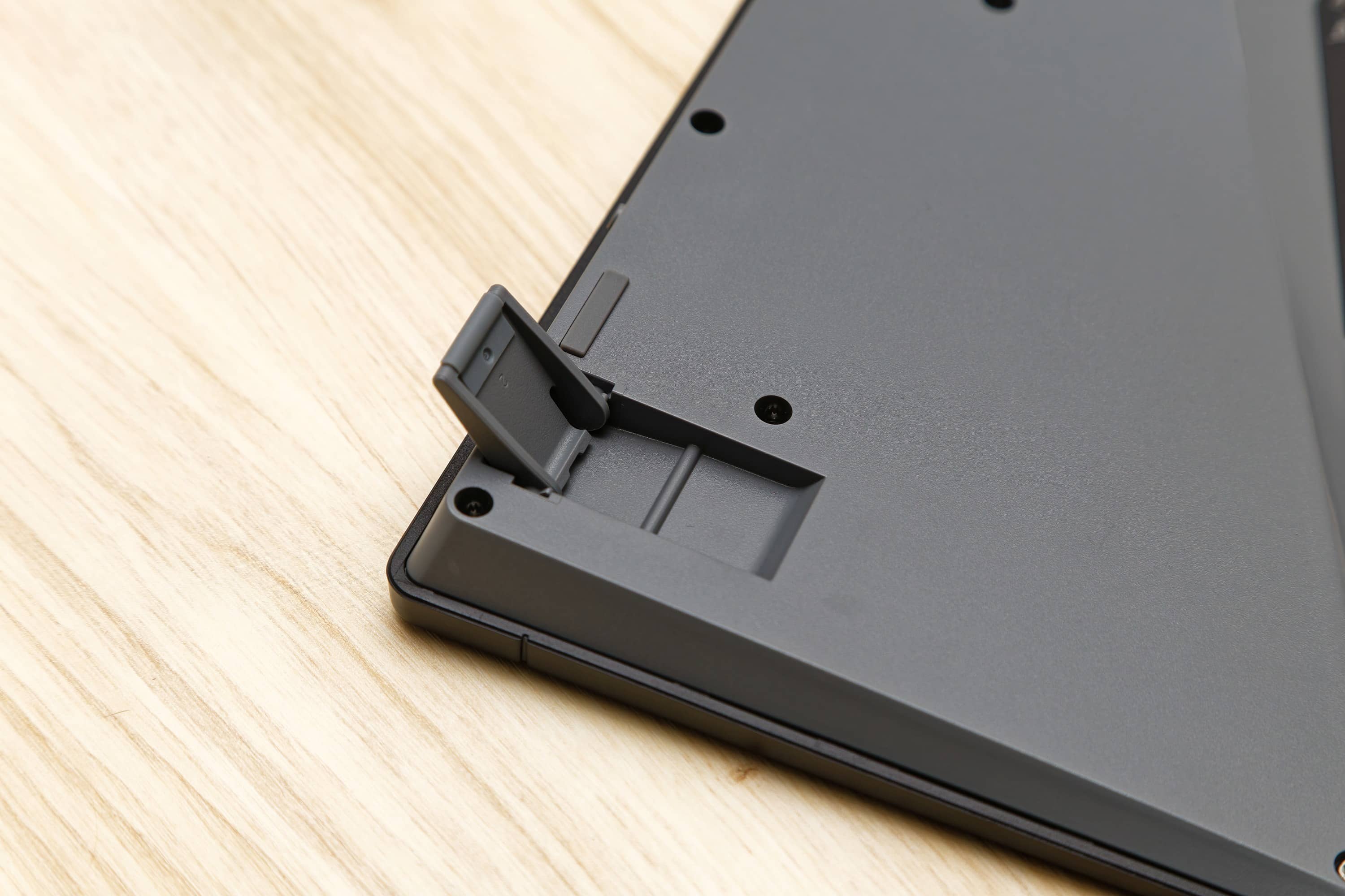As far as the angle of the keyboard is concerned, you only have one other angle adjustment through the feet in addition to the flat use. This completely suits my taste and I don’t miss any other angles – but there are only a few adjustment options for individual tastes. Overall, the keyboard’s profile is pleasantly flat. A palm rest is therefore not necessary.